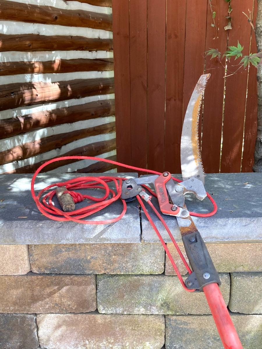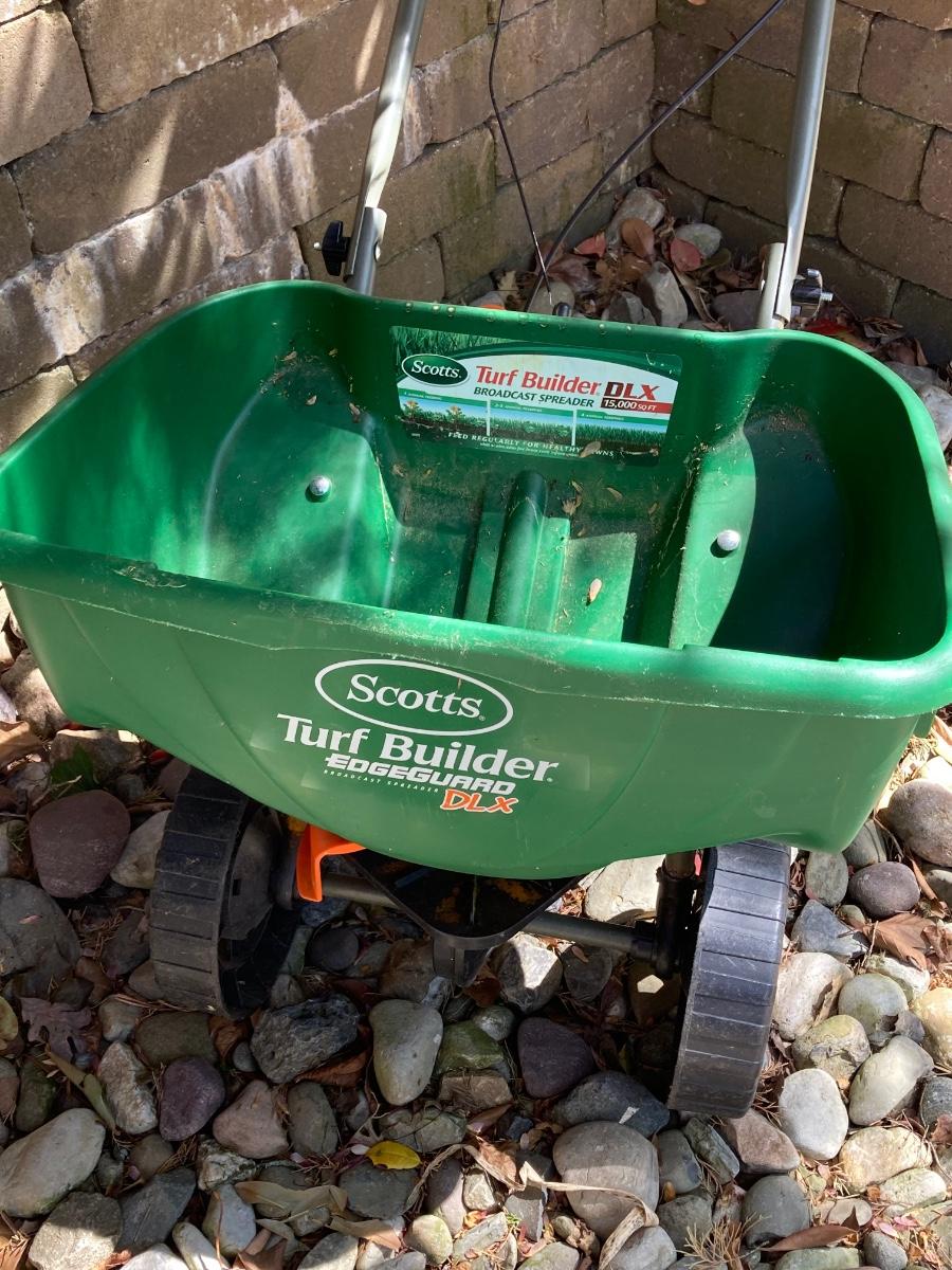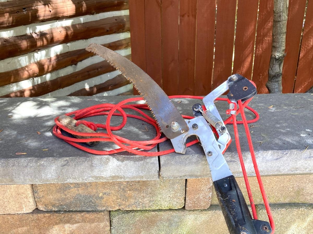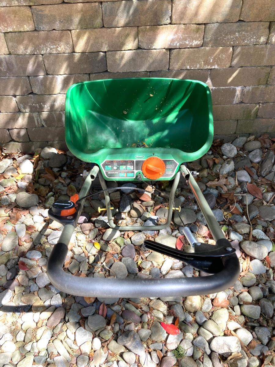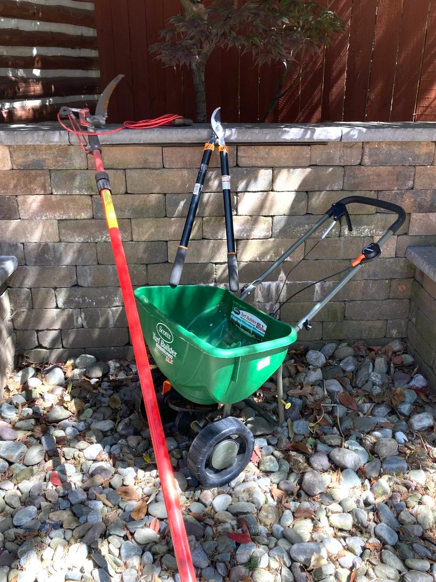 LOT 71: Garden Tools Including Pole Saw, Scotts Grass Seeder/Spreader, and Lopper
