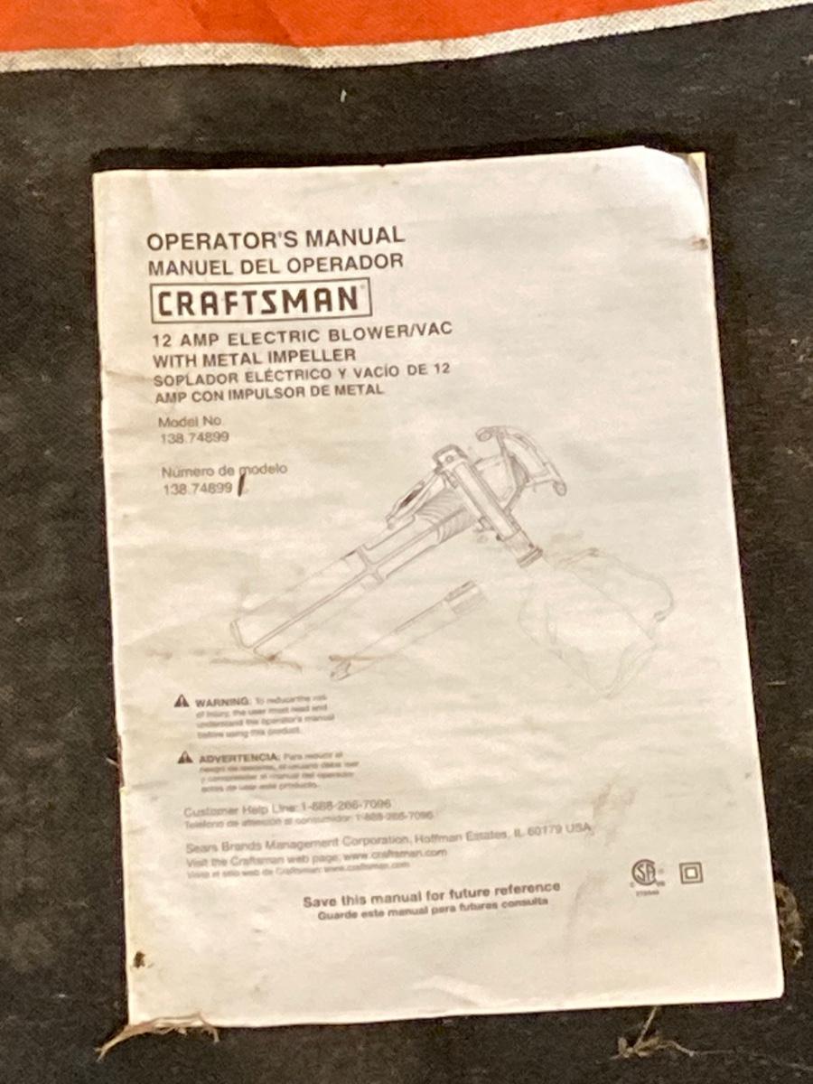 LOT 74: Craftsman Electric Leaf Blower with Cord