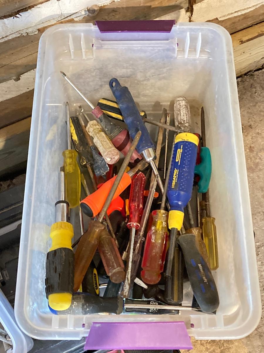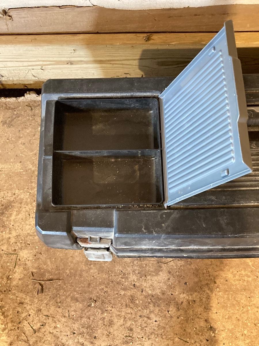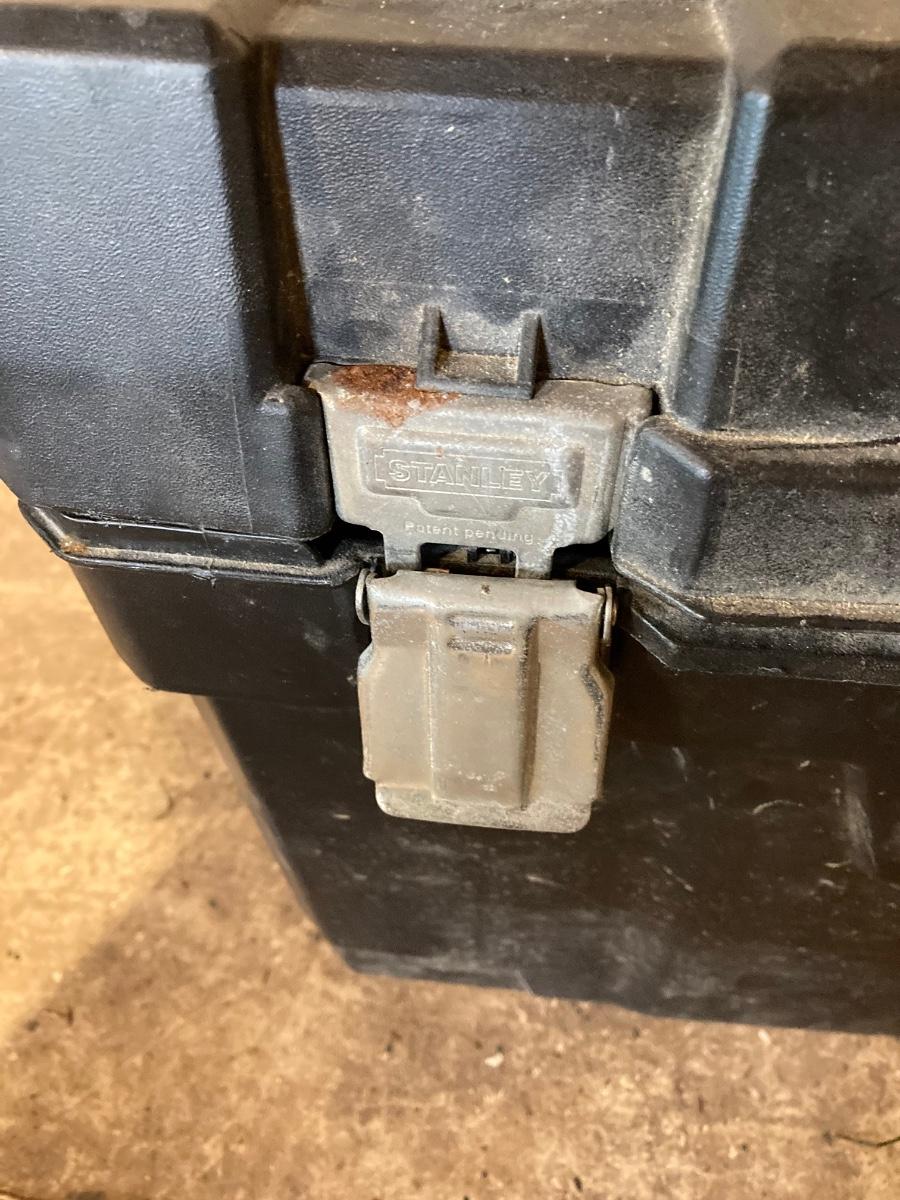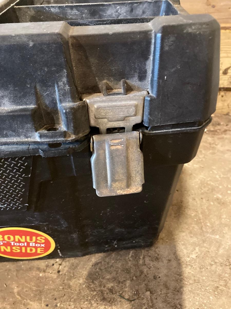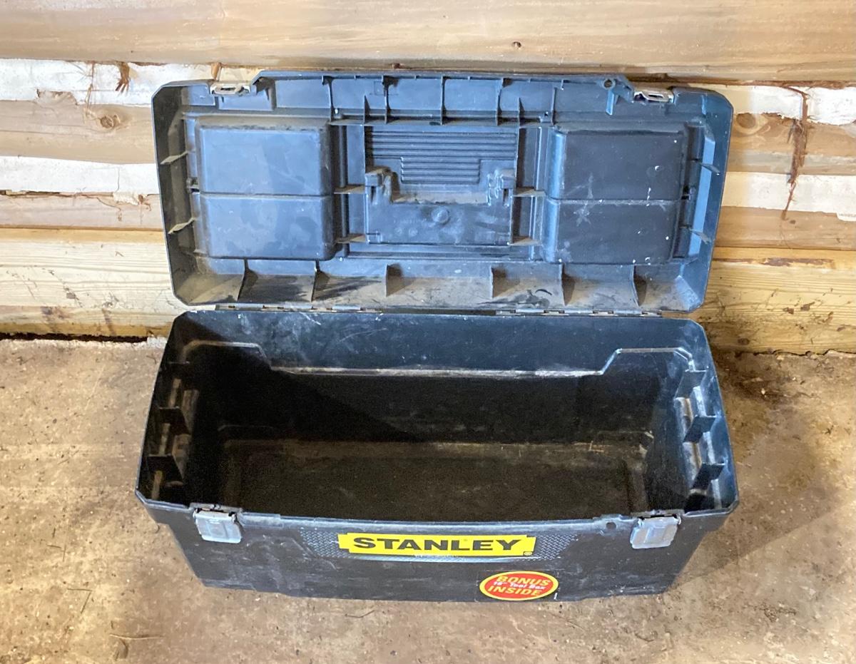 LOT 80: Stanley Tool Box, Pink Tool Belt and Assorted Tools