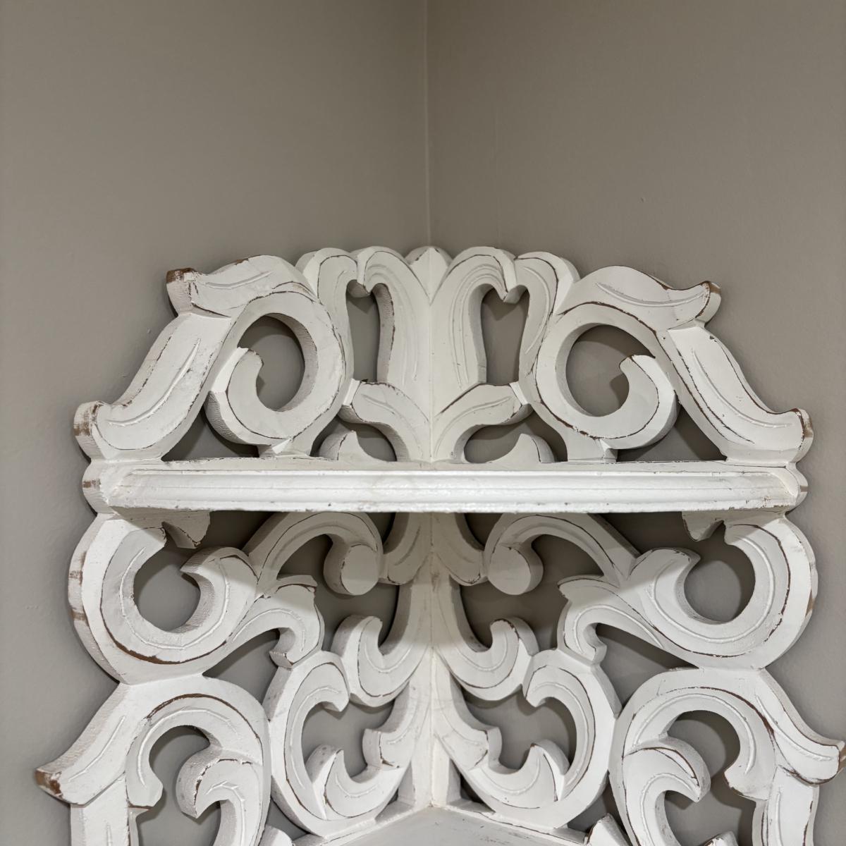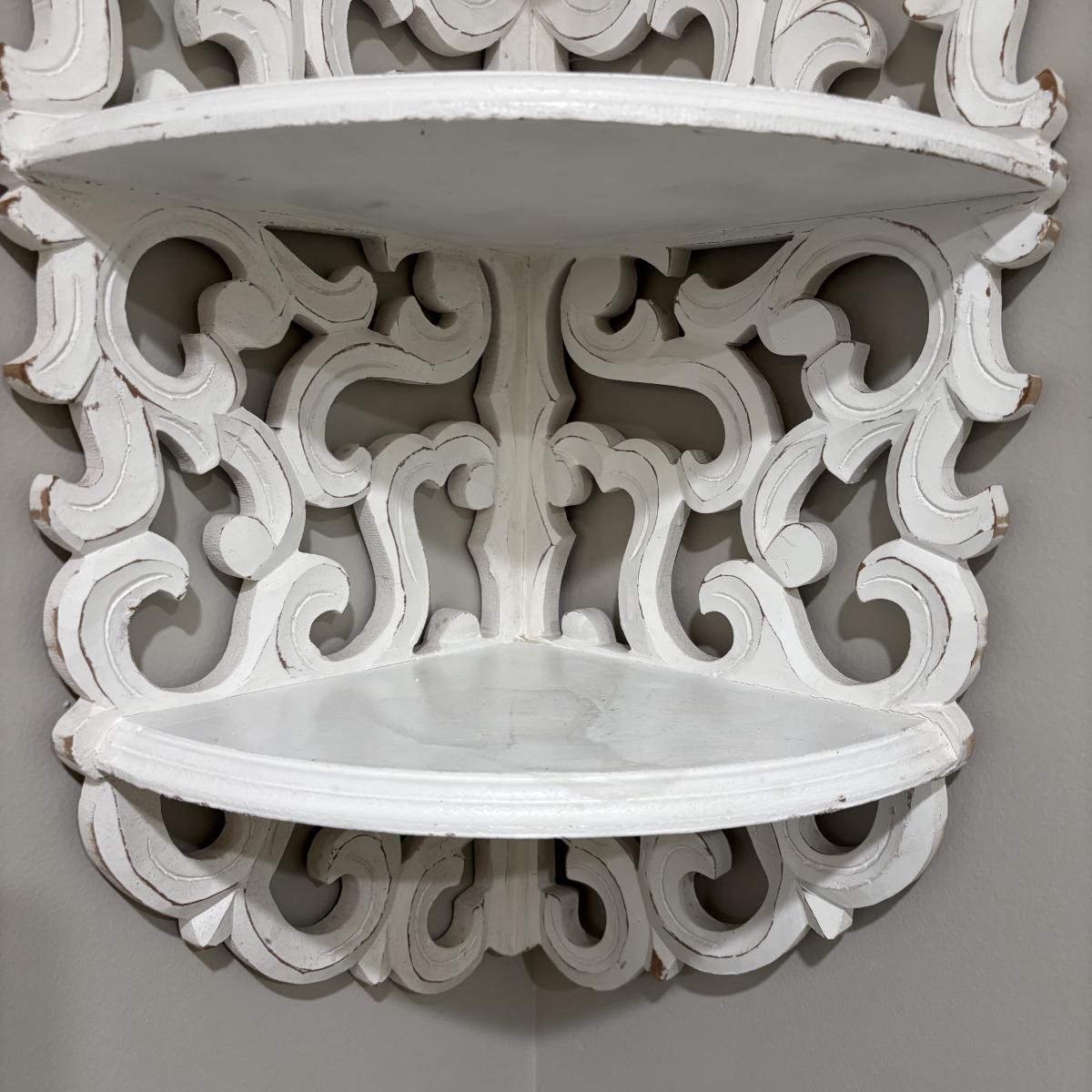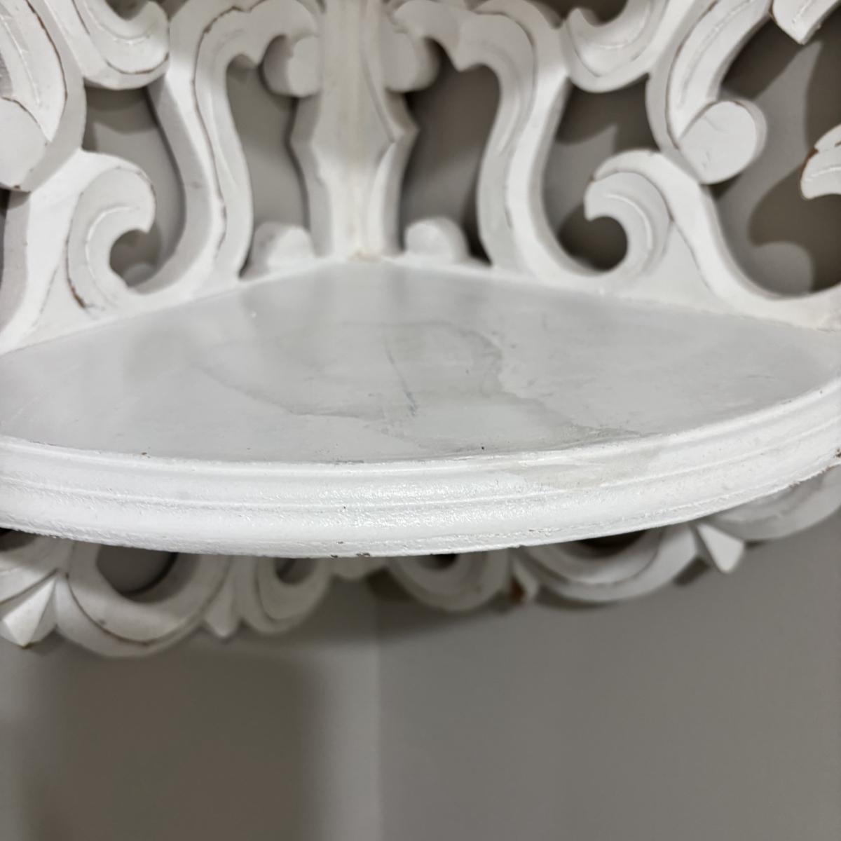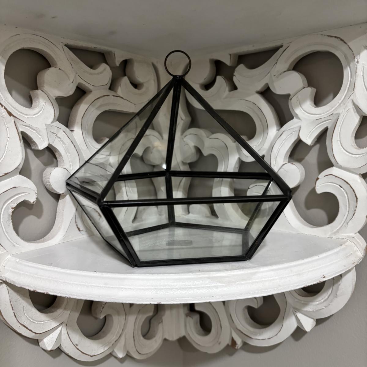 LOT 107: White Wall Mounted Three (3) Tier Corner Shelf with Plant and Terrarium