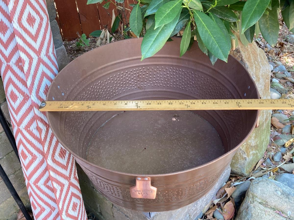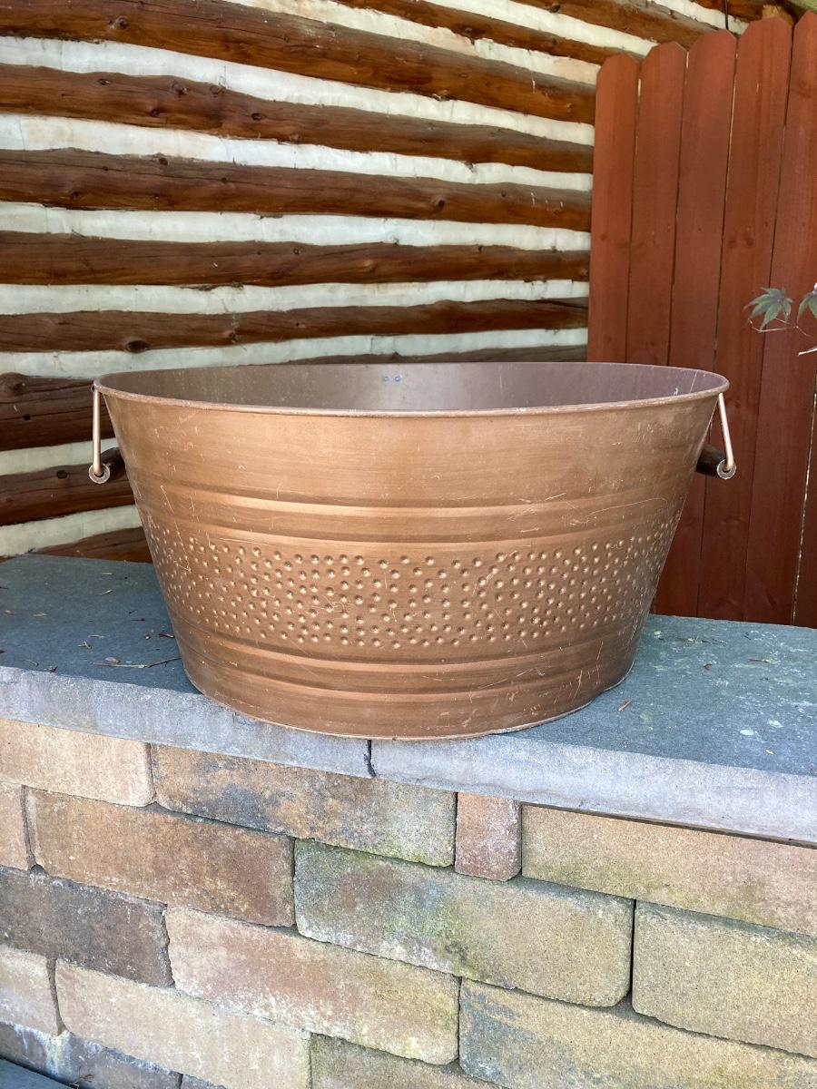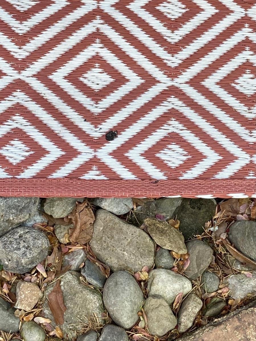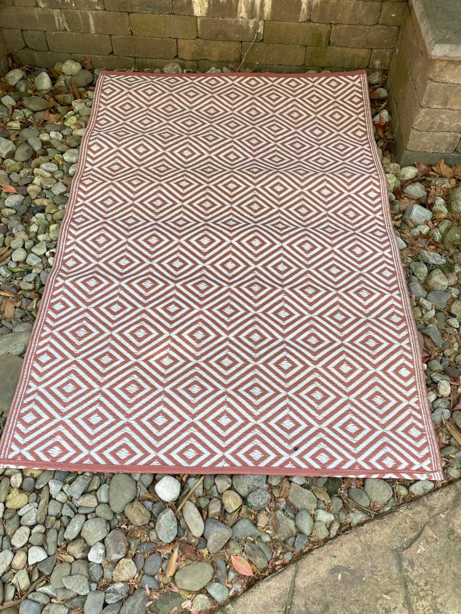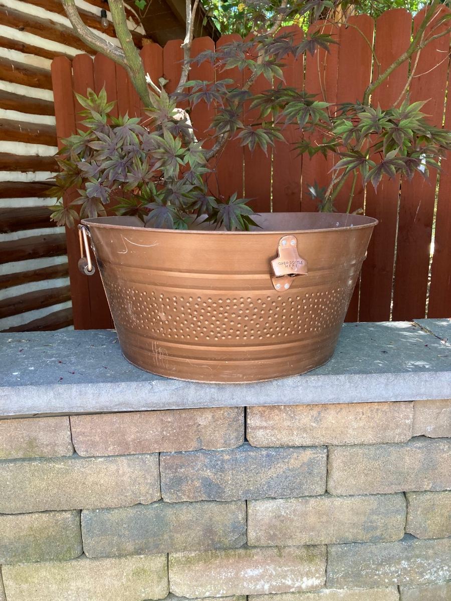 LOT 115: Outdoor Livin’ Includes and Lewis & Clark Fold & Go Directors Chair, Tiki Torches, Cooler, Copper Plated Bottle Holder Ice-bucket Indoor/Outdoor Rug and Rolling Cooler