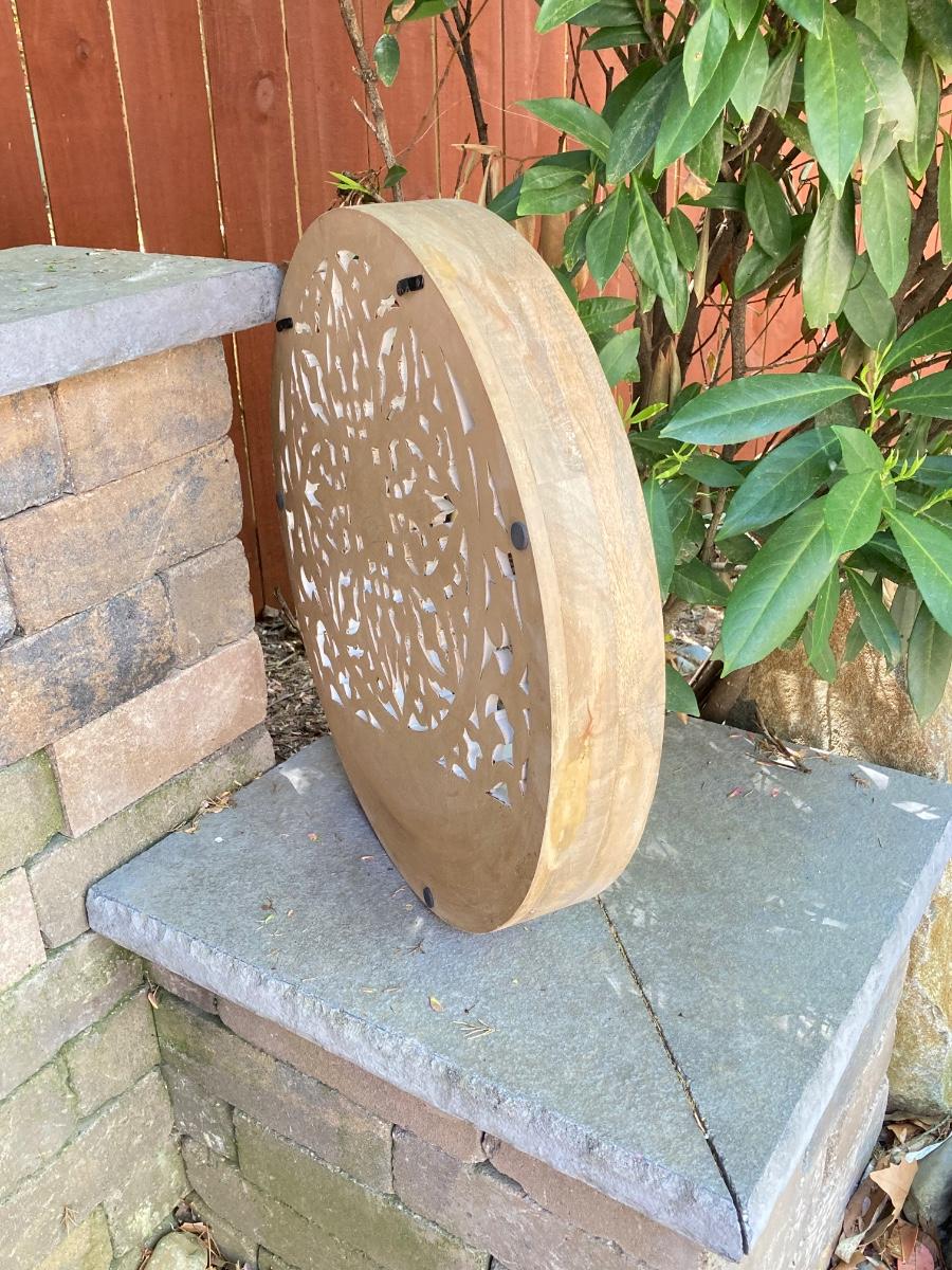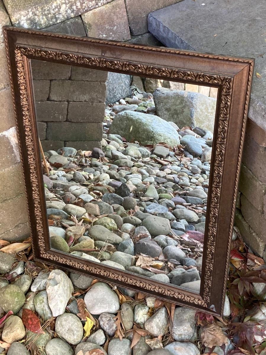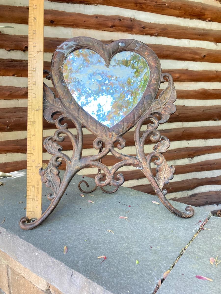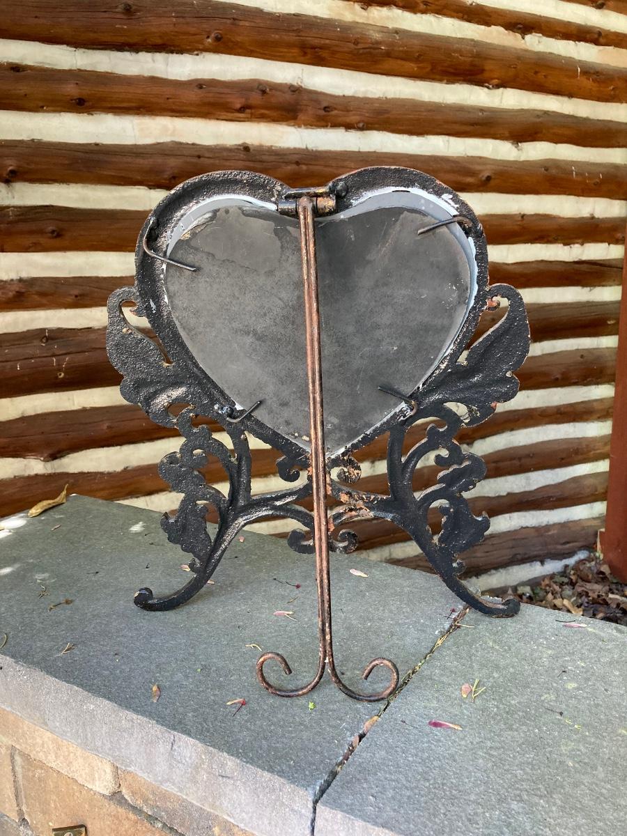 LOT 128: Home Decor Collection - Carved Circular Shelf, Wall Mirror, Heart Shaped Metal Table Mirror and Inspirational Artwork
