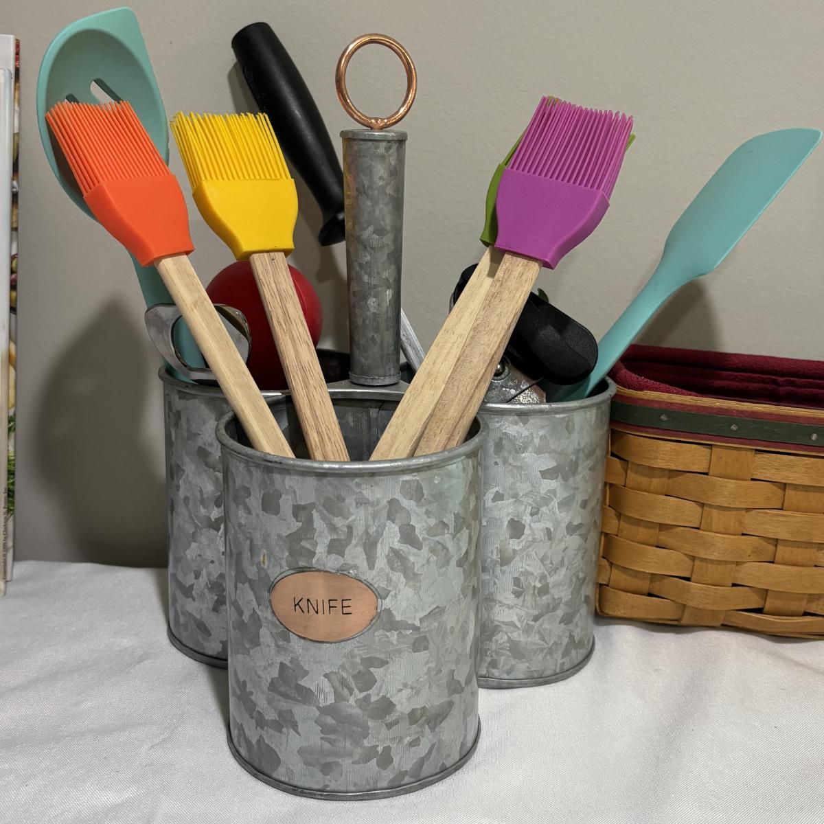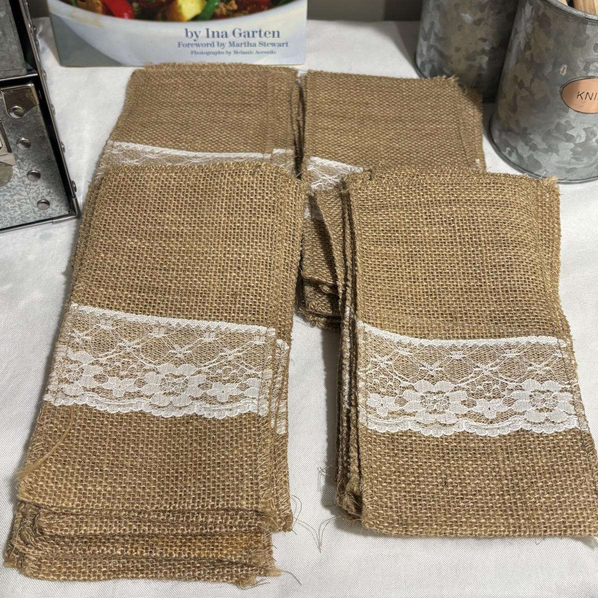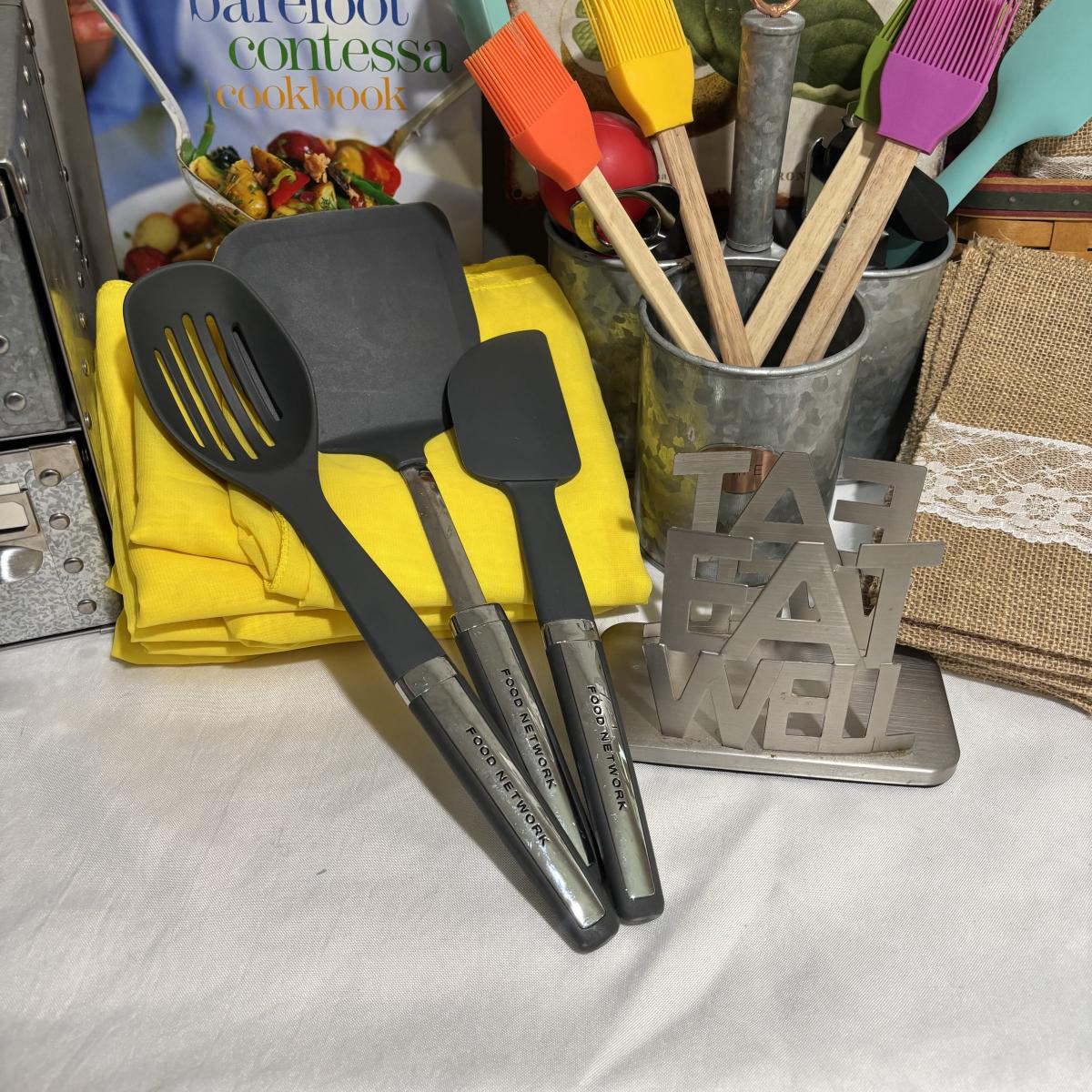 LOT 136: Kitchen Collection Featuring Longaberger Basket, Crate & Barrel and Food Network Utensils,(40) Burlap Flatware Holders, Cookbooks, Recipe Boxes, Ten (10) Table Scarves, and More