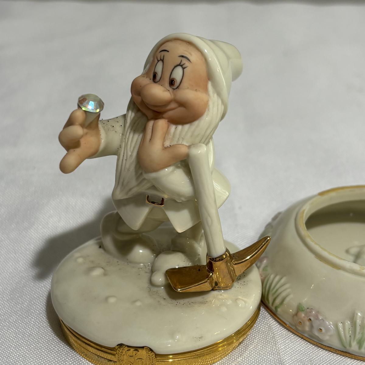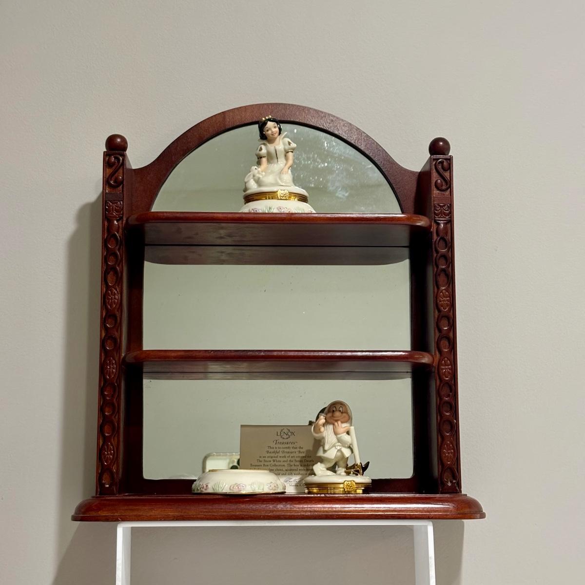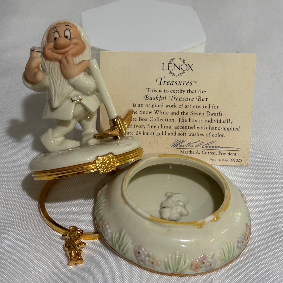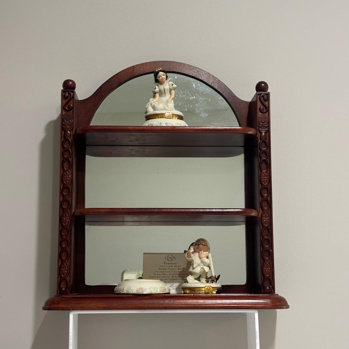 LOT::143: Lenox Disney’s Snow White and Bashful Trinket Boxes with Trinkets/Charms and Mirrored Display Shelf