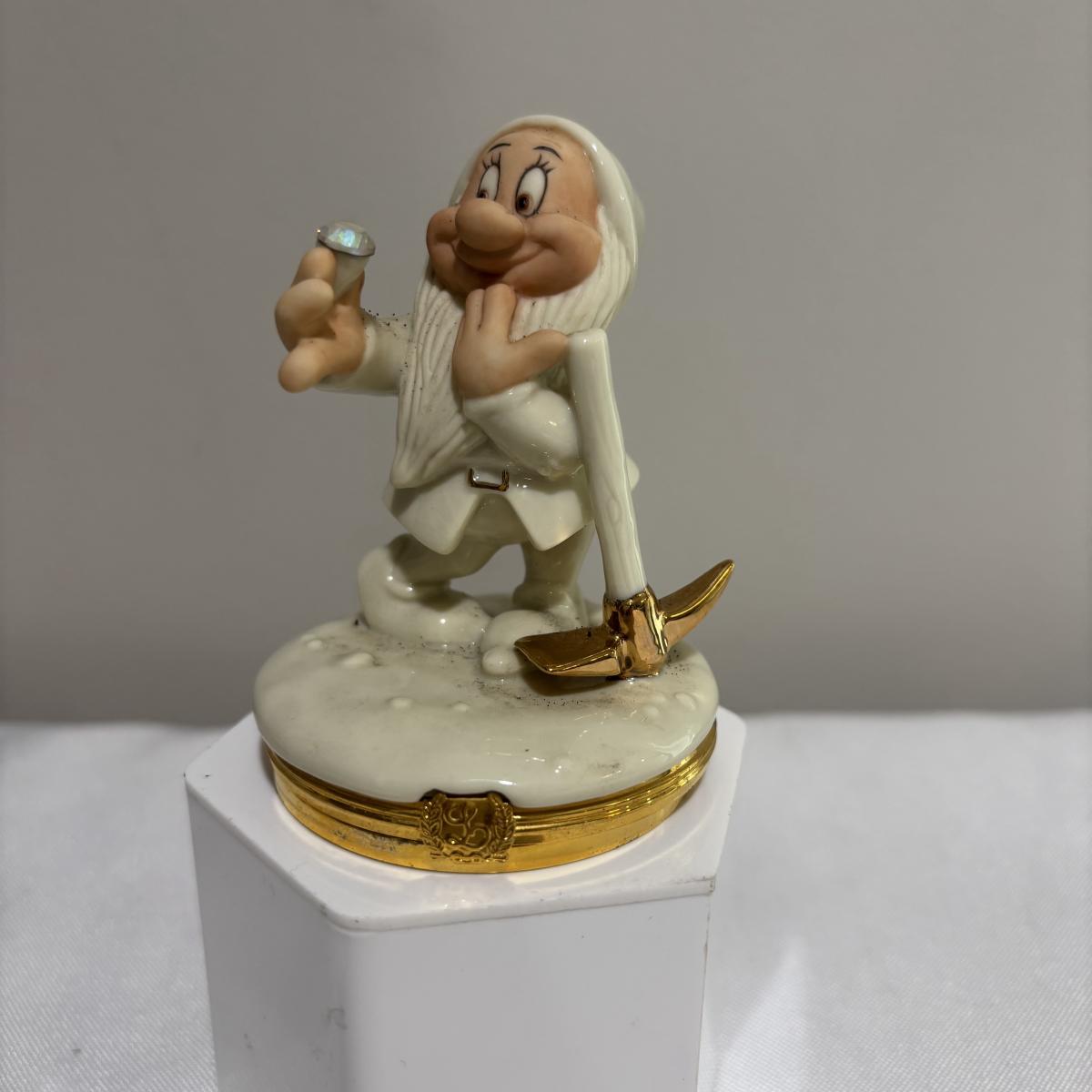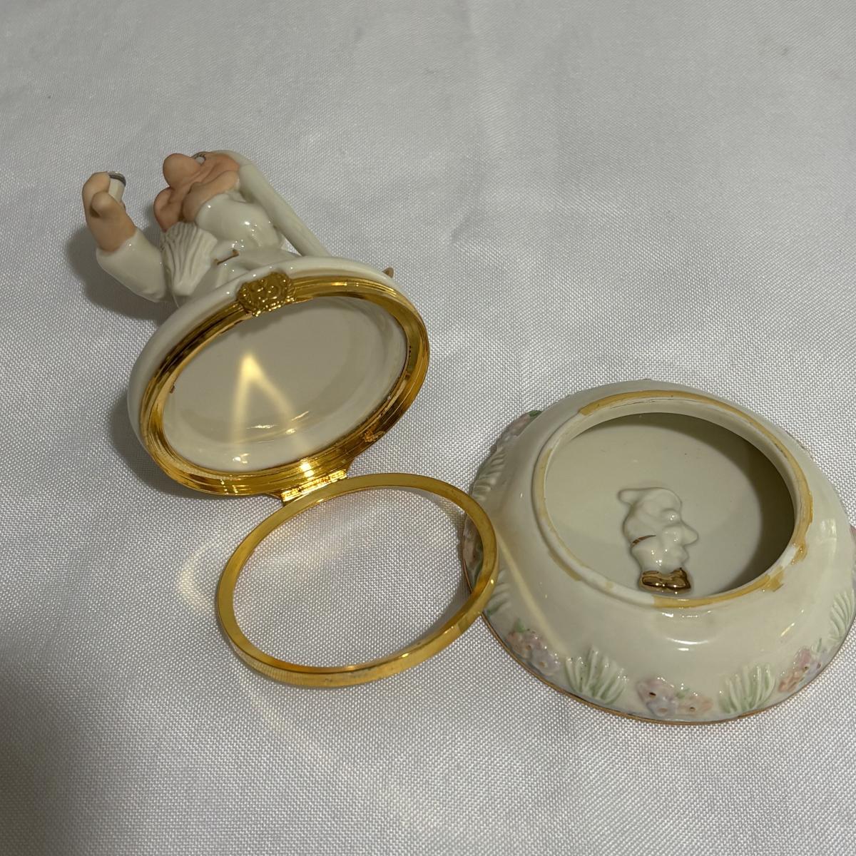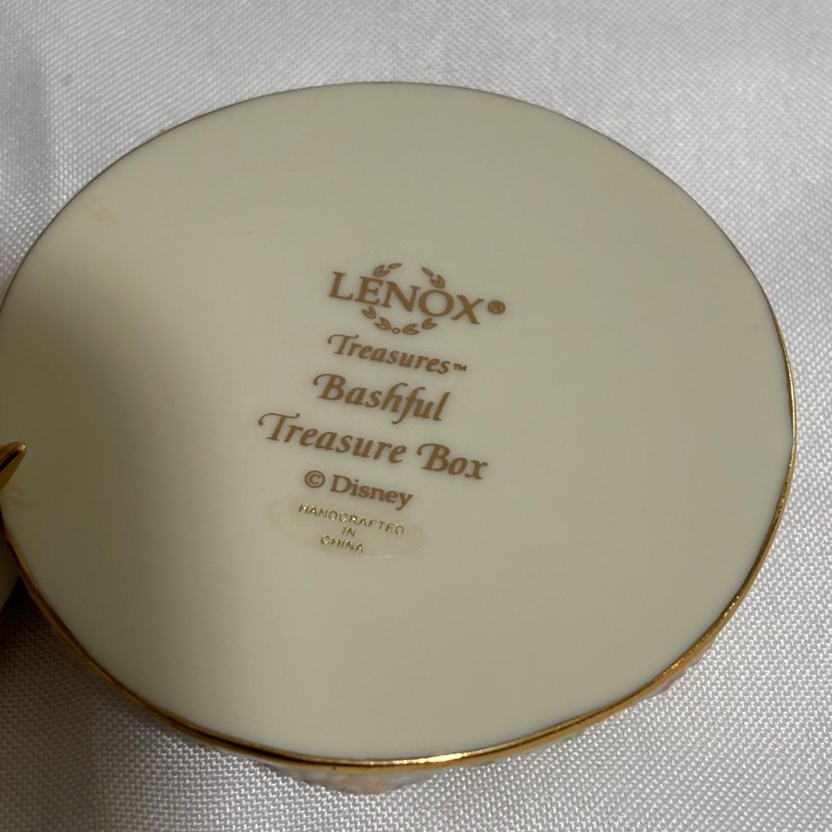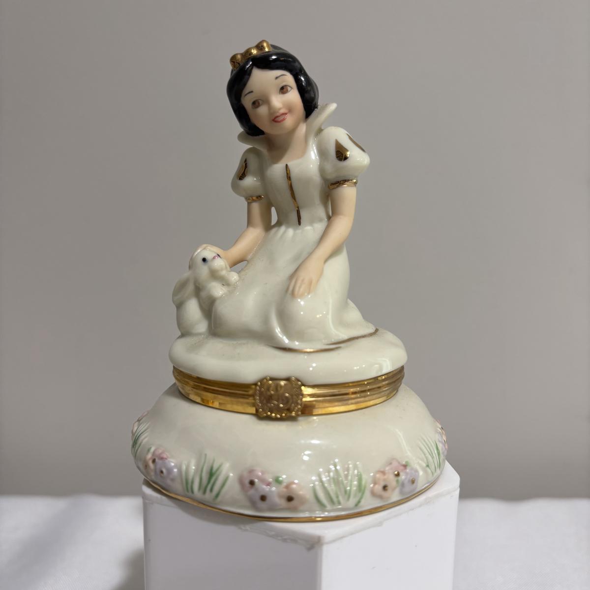 LOT::143: Lenox Disney’s Snow White and Bashful Trinket Boxes with Trinkets/Charms and Mirrored Display Shelf