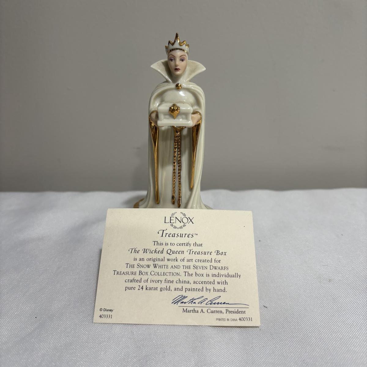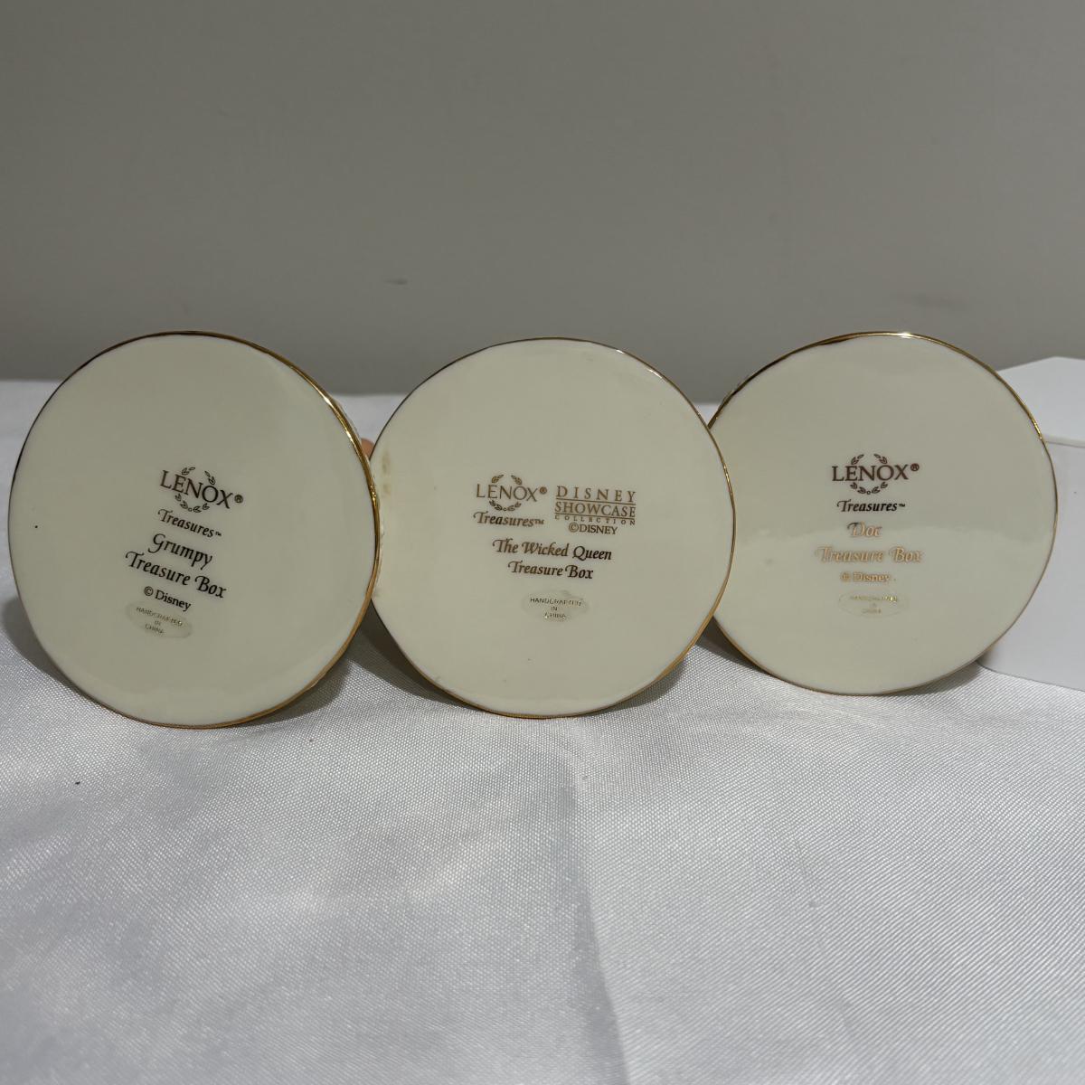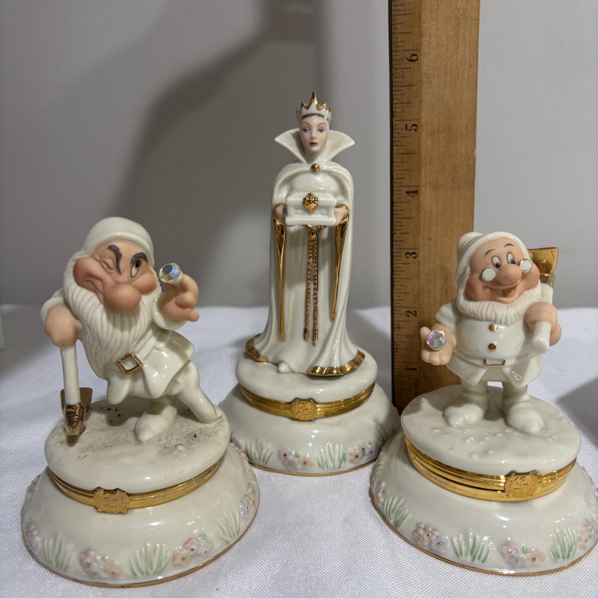 LOT 144: Disney Snow White and the Seven Dwarfs Collection Trinket /Treasure Boxes - The Evil Queen with COA, Grumpy and Doc with Golden Trinket/Charm