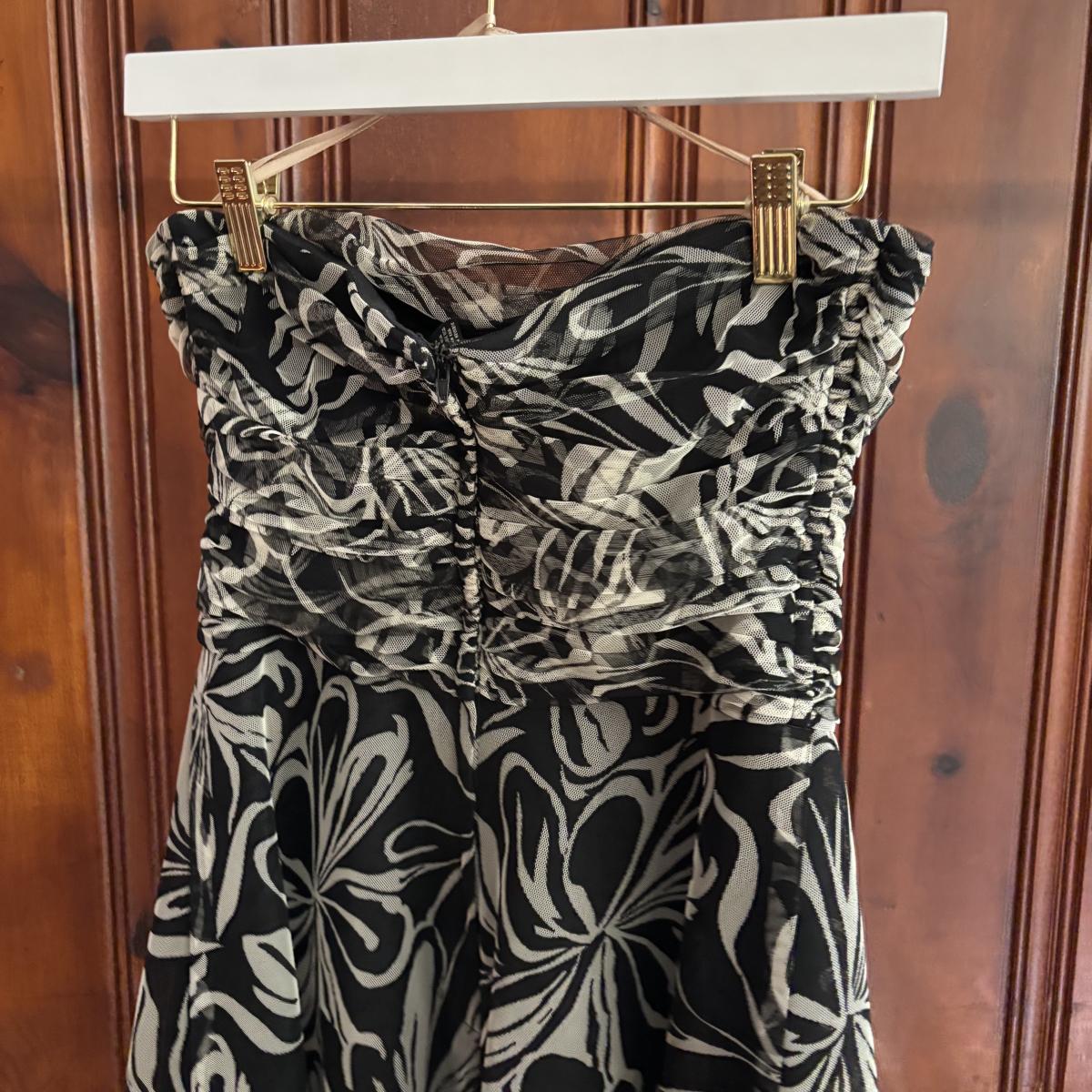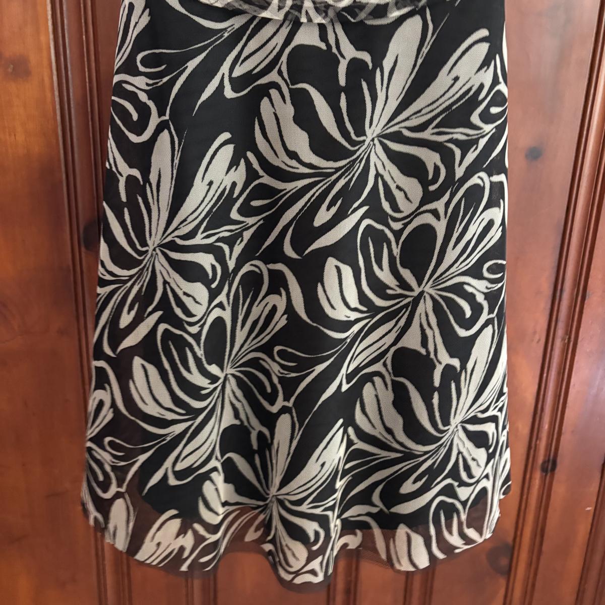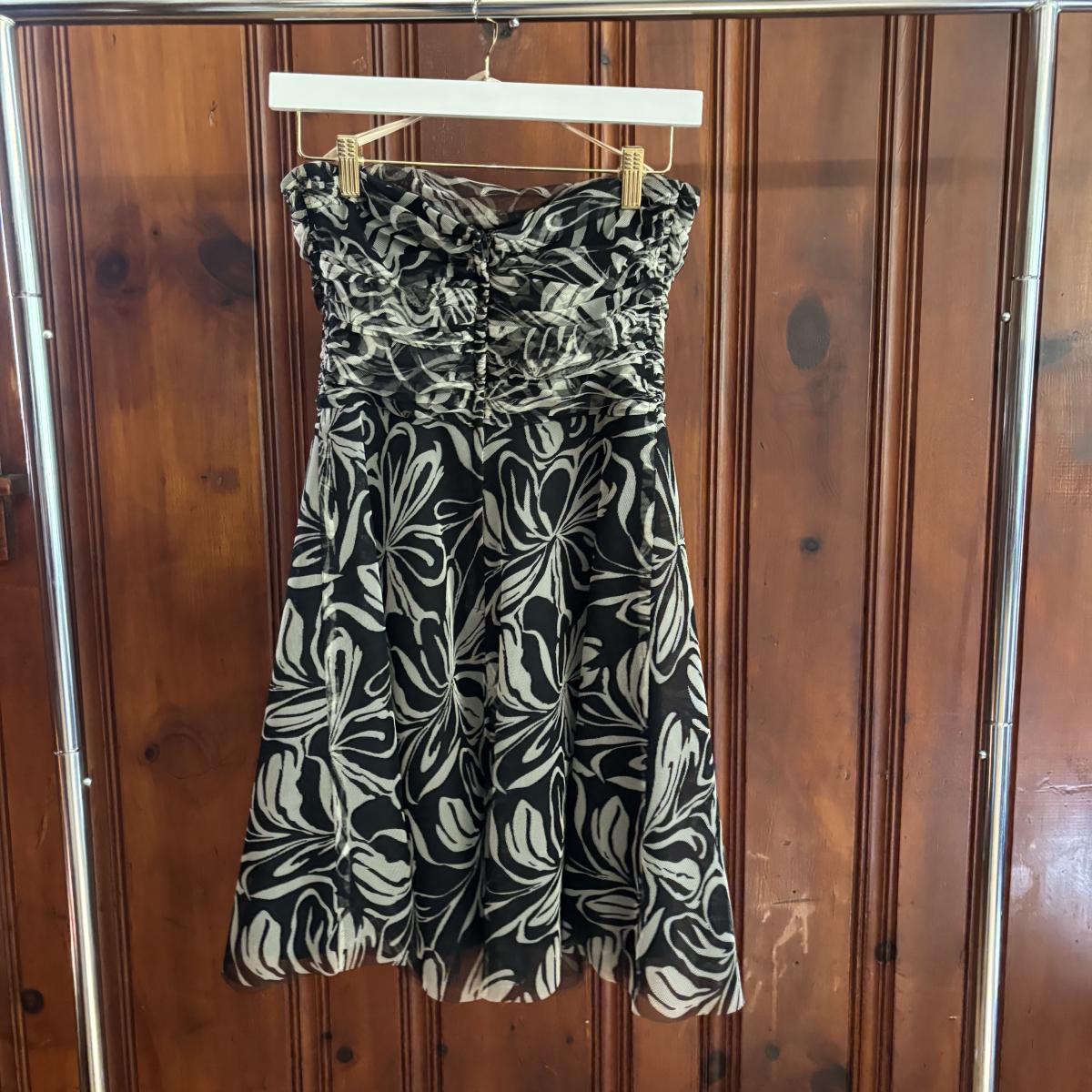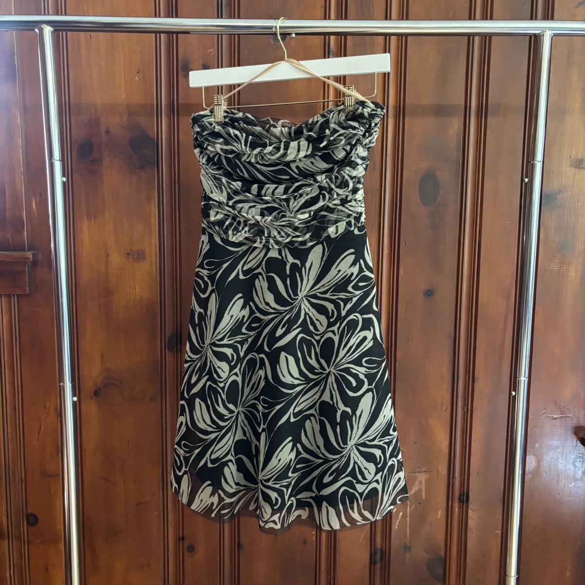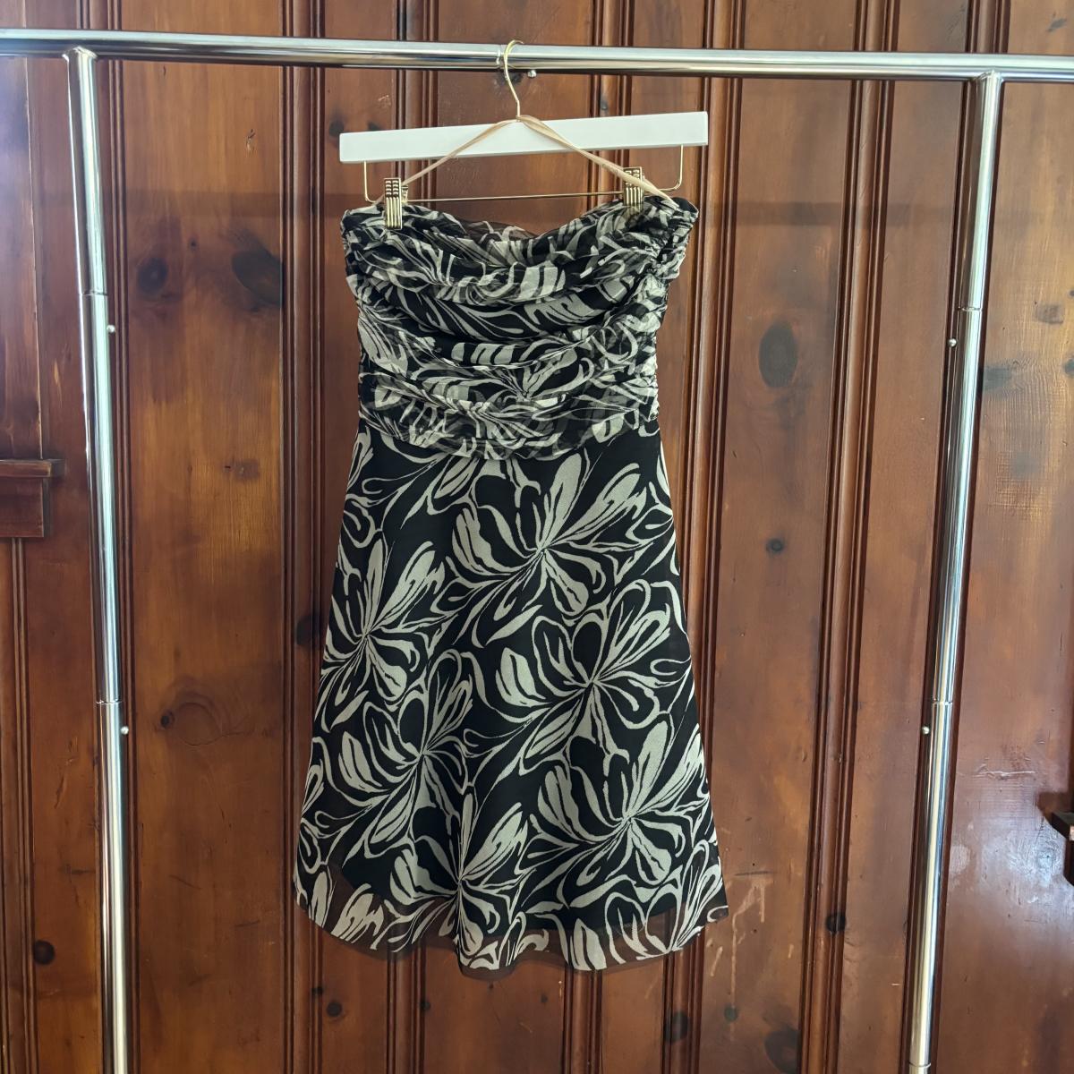 LOT 149: BCBG Max Azria Sleeveless Chiffon Black and Tan Floral Dress