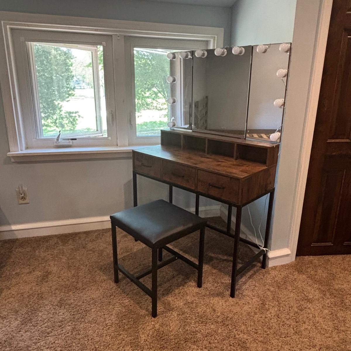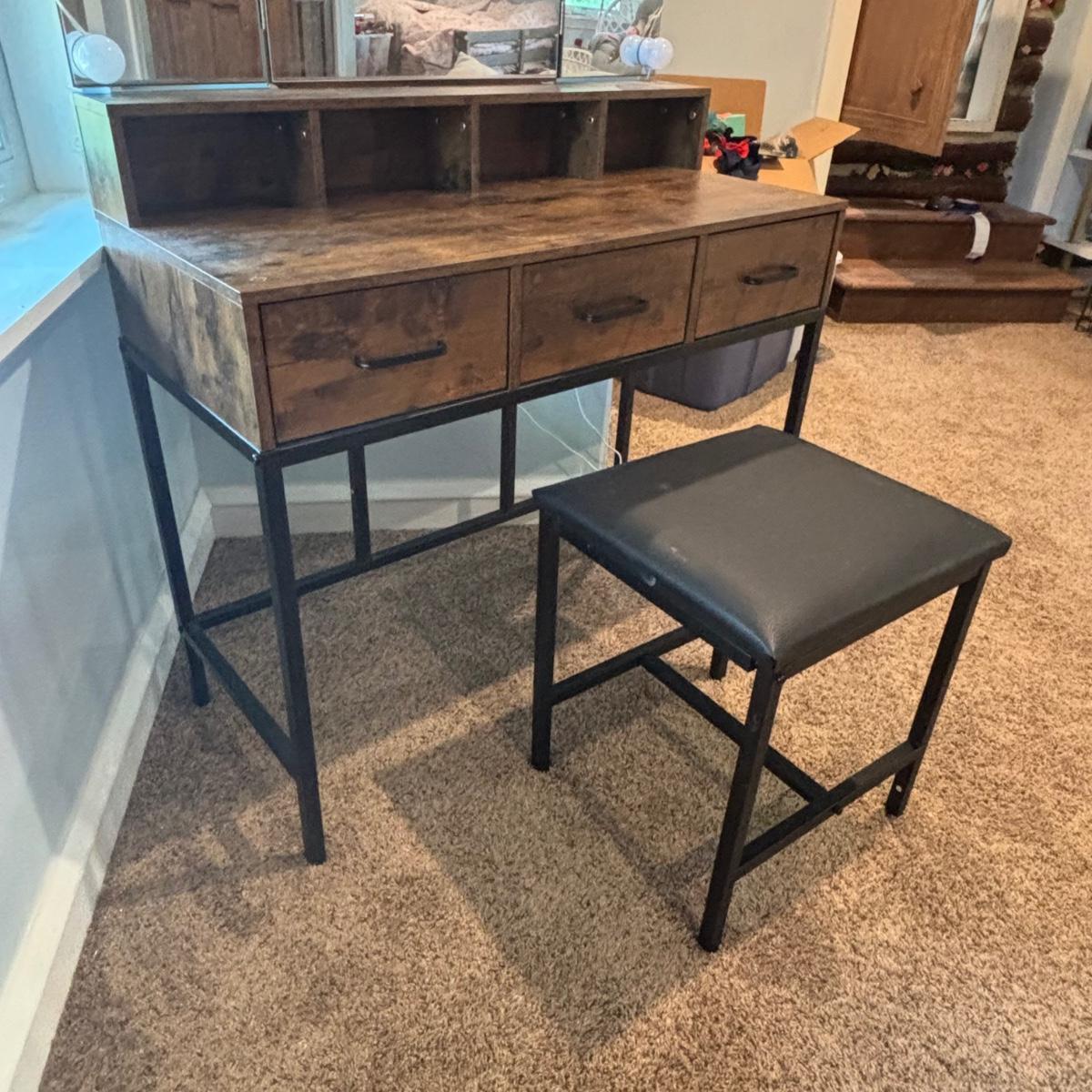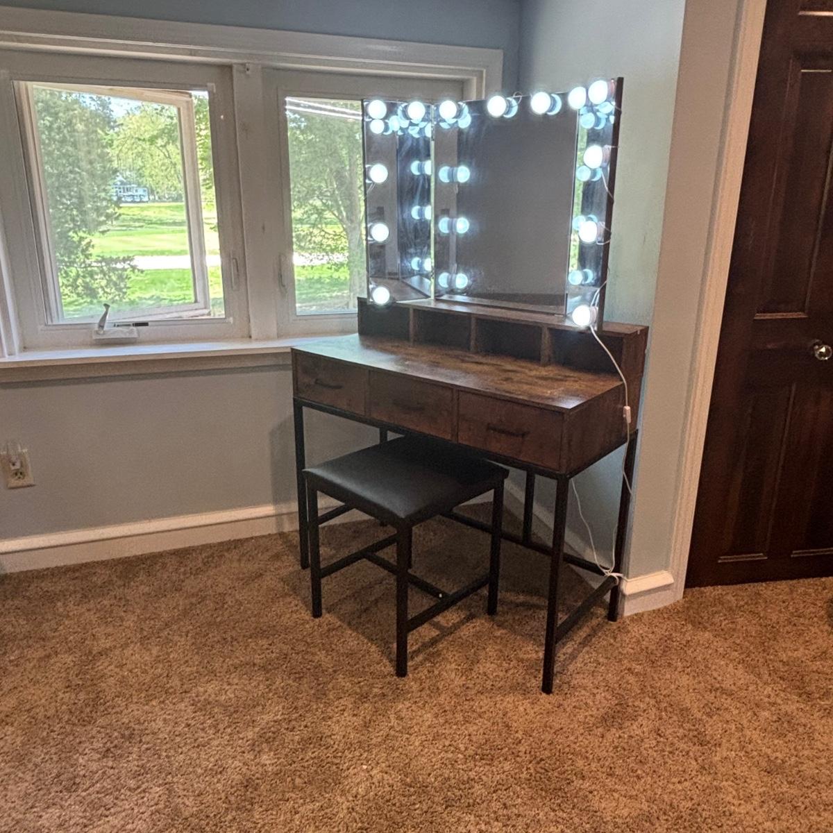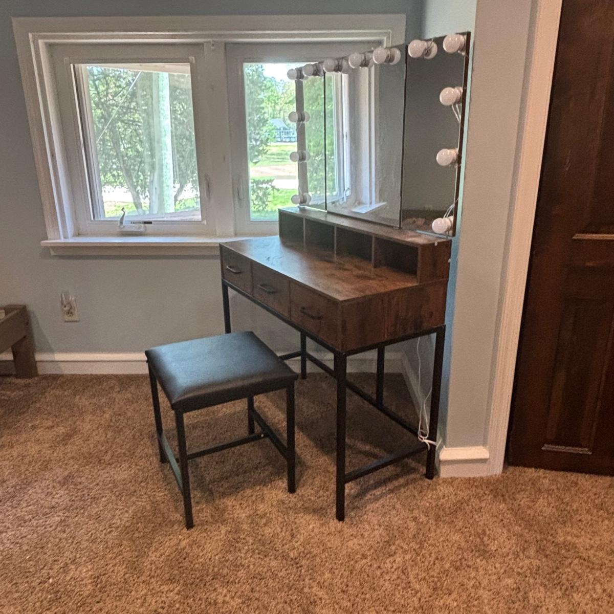 LOT 162: Rustic Vanity w/Press on Lights * Stool