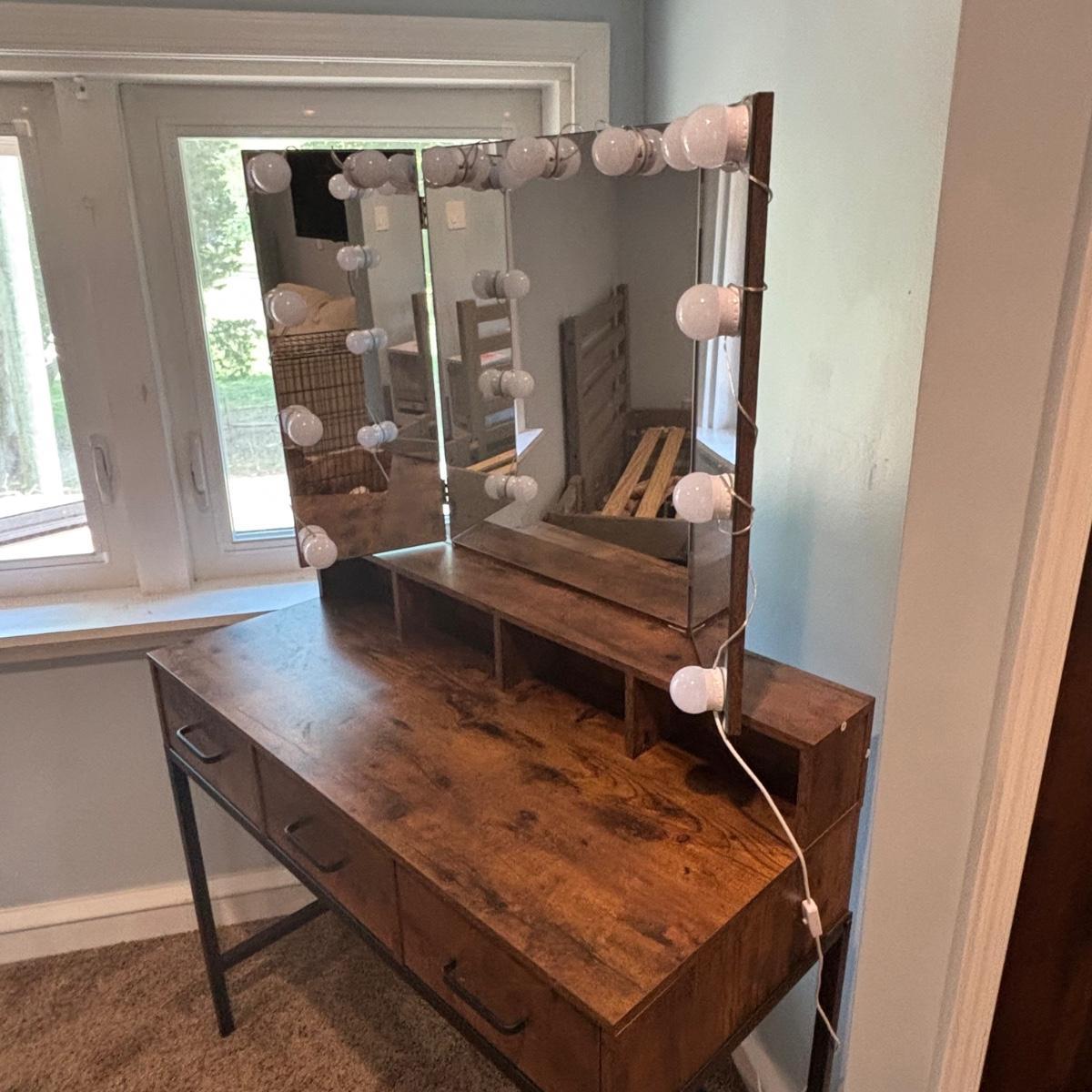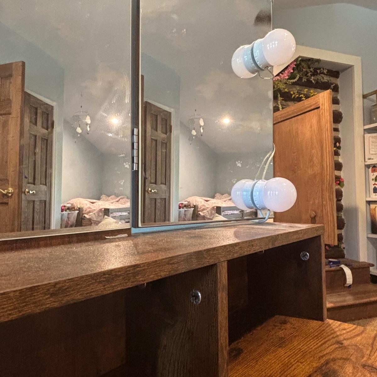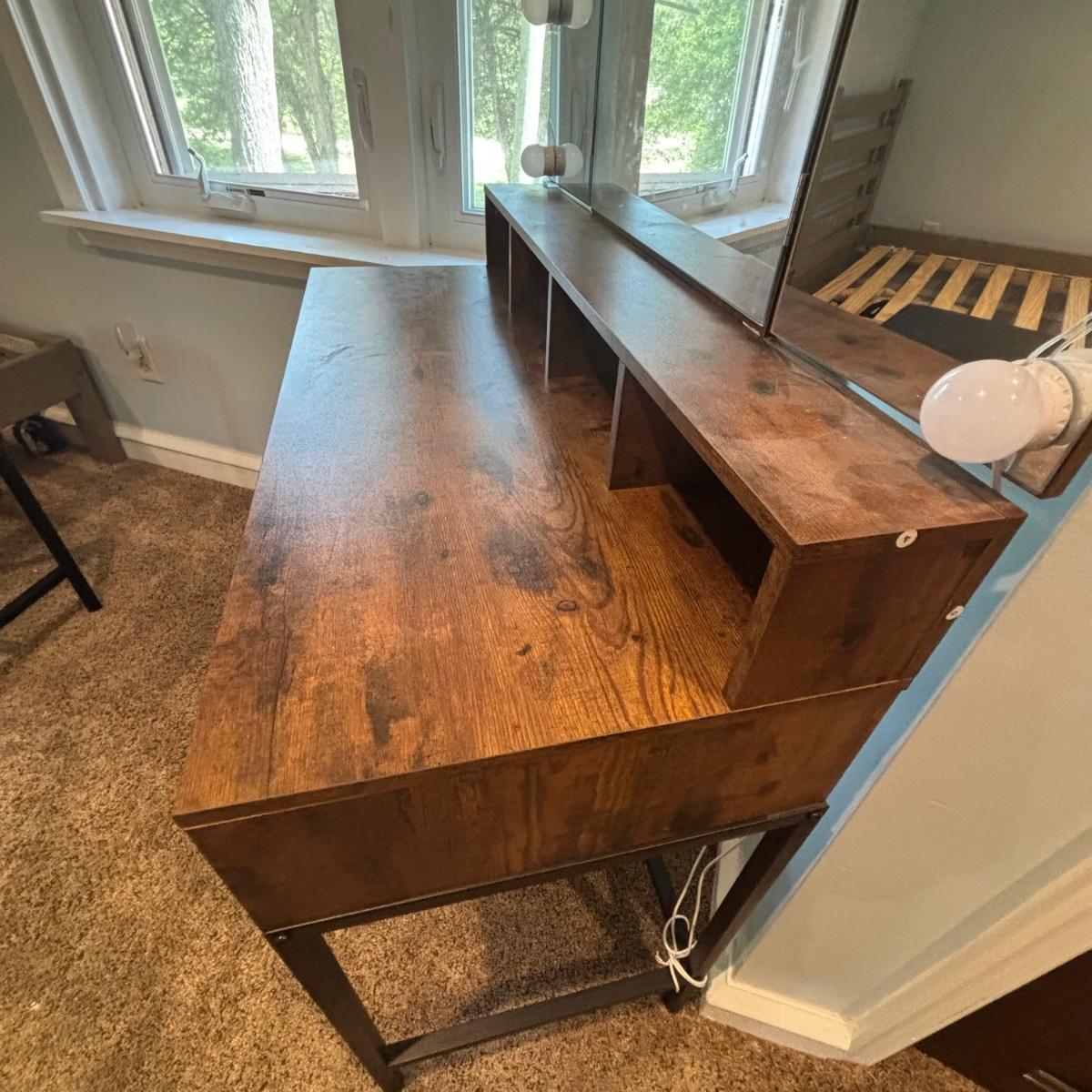 LOT 162: Rustic Vanity w/Press on Lights * Stool