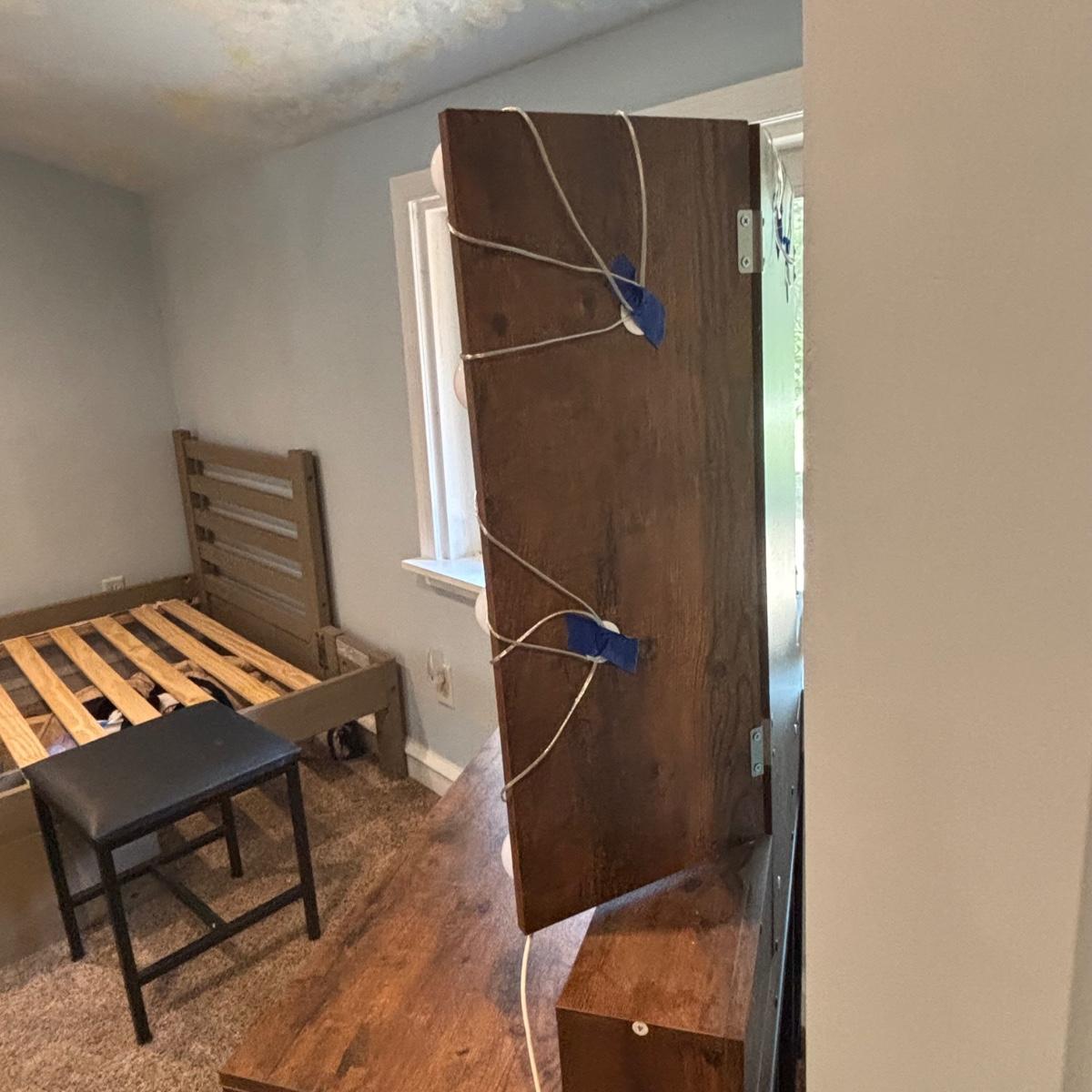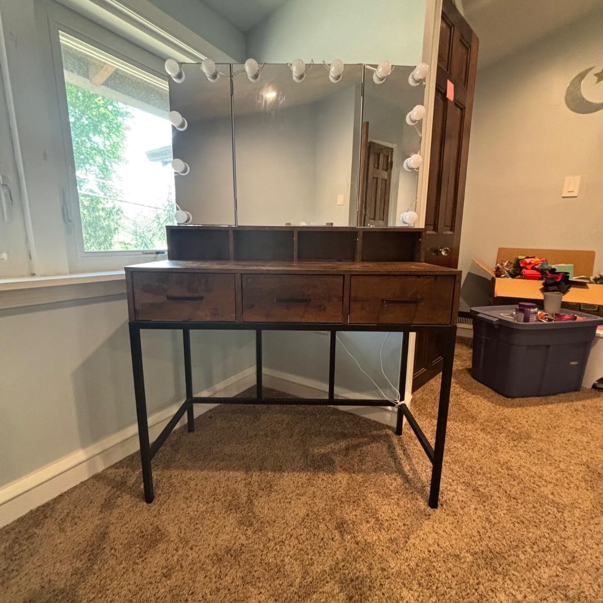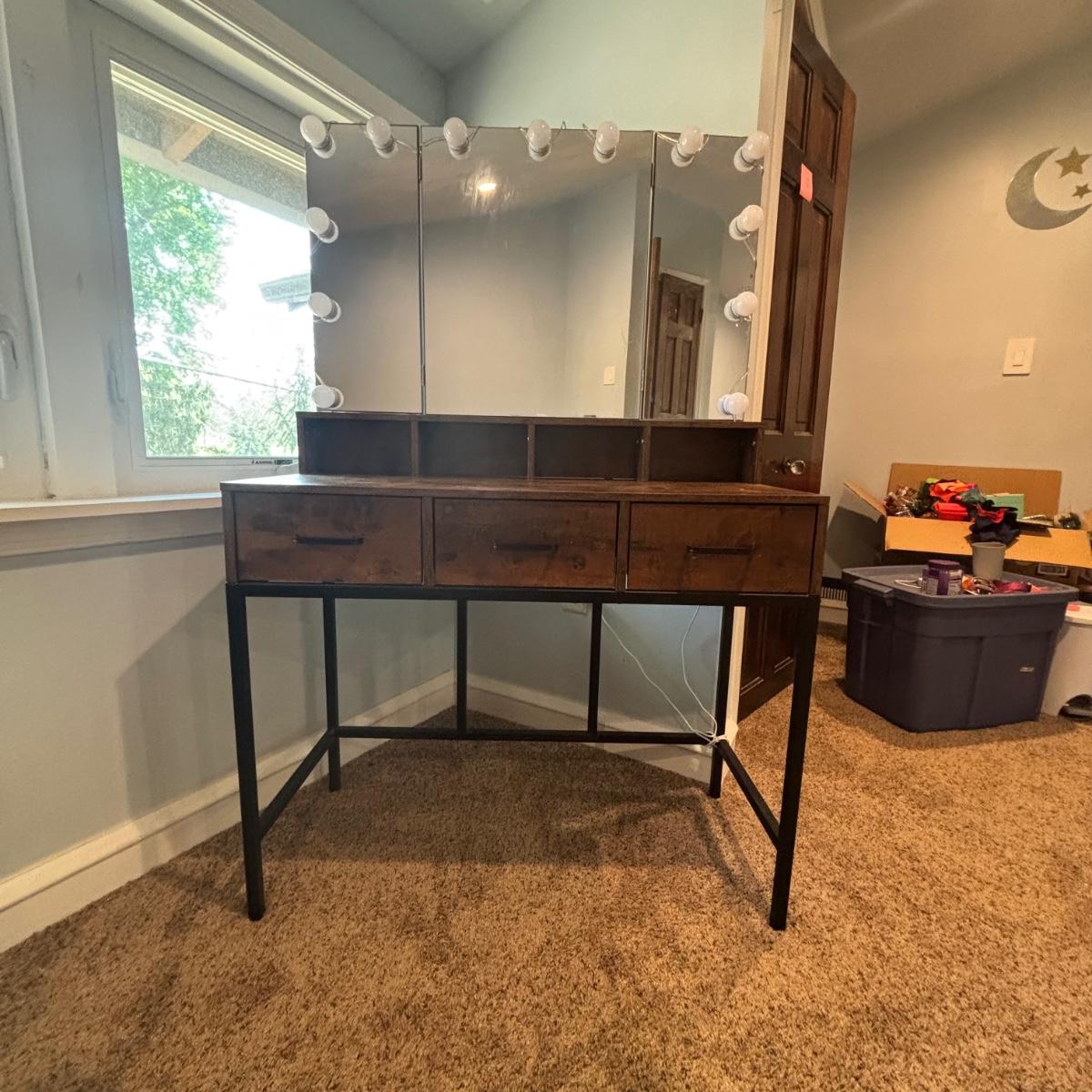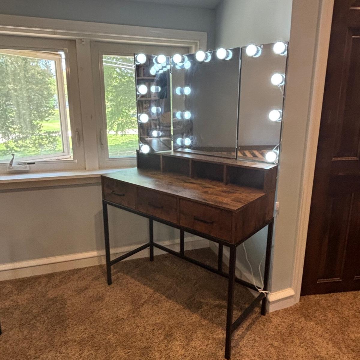 LOT 162: Rustic Vanity w/Press on Lights * Stool