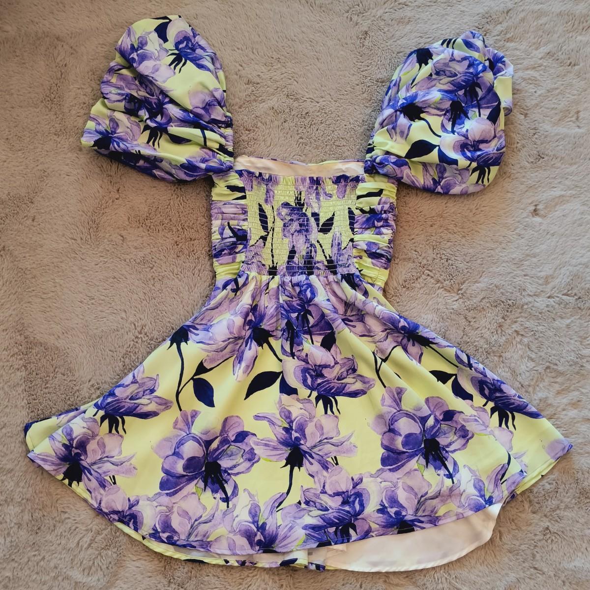 LOT 169: Delfi Collective Puff-Sleeve Floral Mini Dress Women's Size XS