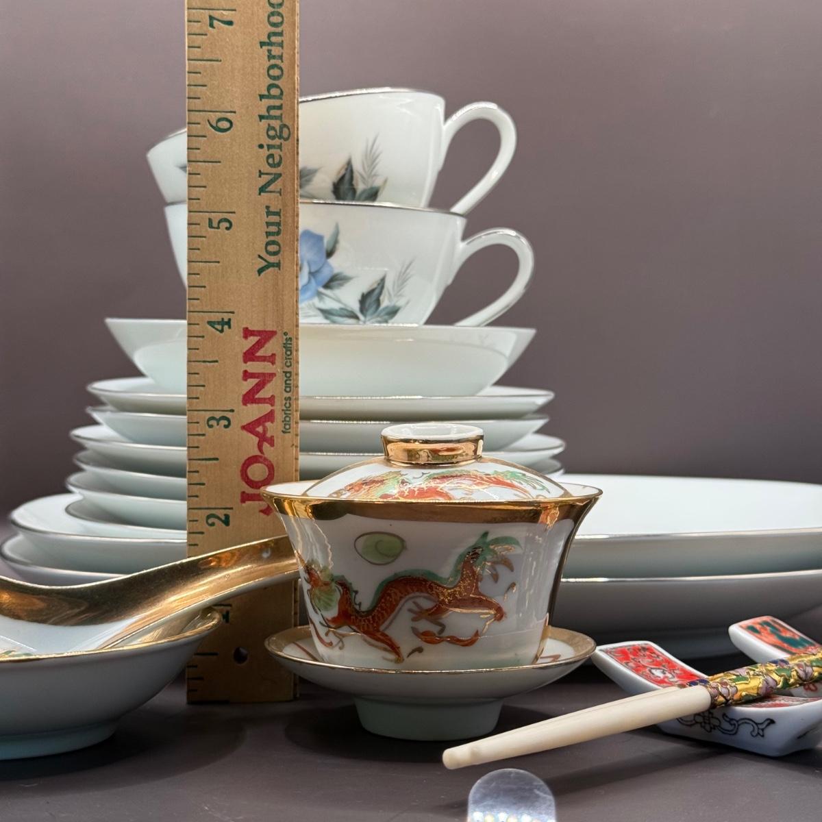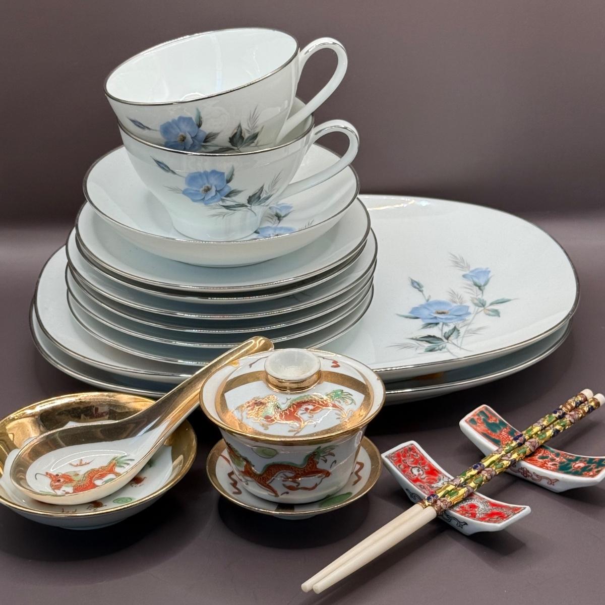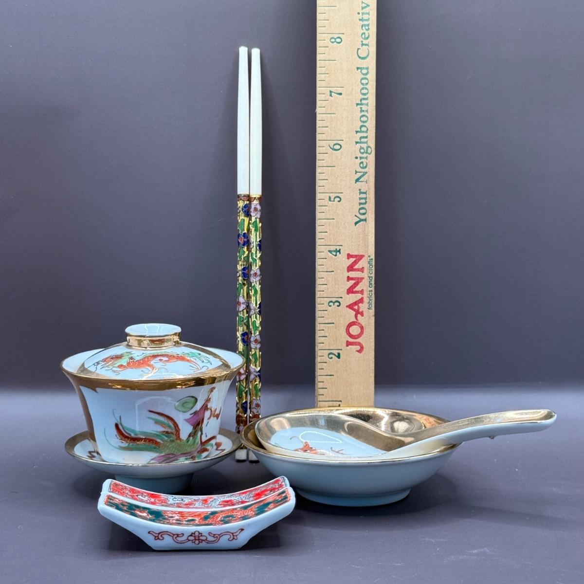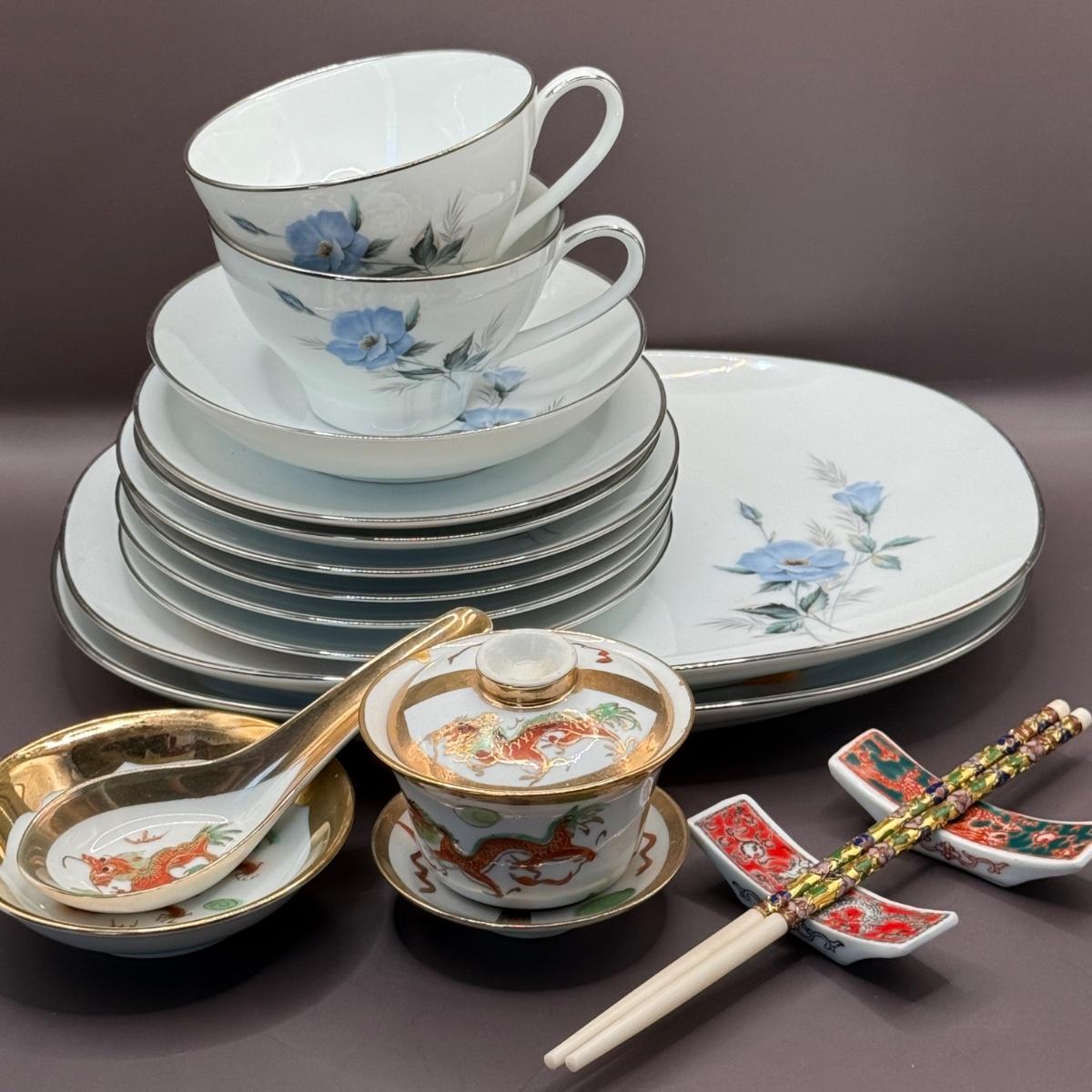 LOT 8D: Noritake Sylvia China Set, Vintage Chinese Cloisonne Chopsticks & More
