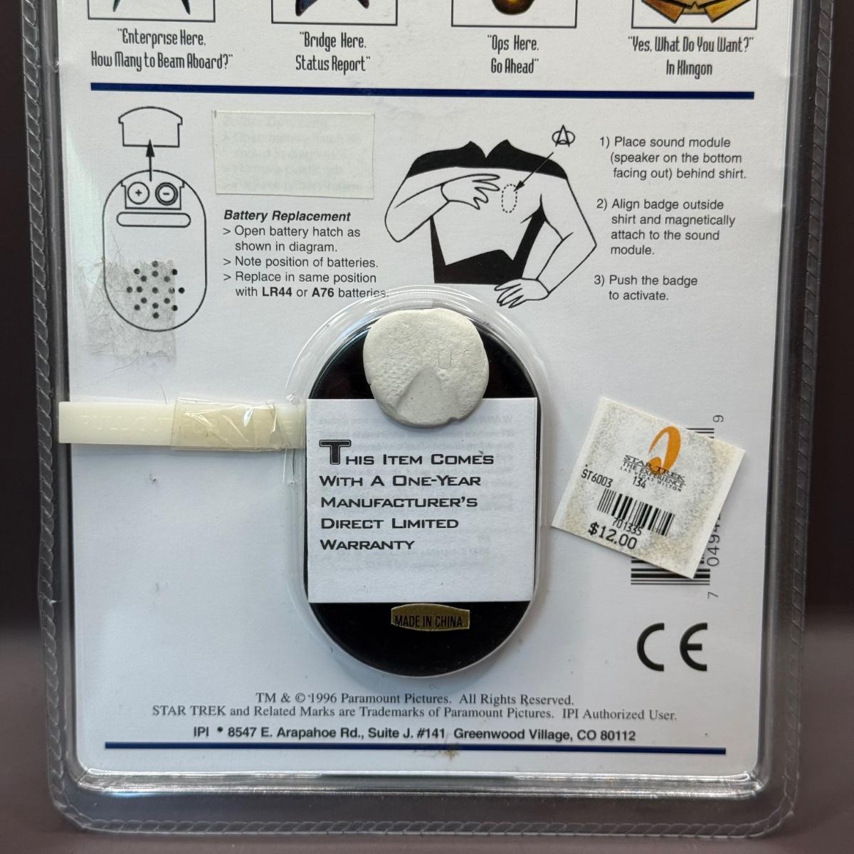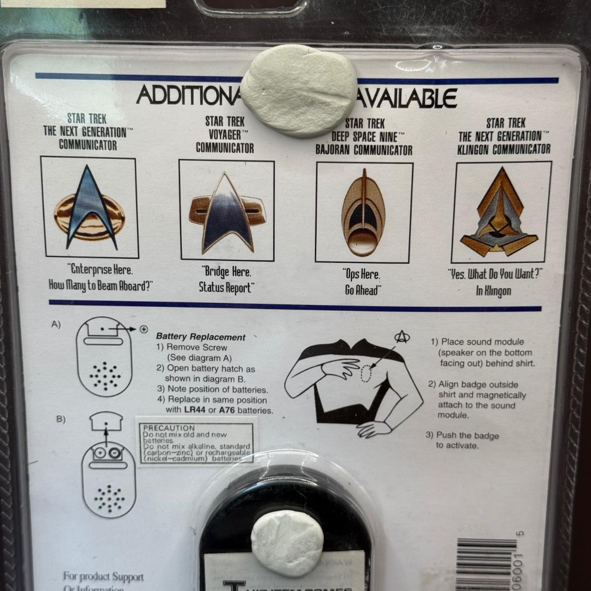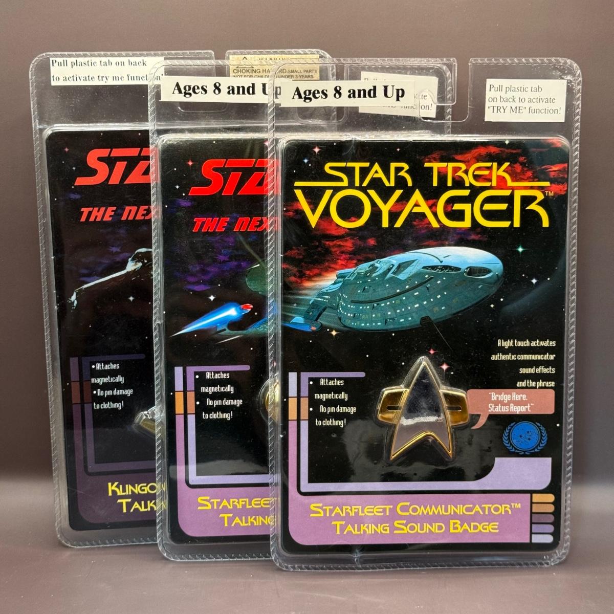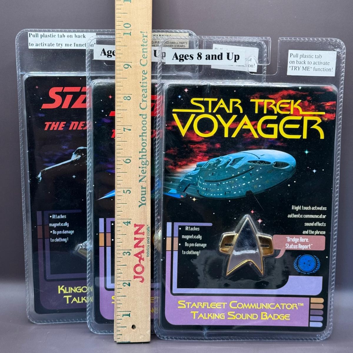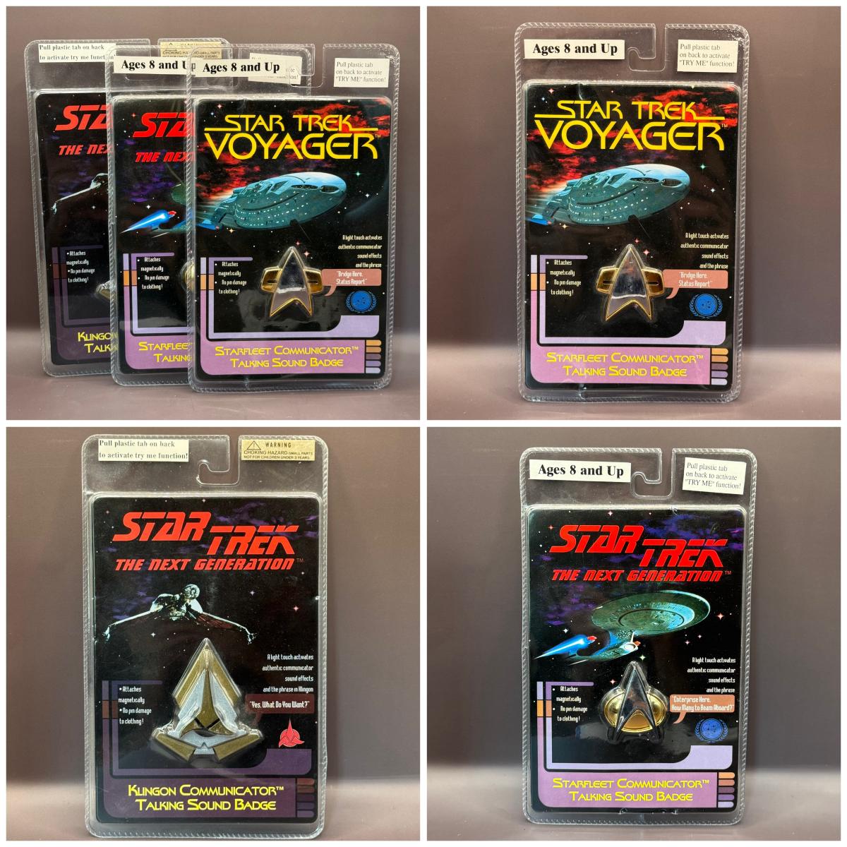 LOT 10P: Star Trek: The Next Generation Starfleet, Voyager Starfleet & Klingon Communicator Talking Sound Badges in Package