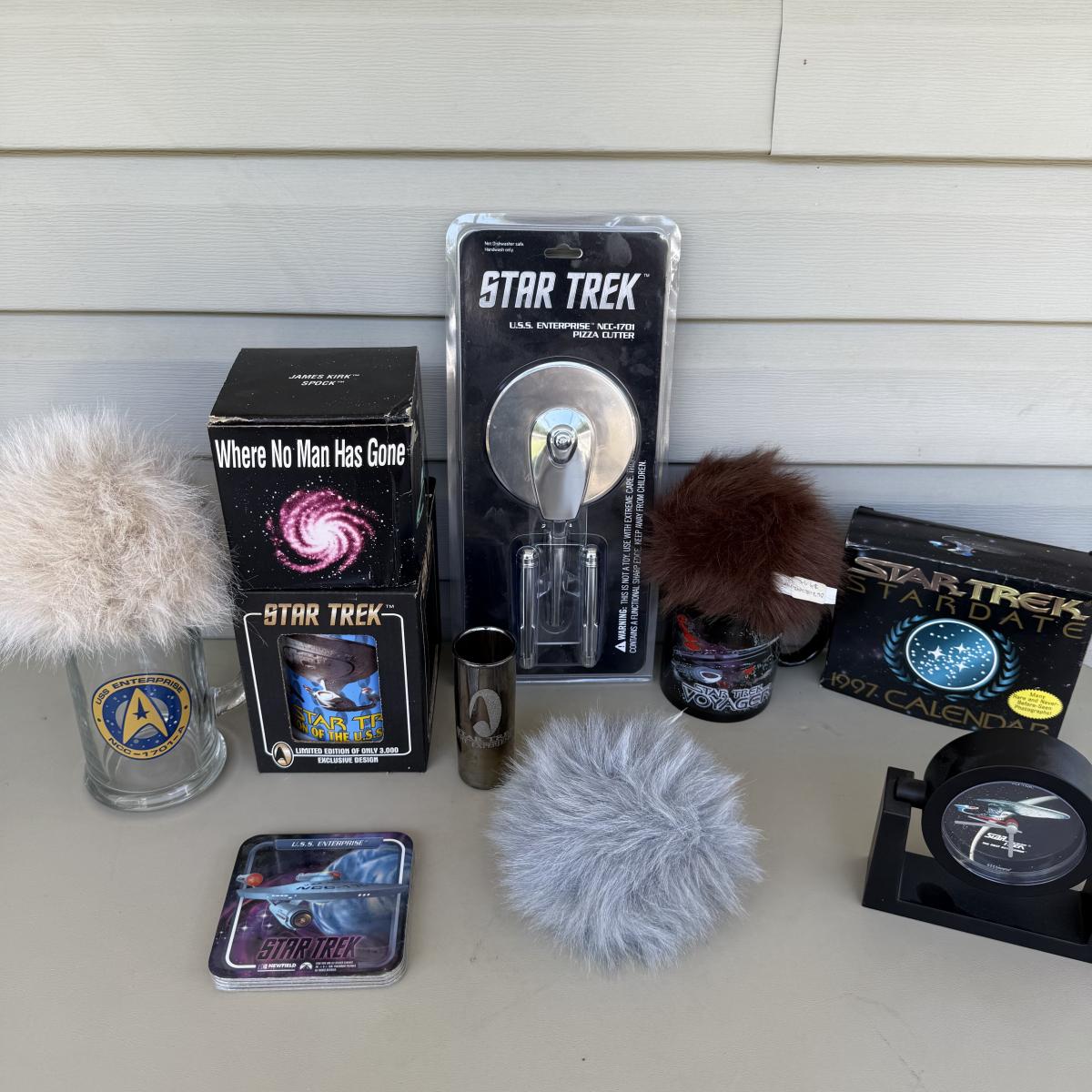 LOT 14P: Star Trek Collectibles - 1997 Calendar, U.S.S. Enterprise NCC-1701 Pizza Cutter & More