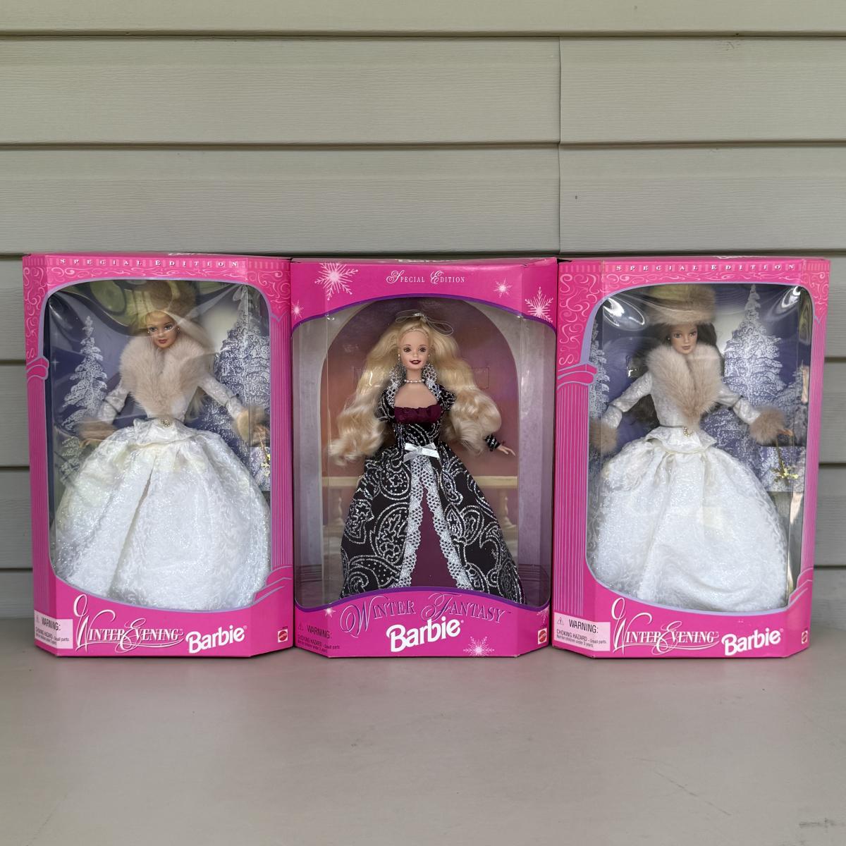 LOT 19P: NRFB Mattel Barbie Doll Special Edition Winter Fantasy 17249 & Winter Evening 19218