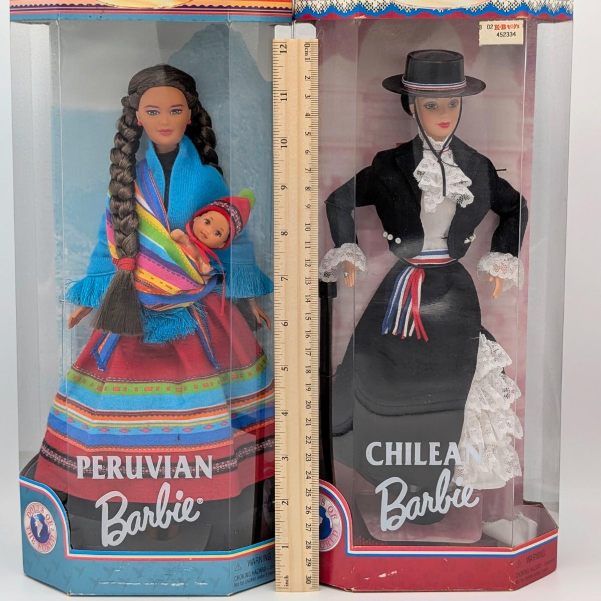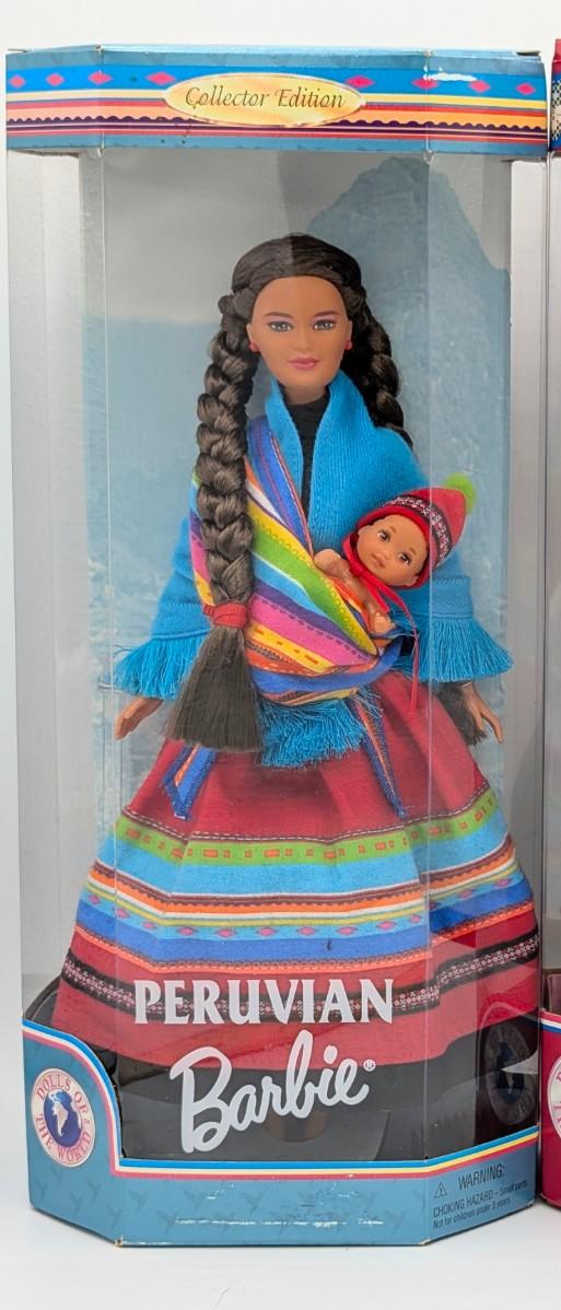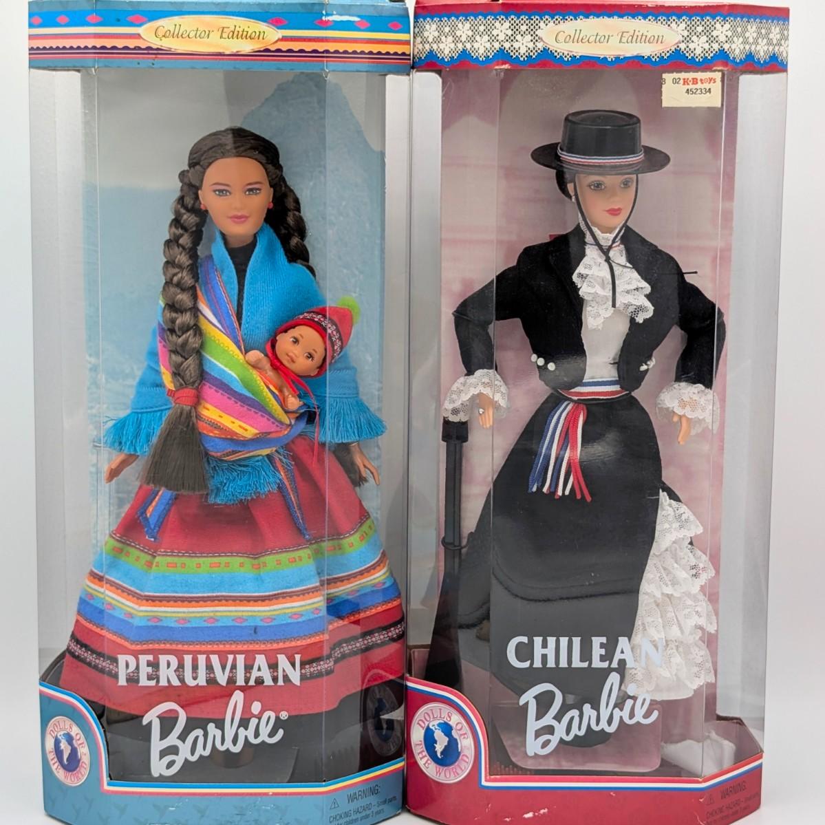 LOT 35P: NRFB Mattel Barbie Collector Editions Peruvian Barbie 1998 ID # 21506 & Chilean Barbie 1997 ID # 18559