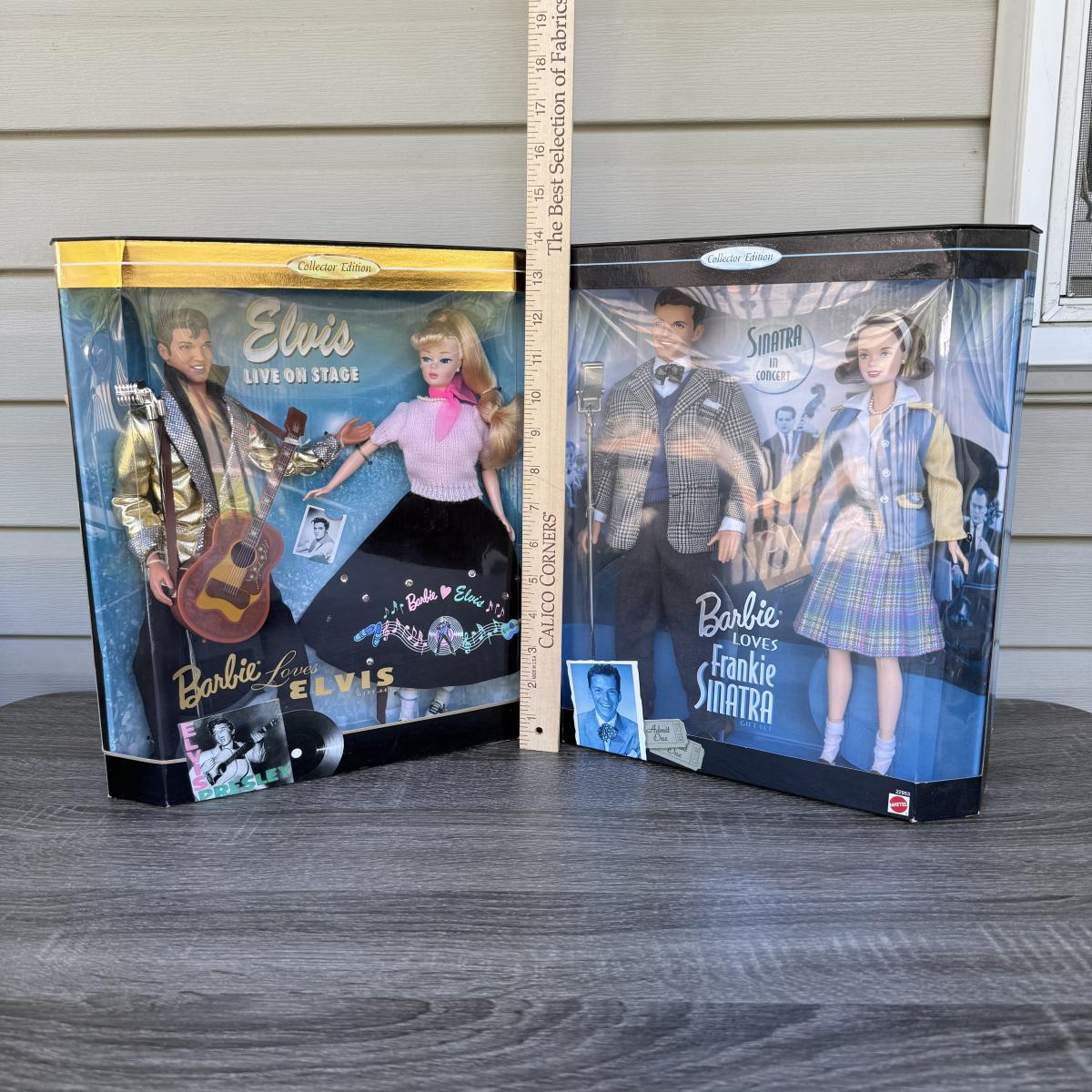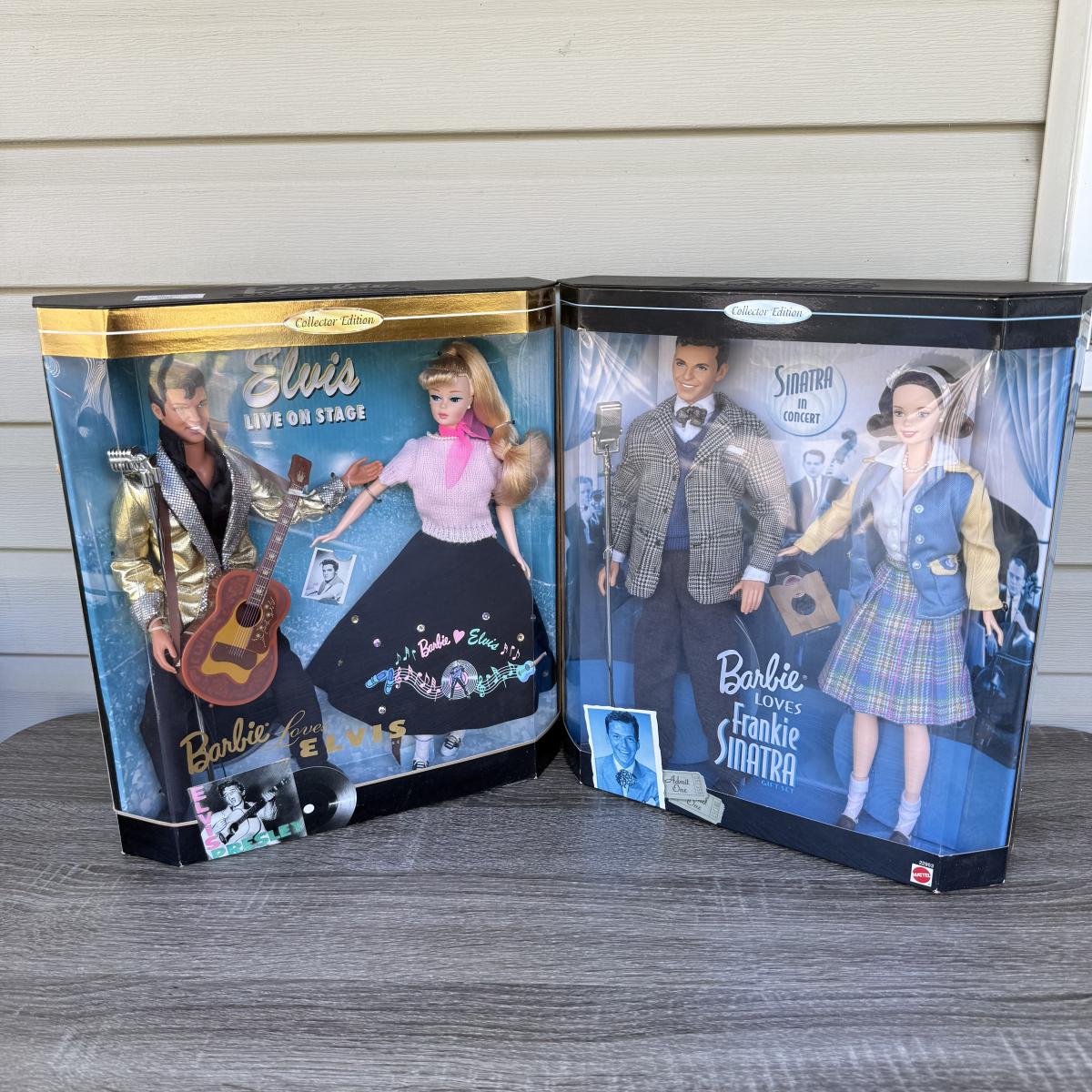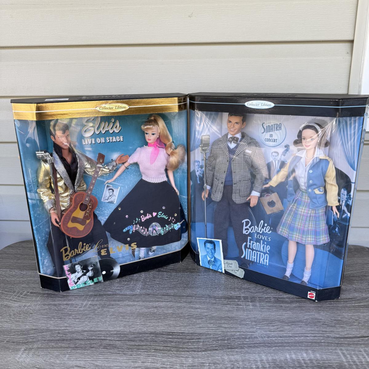LOT 43P: NRFB Mattel Barbie Collector Edition Giftsets: 1996 Barbie Loves Elvis (17450) & 1999 Barbie Loves Frankie Sinatra (22953)