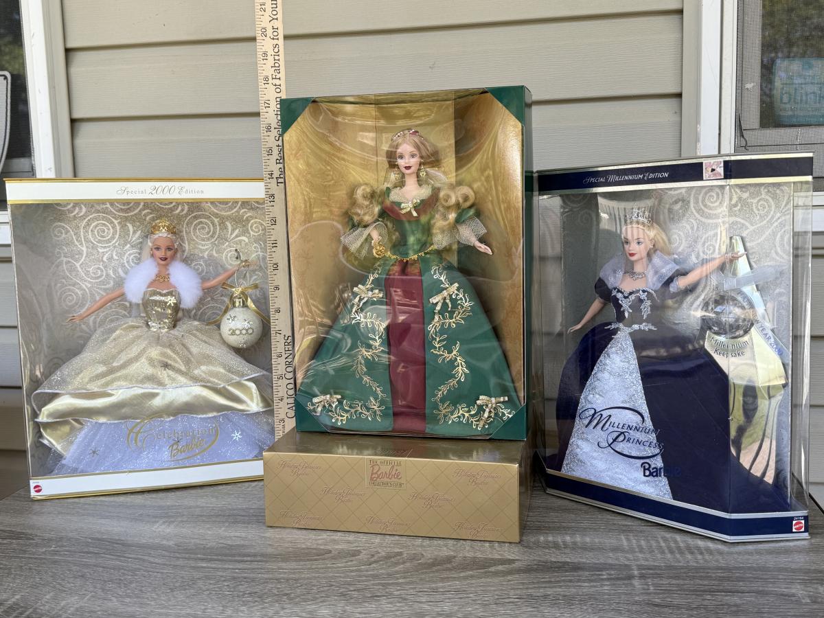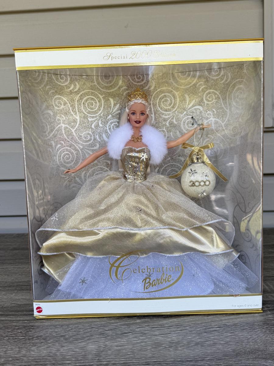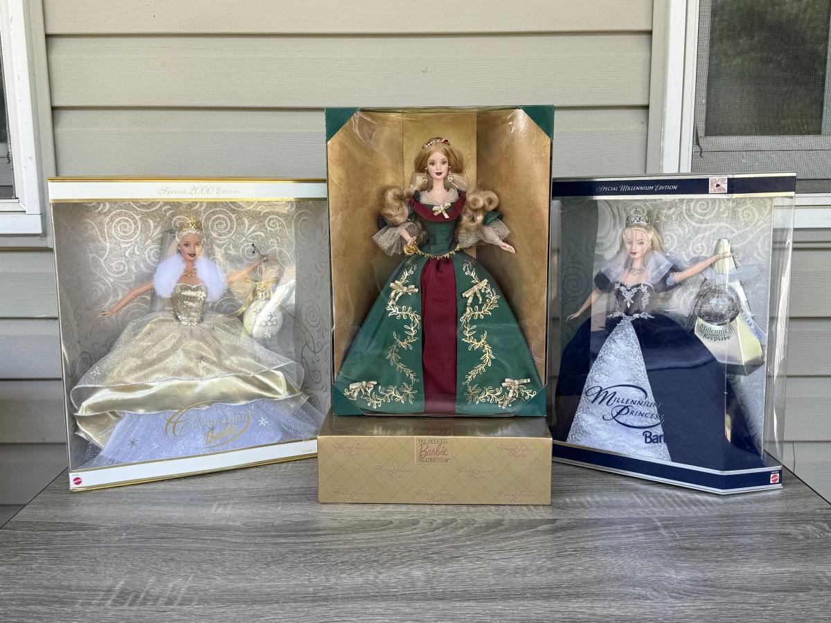 LOT 50P: NRFB Mattel Barbie Dolls: 2000 Limited Edition Barbie Collector Club Holiday Treasures Barbie (27673), 1999 Millennium Princess (24154) & 2000 Celebration Barbie (28269)