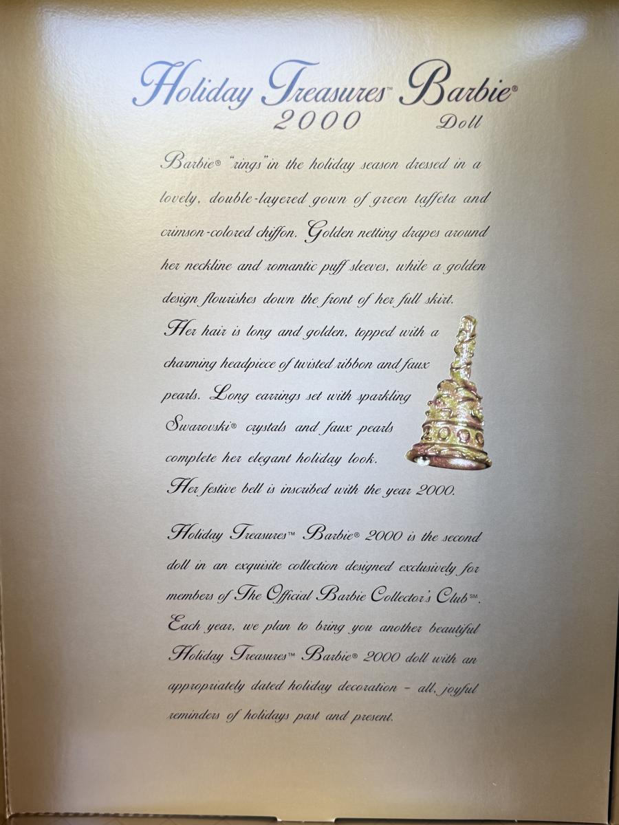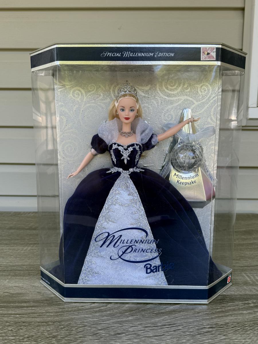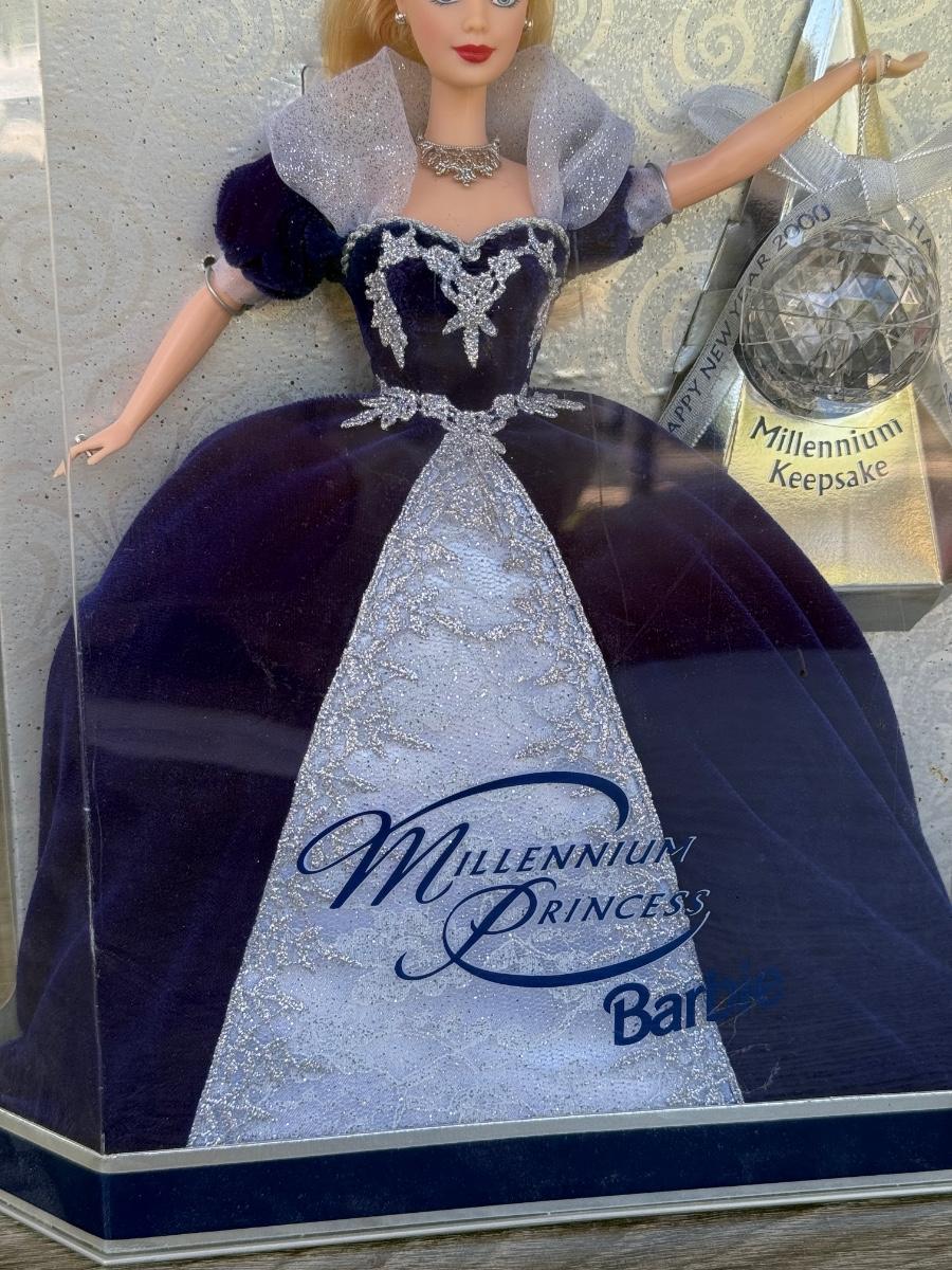 LOT 50P: NRFB Mattel Barbie Dolls: 2000 Limited Edition Barbie Collector Club Holiday Treasures Barbie (27673), 1999 Millennium Princess (24154) & 2000 Celebration Barbie (28269)