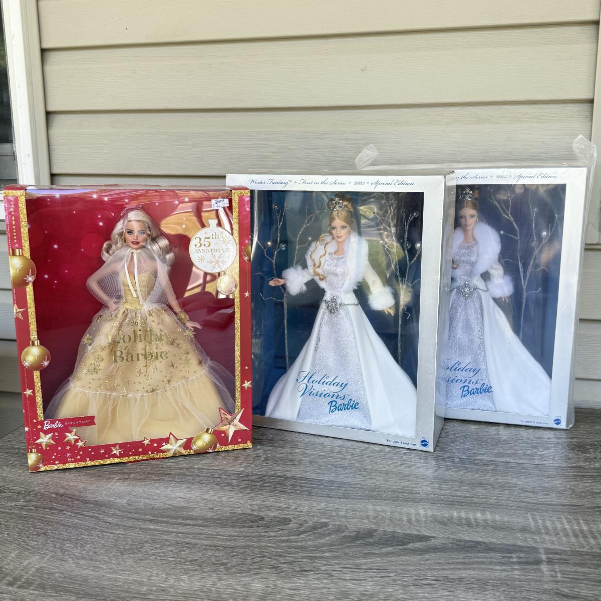 LOT 53P: NRFB Mattel Holiday Barbie Dolls: Barbie Signature 35th Anniversary 2023 Holiday Barbie (HJX04) & Two 2003 Special Edition Winter Fantasy Holiday Visions Barbie (B2519)