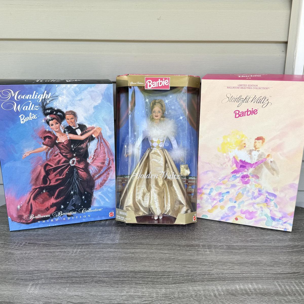 LOT 55P: NRFB Mattel Barbie Dolls: Special Edition 1998 Golden Waltz Barbie (22976) & Ltd Edition Ballroom Beauties Collection: 1995 Starlight Waltz (14070) & 1997 Moonlight Waltz (17763)