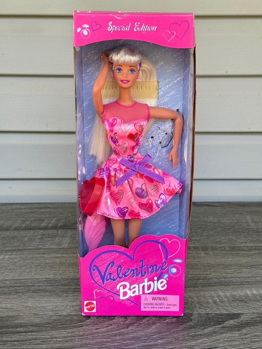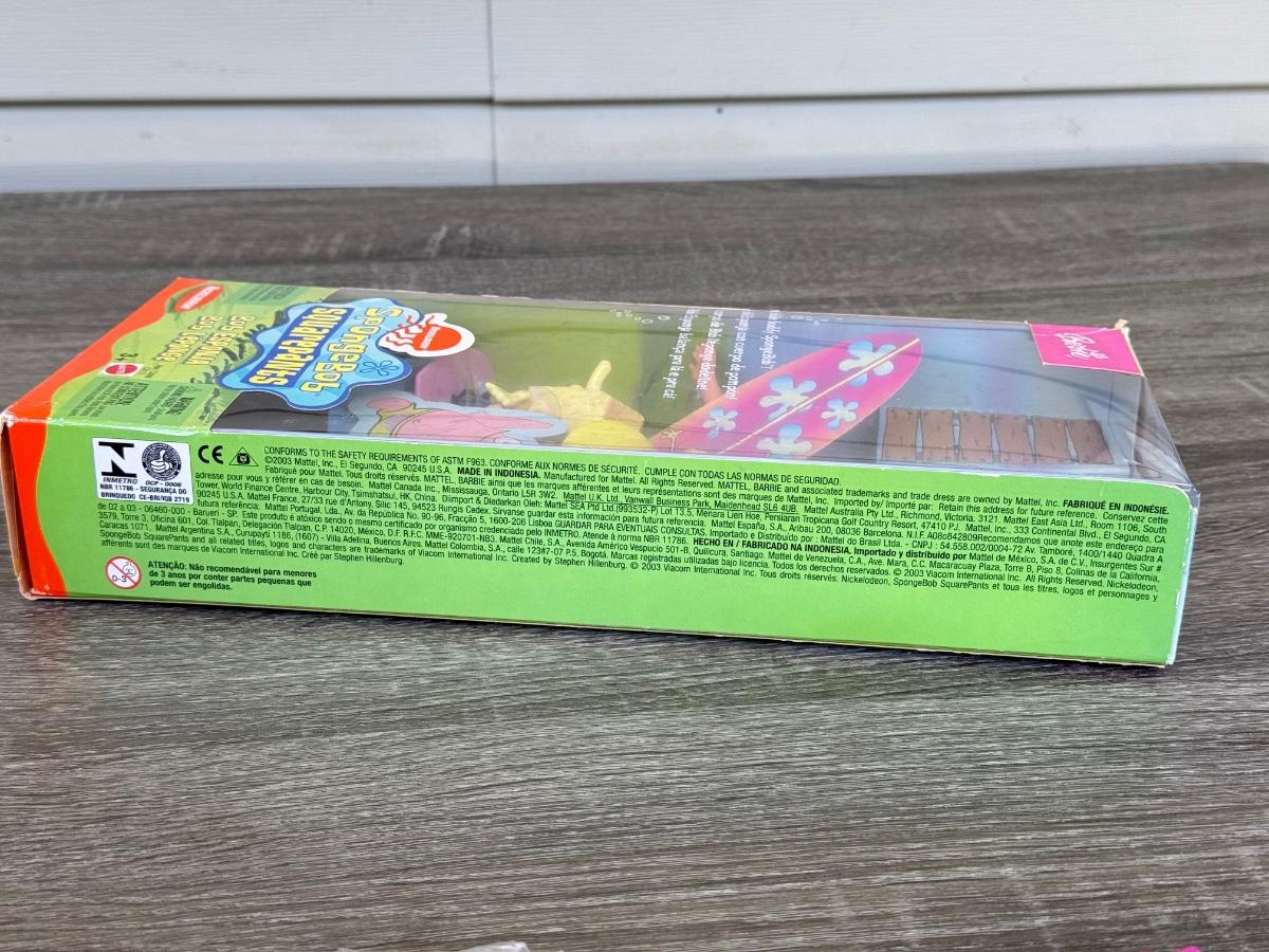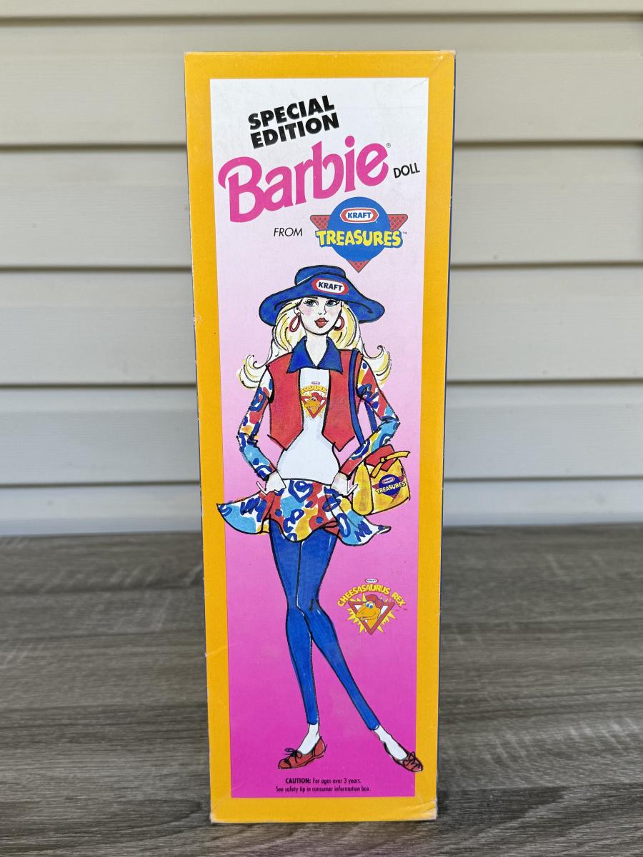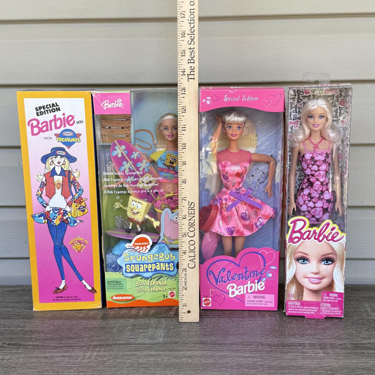 LOT 56P: NRFB Mattel Barbies: 1992 Special Edition Kraft Treasures, 1997 Special Edition Valentine (17649), 2003 Nickelodeon SpongeBob SquarePants (C3699/C3117) & 2013 Play Line Barbie (T7439/BCN31)