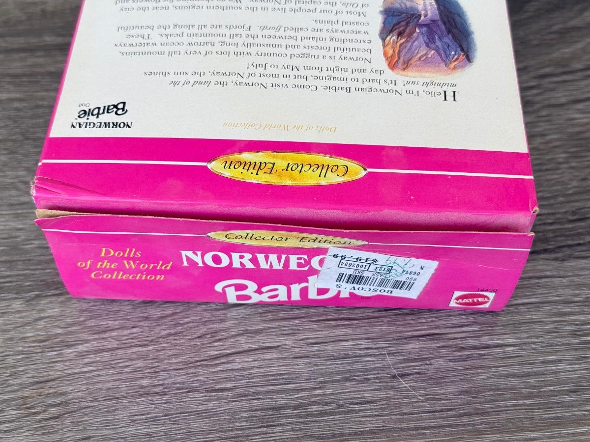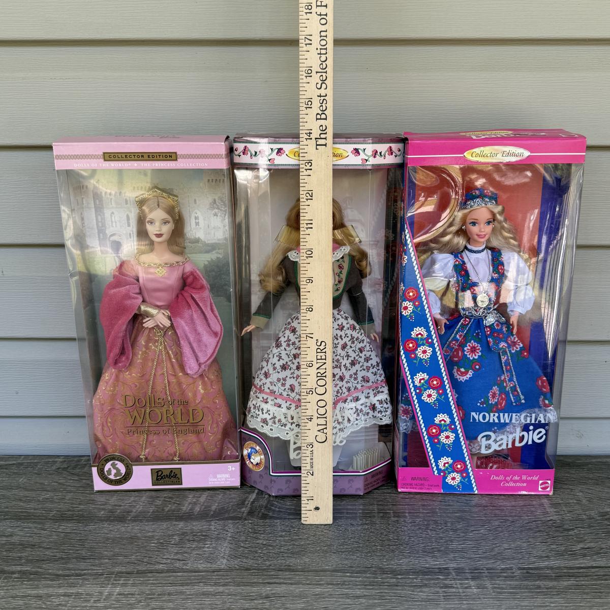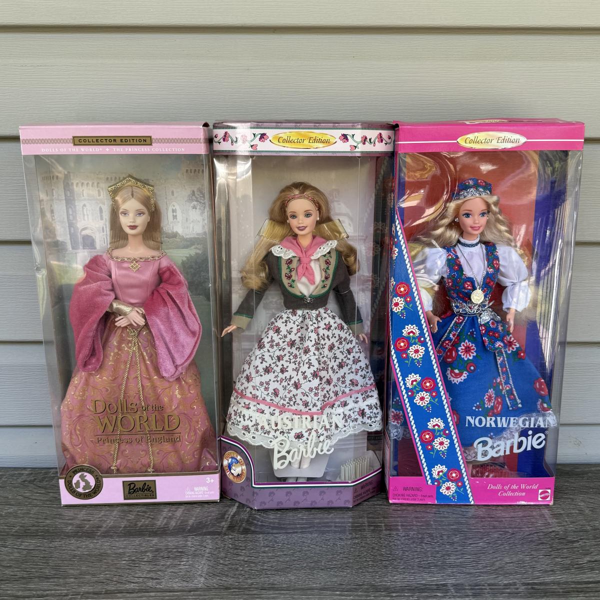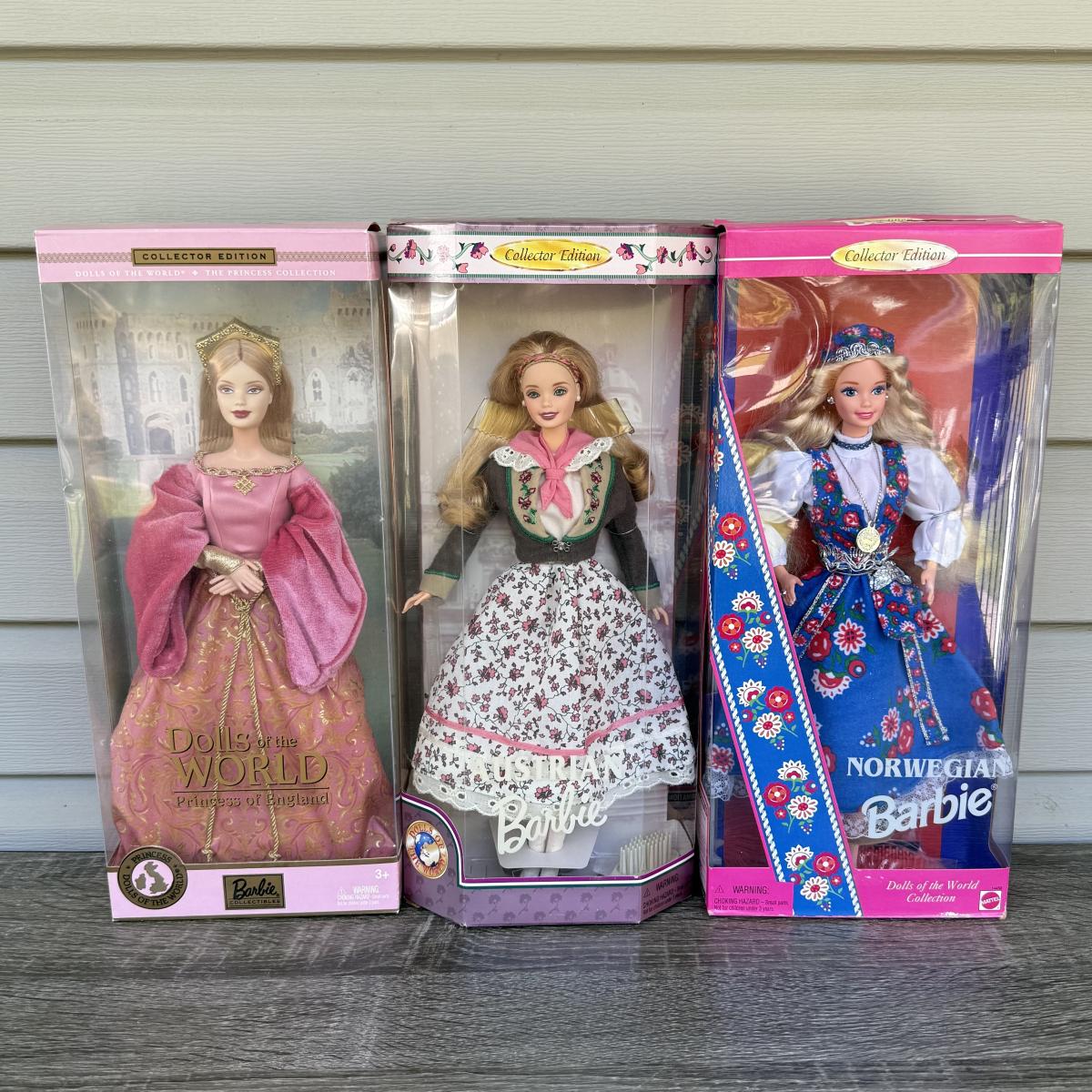 LOT 60H: NRFB Mattel Collector Edition Barbie Dolls of the World: 1998 Austrian Barbie (21553), 1995 Norwegian Barbie (14450) & 2003 Princess of England (B3459)
