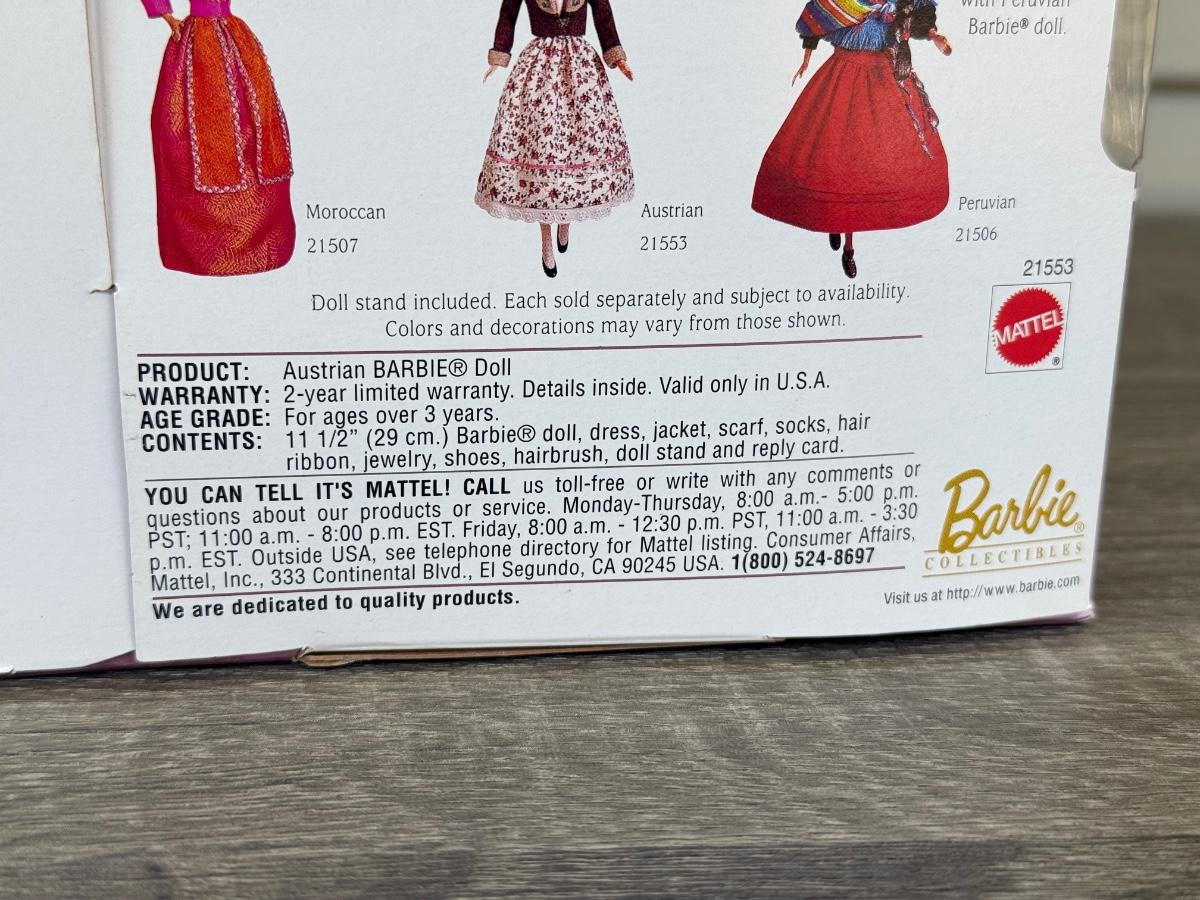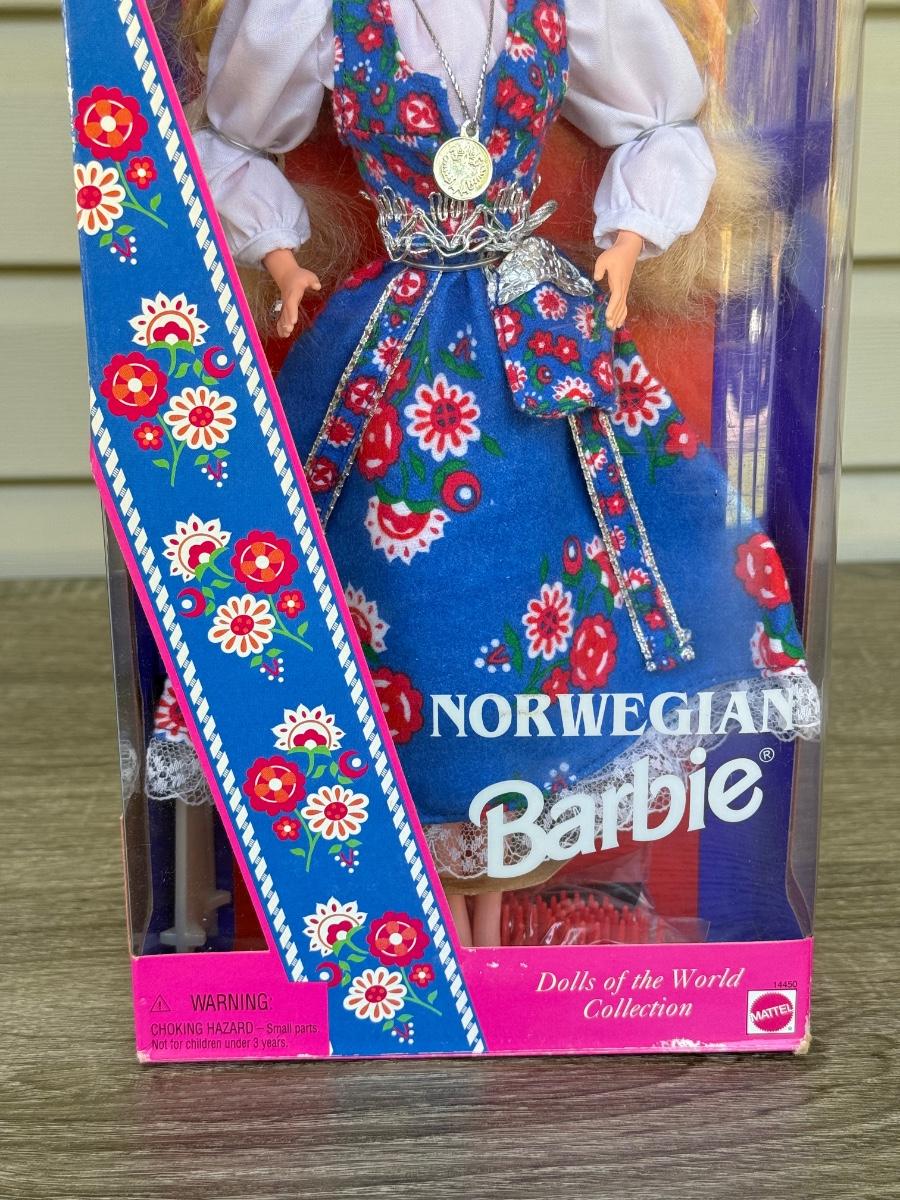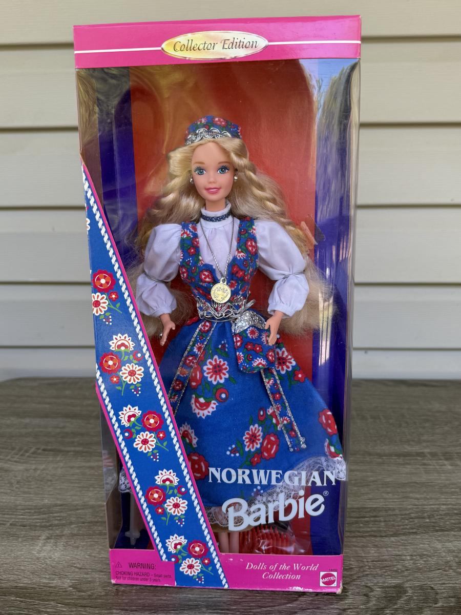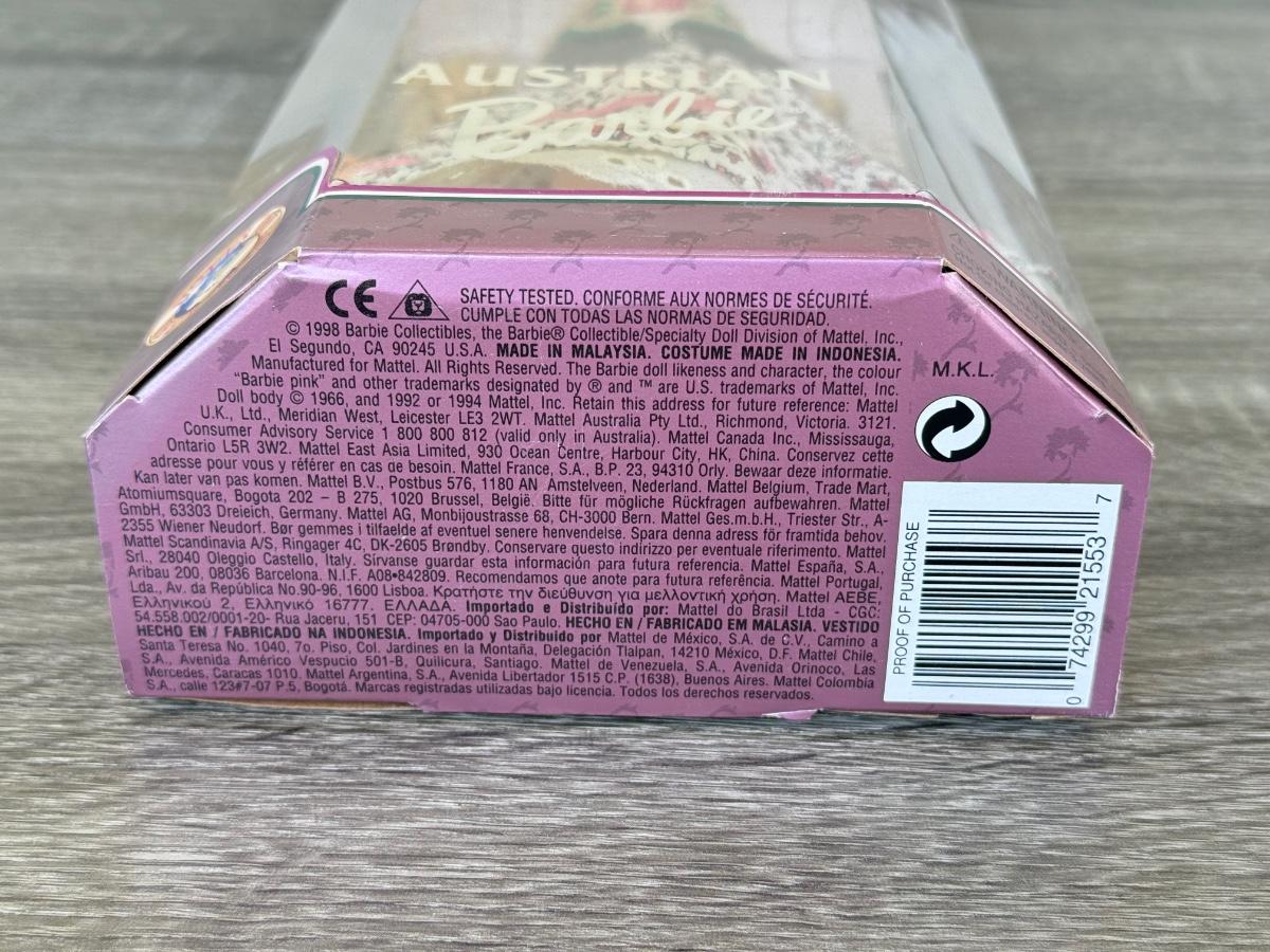 LOT 60H: NRFB Mattel Collector Edition Barbie Dolls of the World: 1998 Austrian Barbie (21553), 1995 Norwegian Barbie (14450) & 2003 Princess of England (B3459)