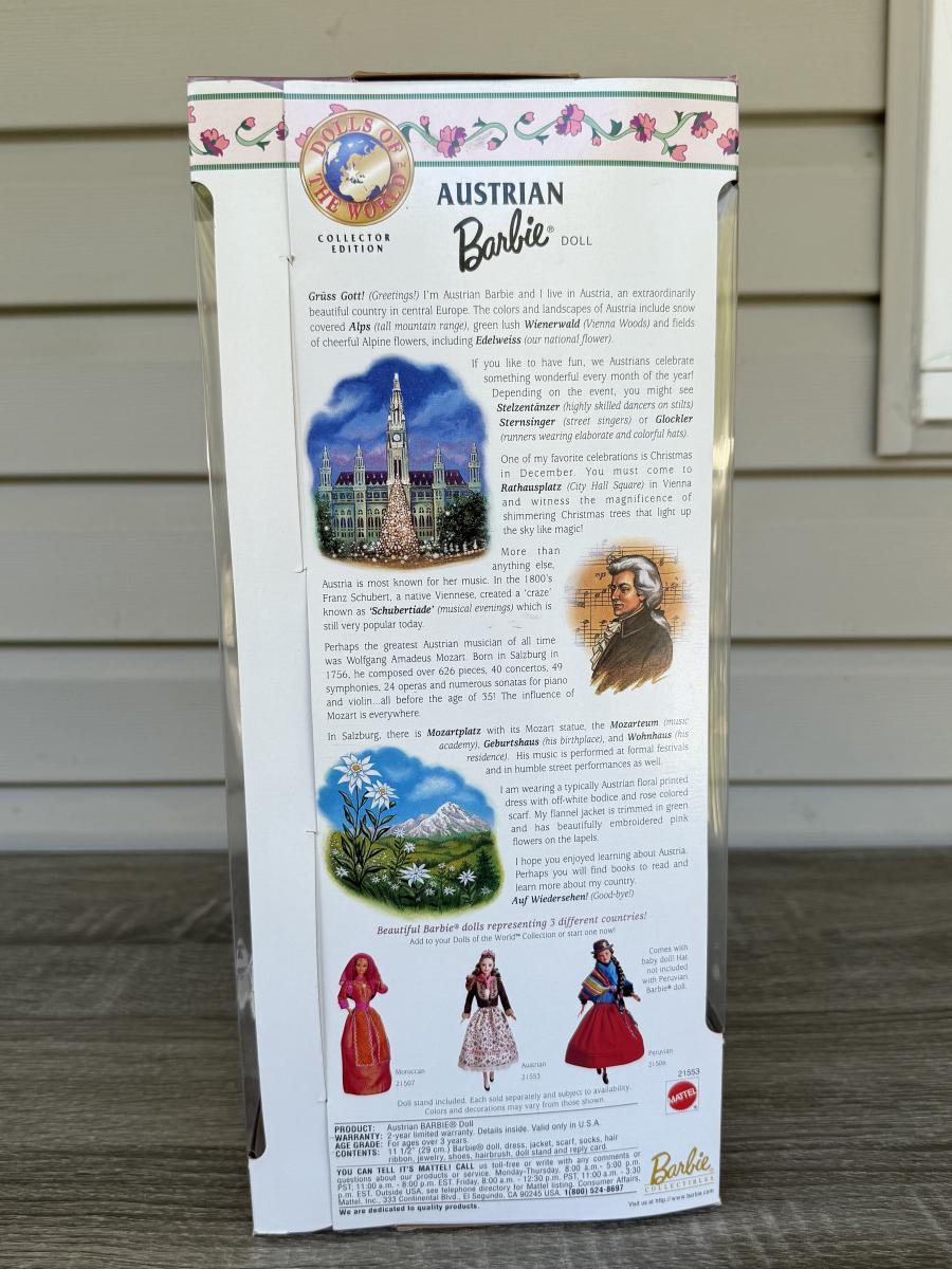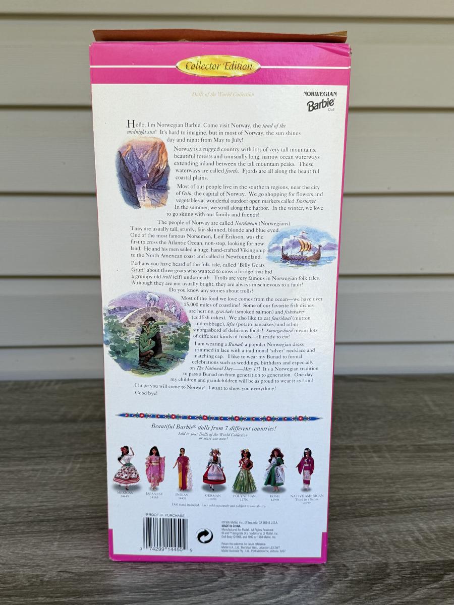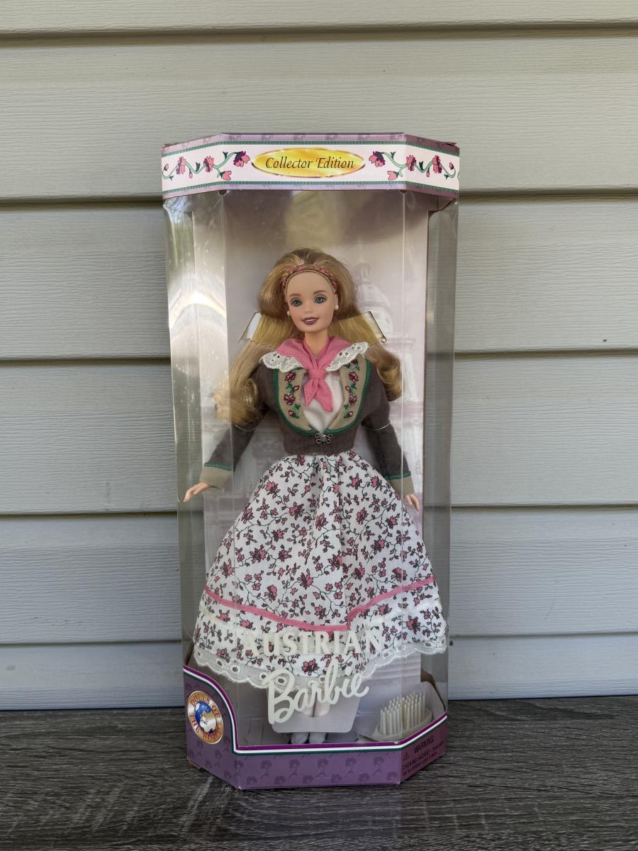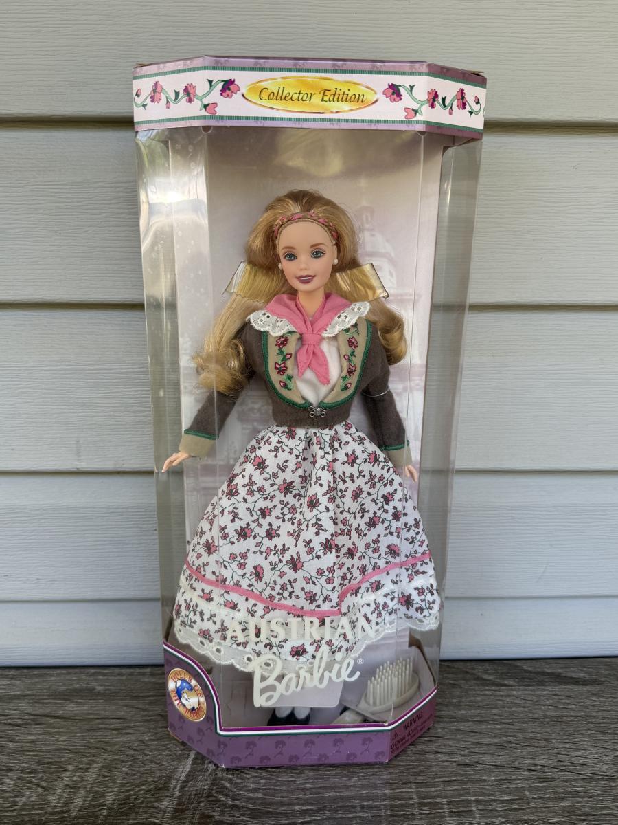 LOT 60H: NRFB Mattel Collector Edition Barbie Dolls of the World: 1998 Austrian Barbie (21553), 1995 Norwegian Barbie (14450) & 2003 Princess of England (B3459)