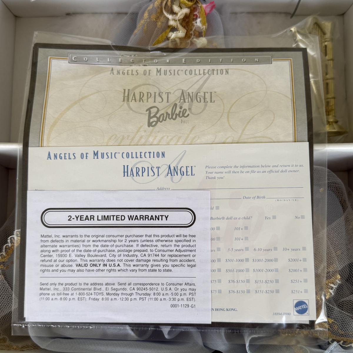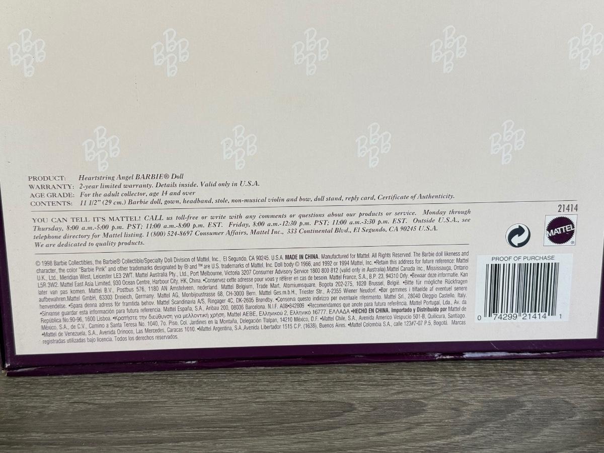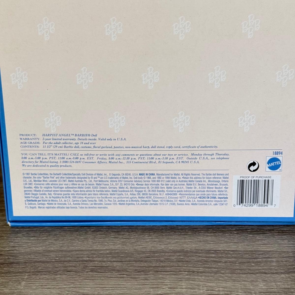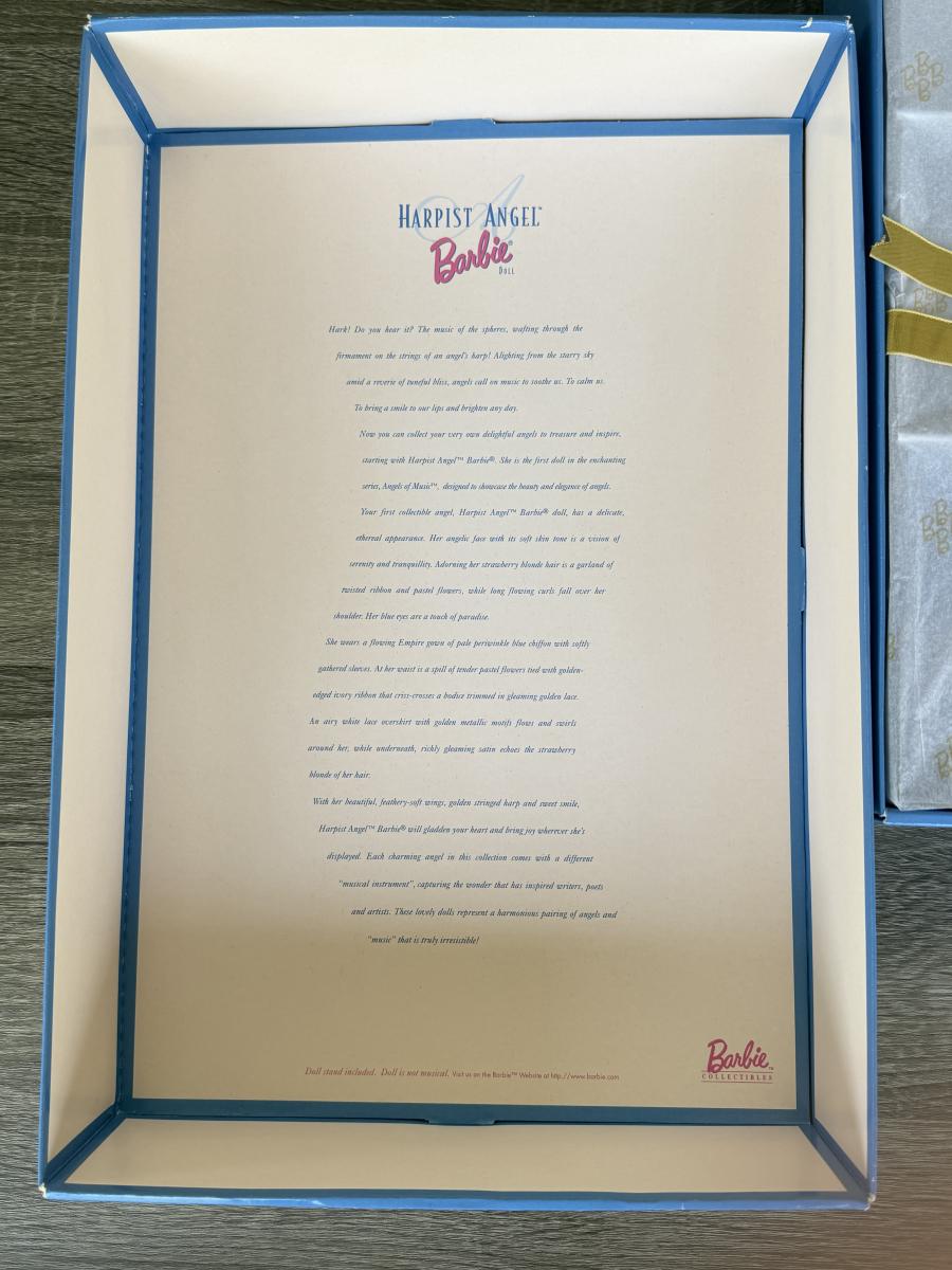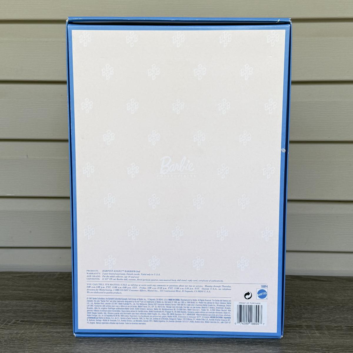 LOT 65H: NRFB Mattel Collector Edition Barbie Angels of Music Collection Dolls: 1997 Harpist Angel (18894) & 1998 Heartstring Angel (21414)