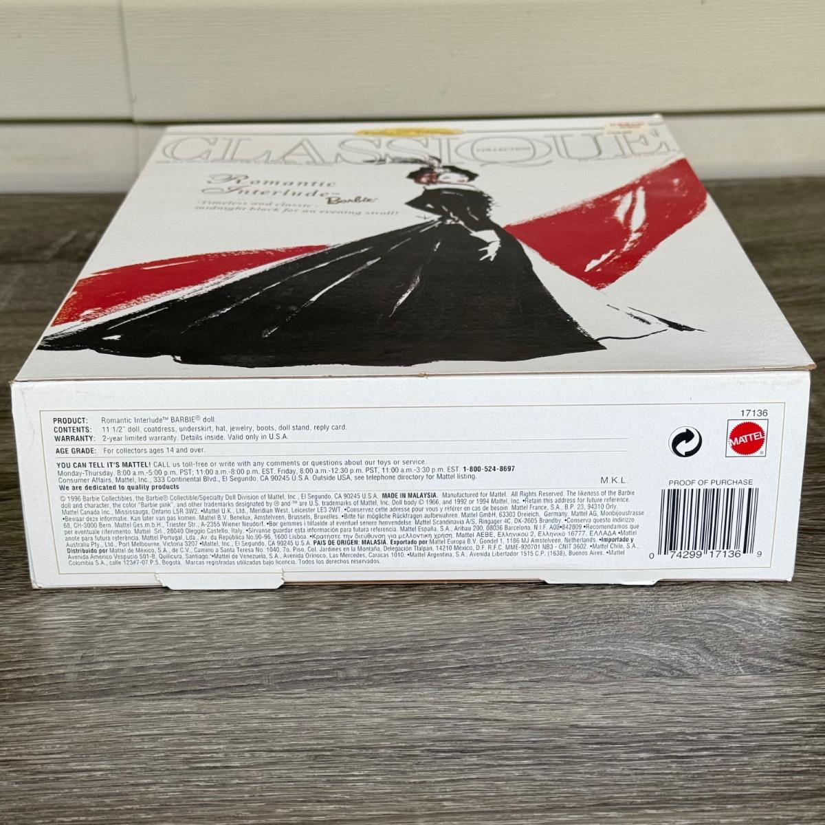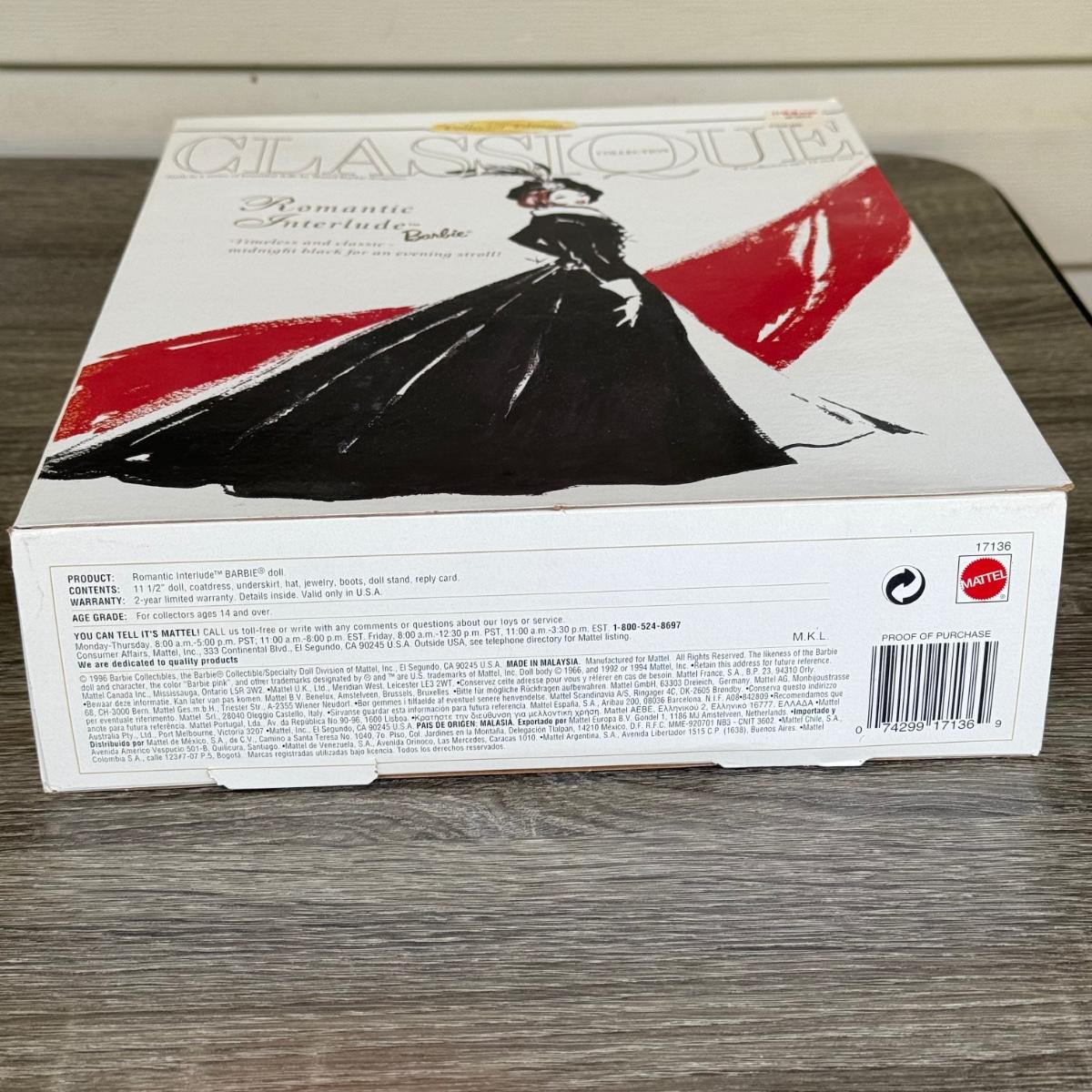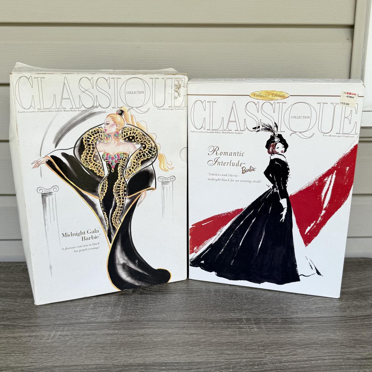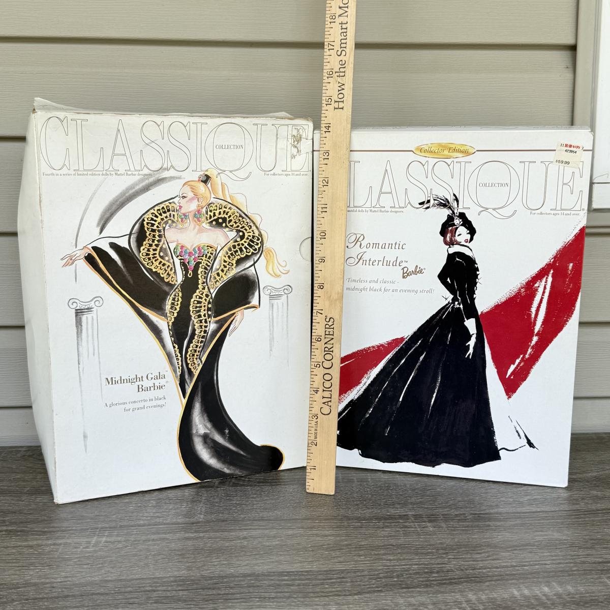 LOT 66H: NRFB Mattel Collector Edition Barbie Classique Collection Dolls: #4 1995 Midnight Gala Barbie by Abbe Littleton (12999) & #6 1997 Romantic Interlude Barbie by Ann Driskill (17136)