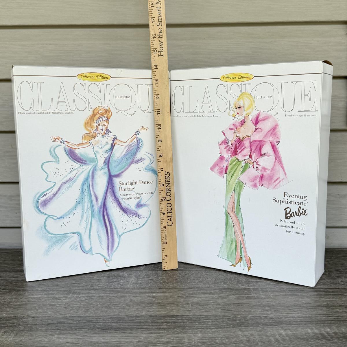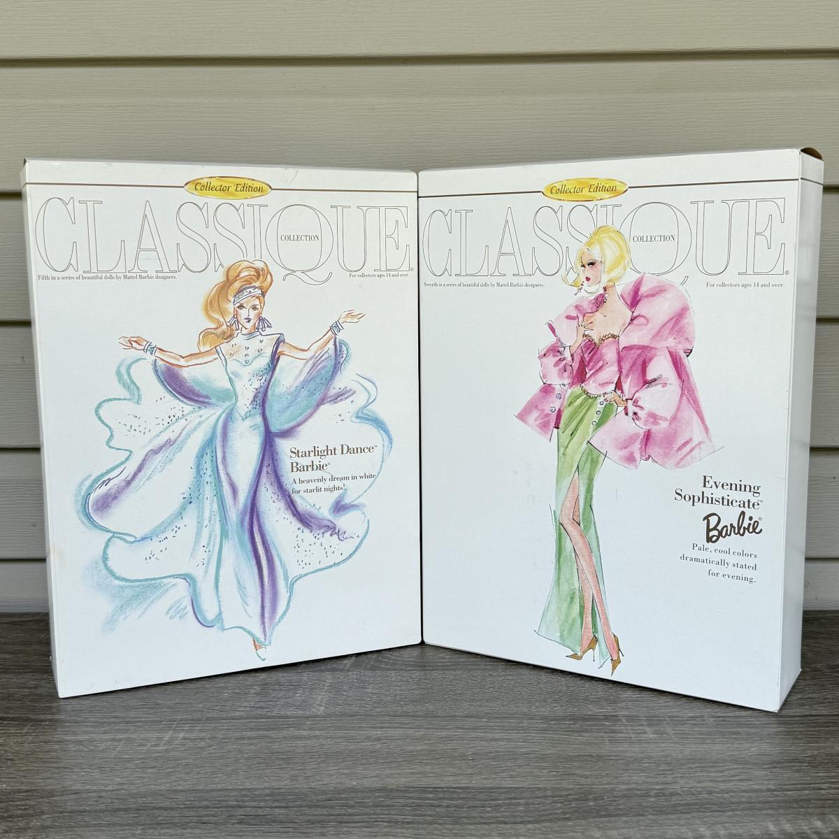 LOT 67H: NRFB Mattel Collector Edition Barbie Classique Collection Dolls: #5 1996 Starlight Dance Barbie by Cynthia Young (15461) & #7 1997 Evening Sophisticate Barbie by Robert Best (19361)