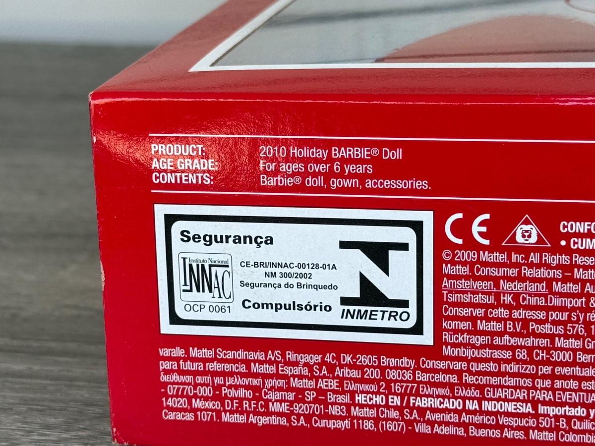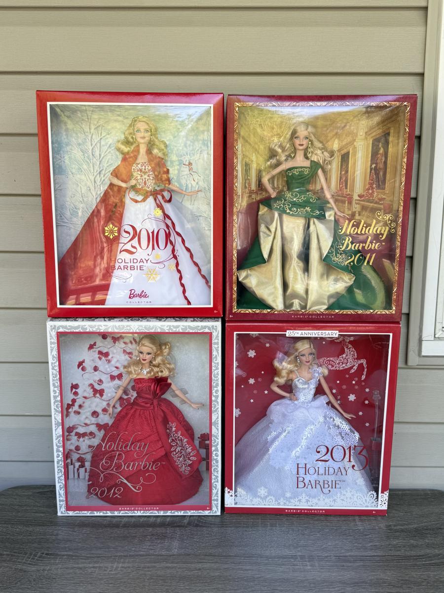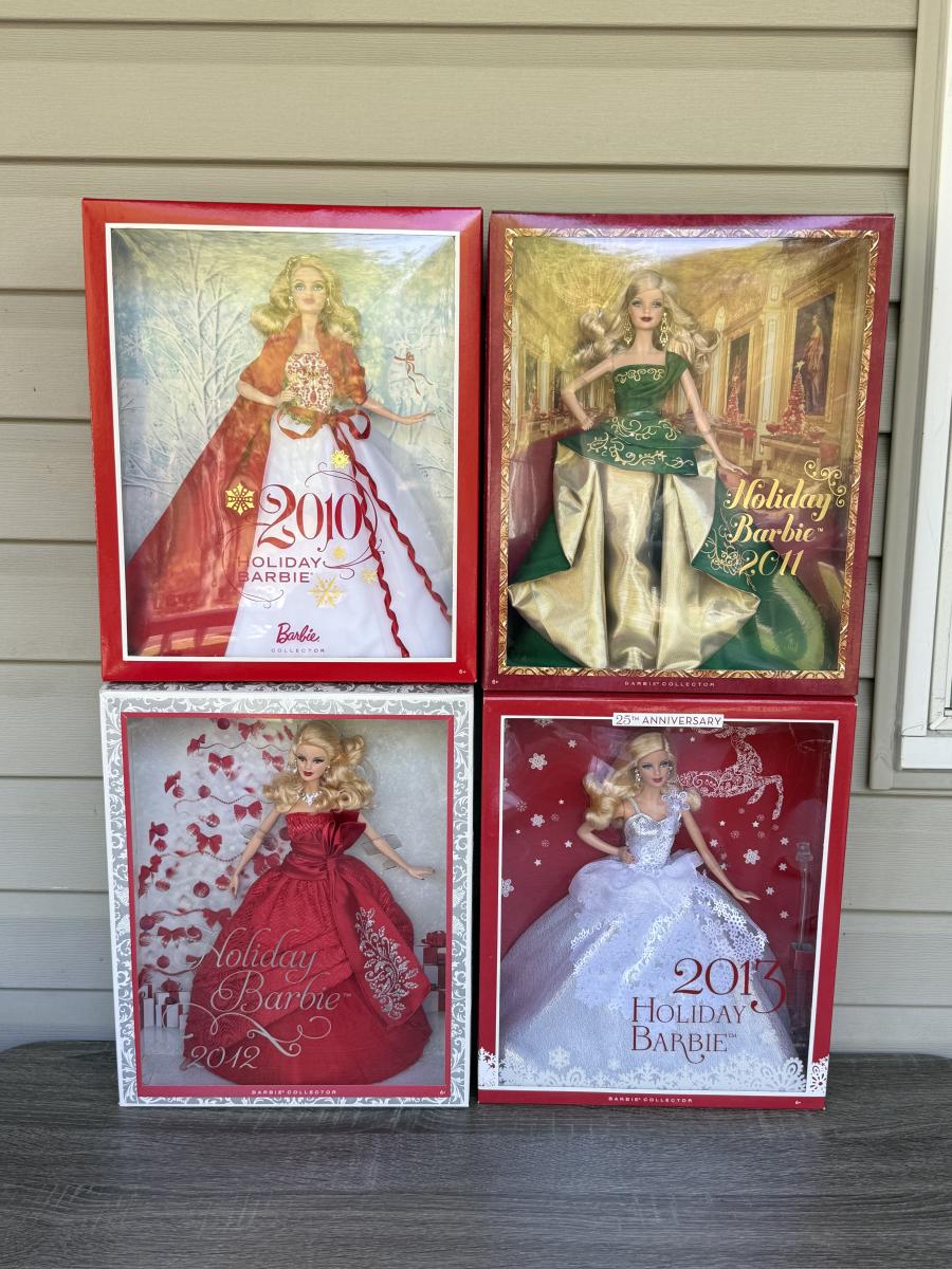 LOT 76P: NRFB Mattel Barbie Collector Holiday Barbies: 2010 (R4545), 2011 (T7914), 2012 (W3465) & 2013 (X8271)