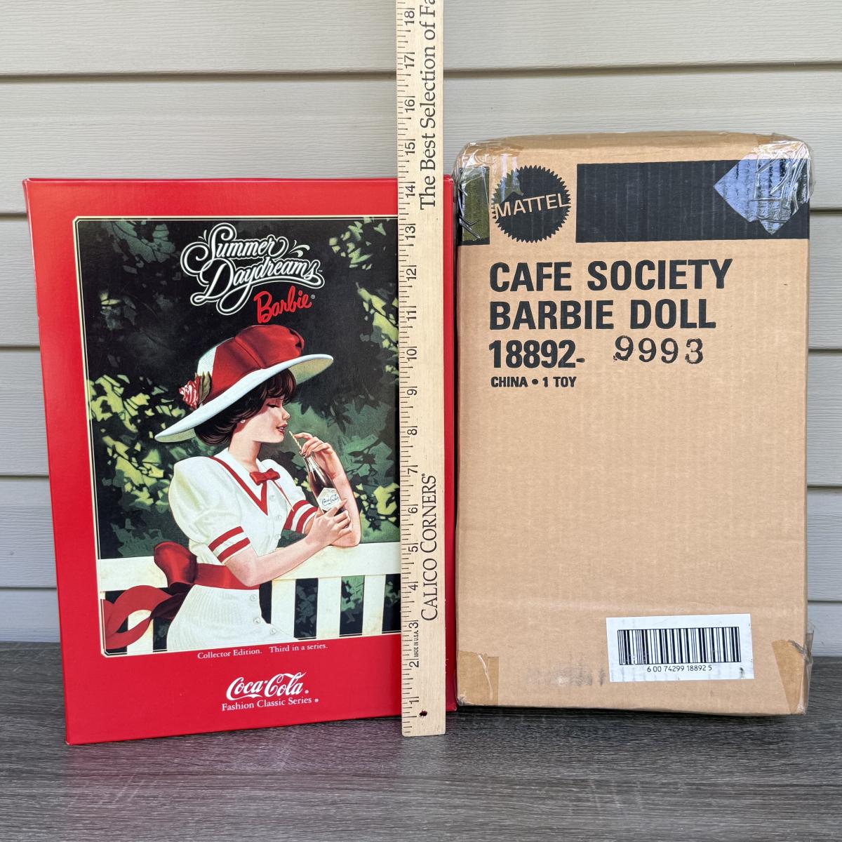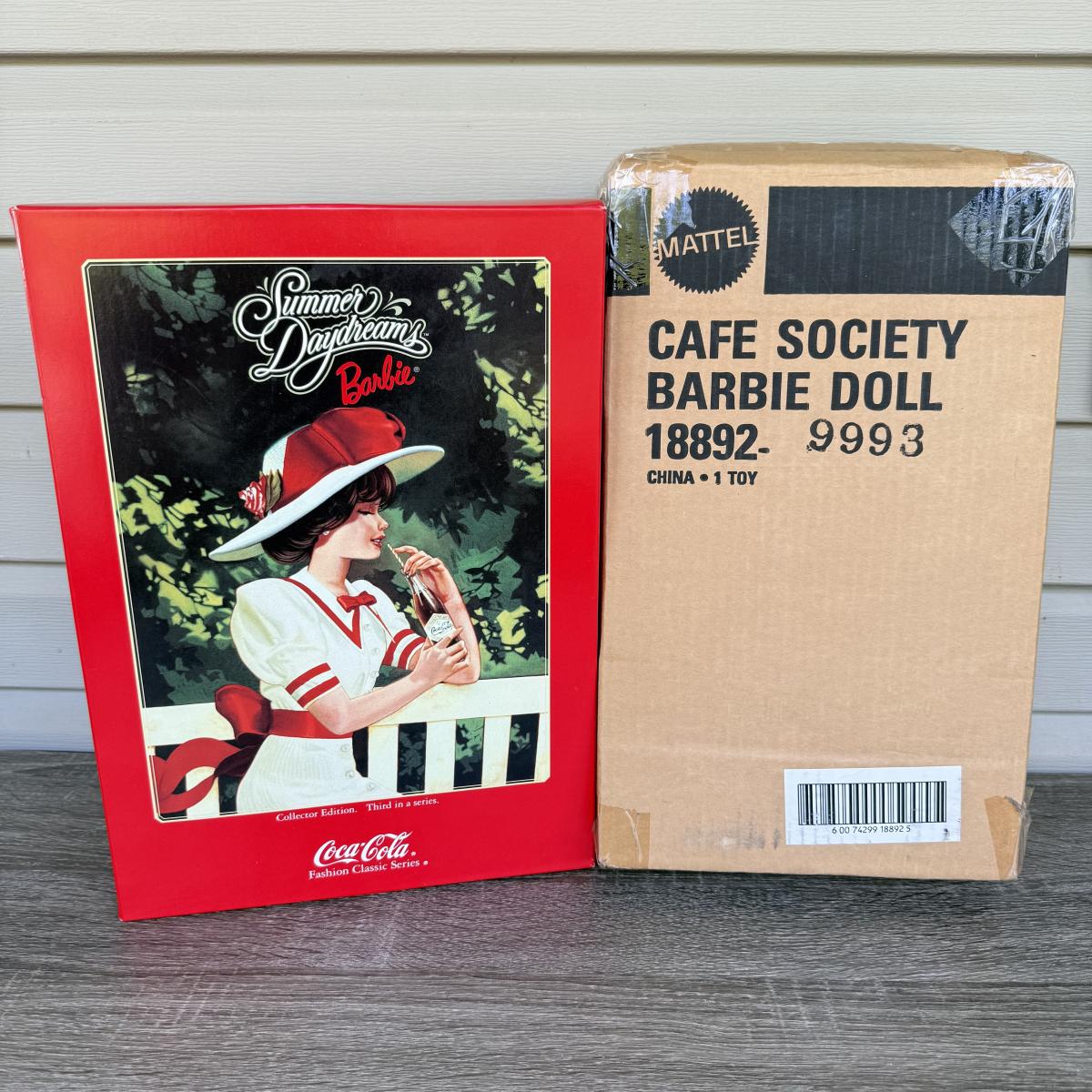 LOT 77P: NRFB Mattel Barbie Dolls: 1998 Sealed 2nd Edition Barbie Collector Club Cafe Society Barbie (18892) & Collector Edition Coca-Cola Fashion Classic Series Summer Daydreams (19739)