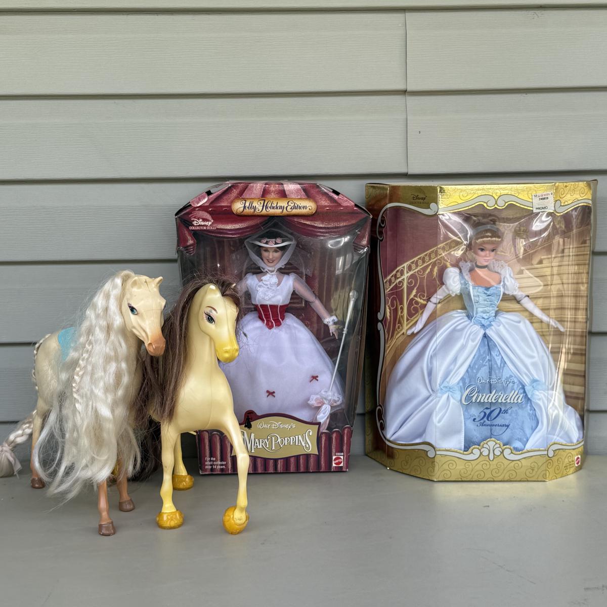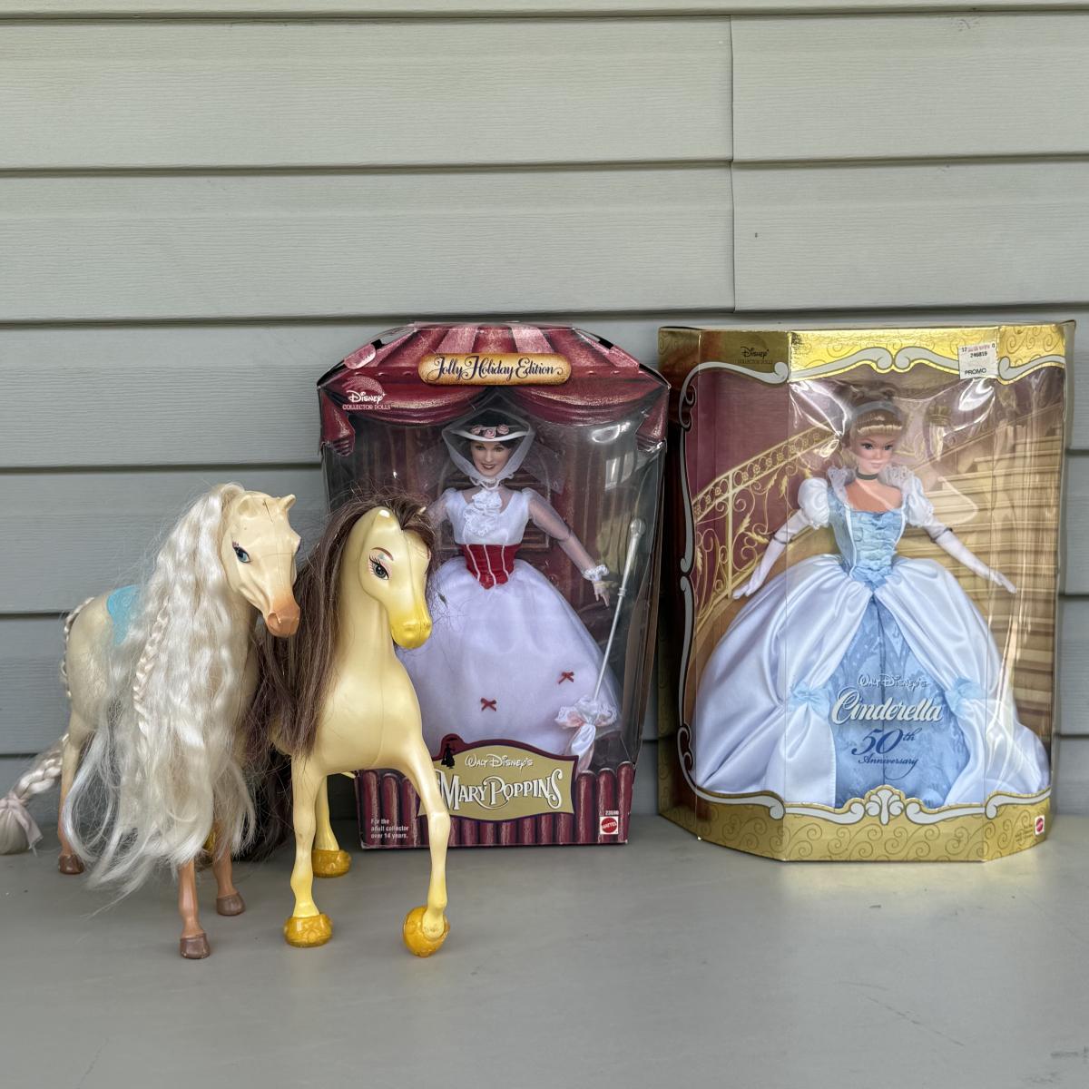LOT 81P: NRFB Mattel Barbie Doll Walt Disney Cinderella & Mary Poppins 26291 & 23590 & Disney Belle Princess Horse Doll & More