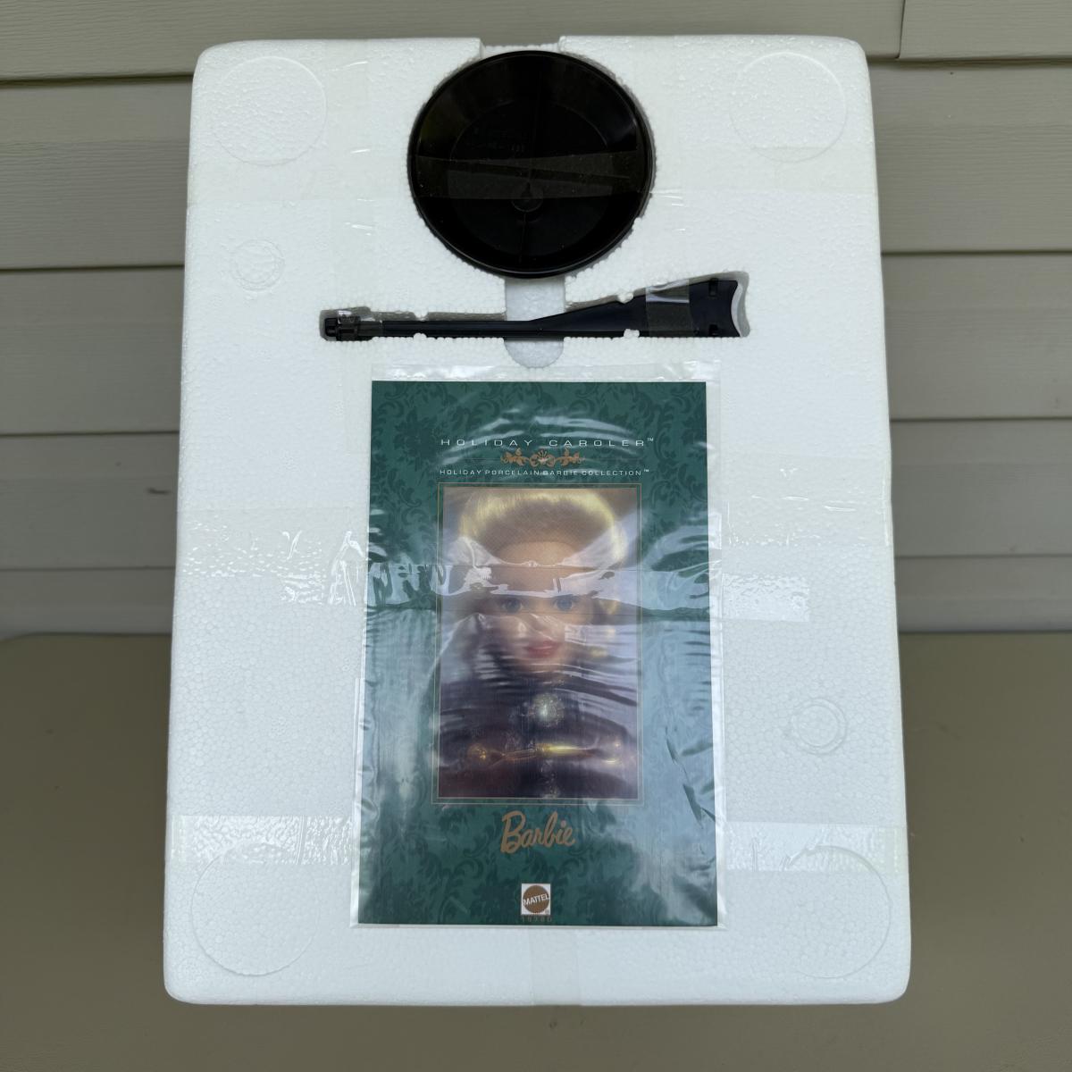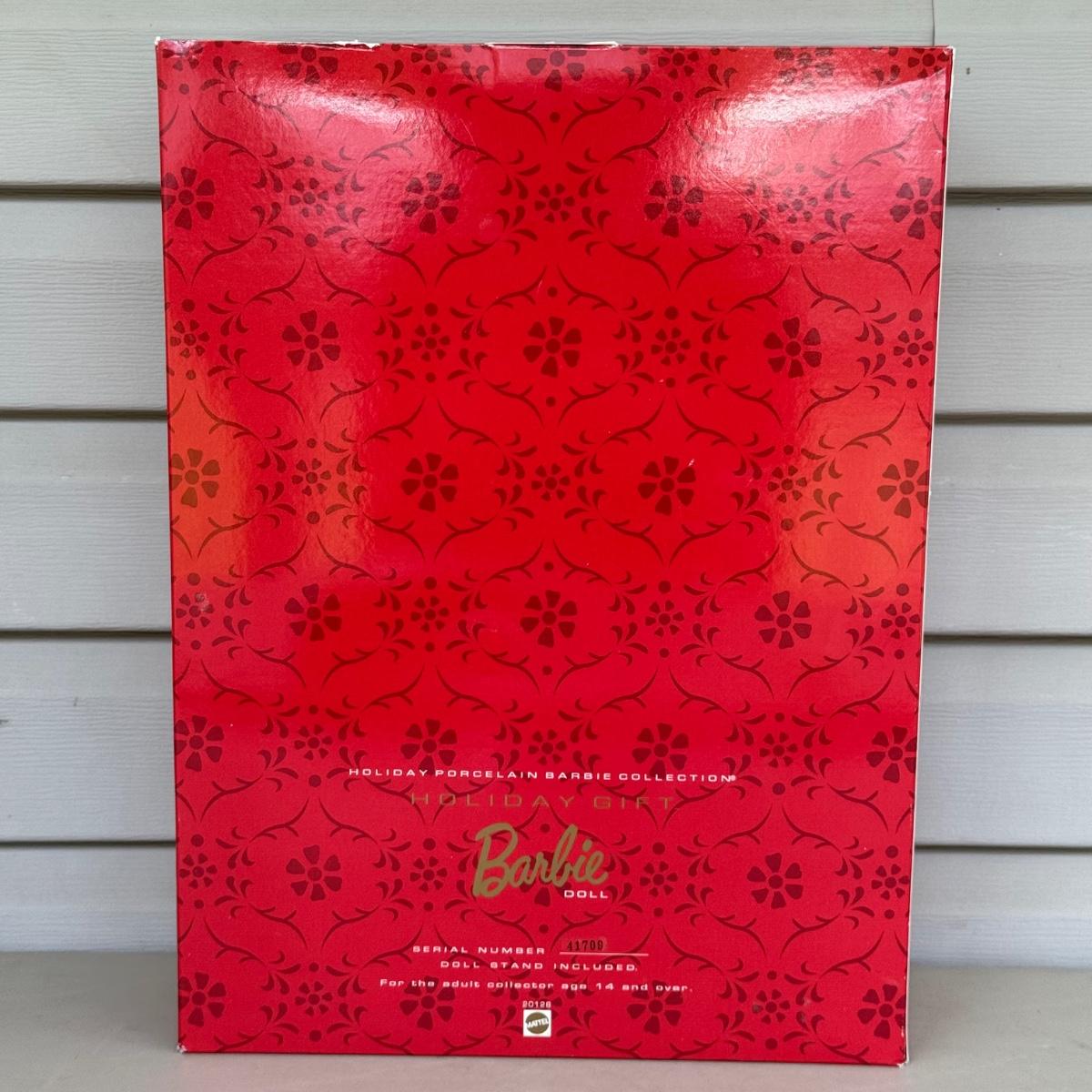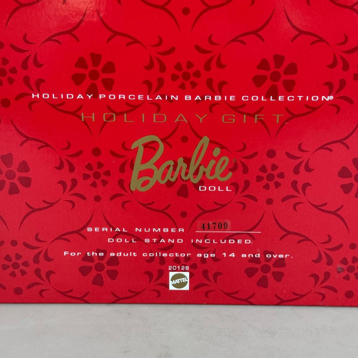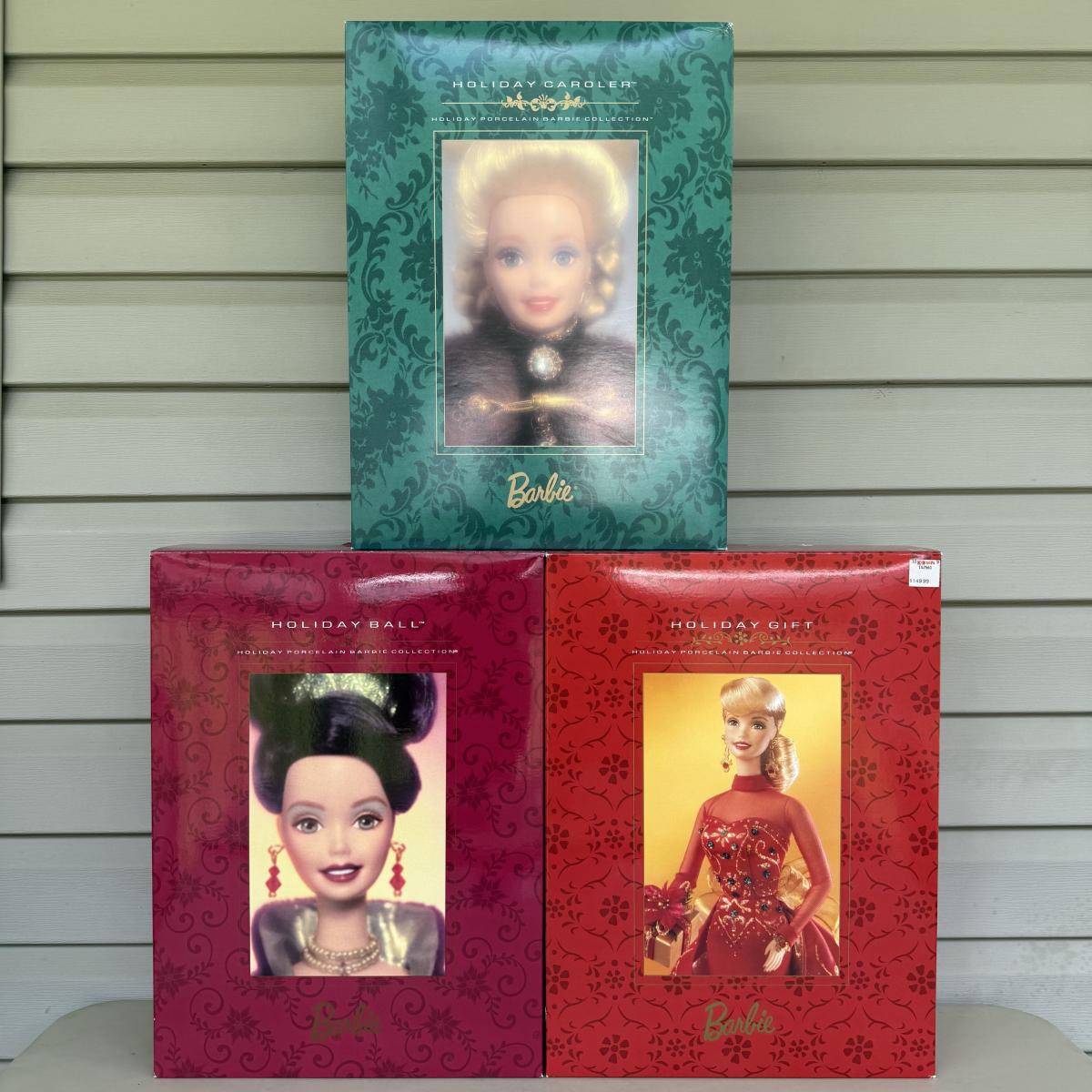 LOT 85P: NRFB Mattel Porcelain Barbie Dolls - Holiday Ball 18326, Holiday Carolers 15760 & Holiday Gift 20128