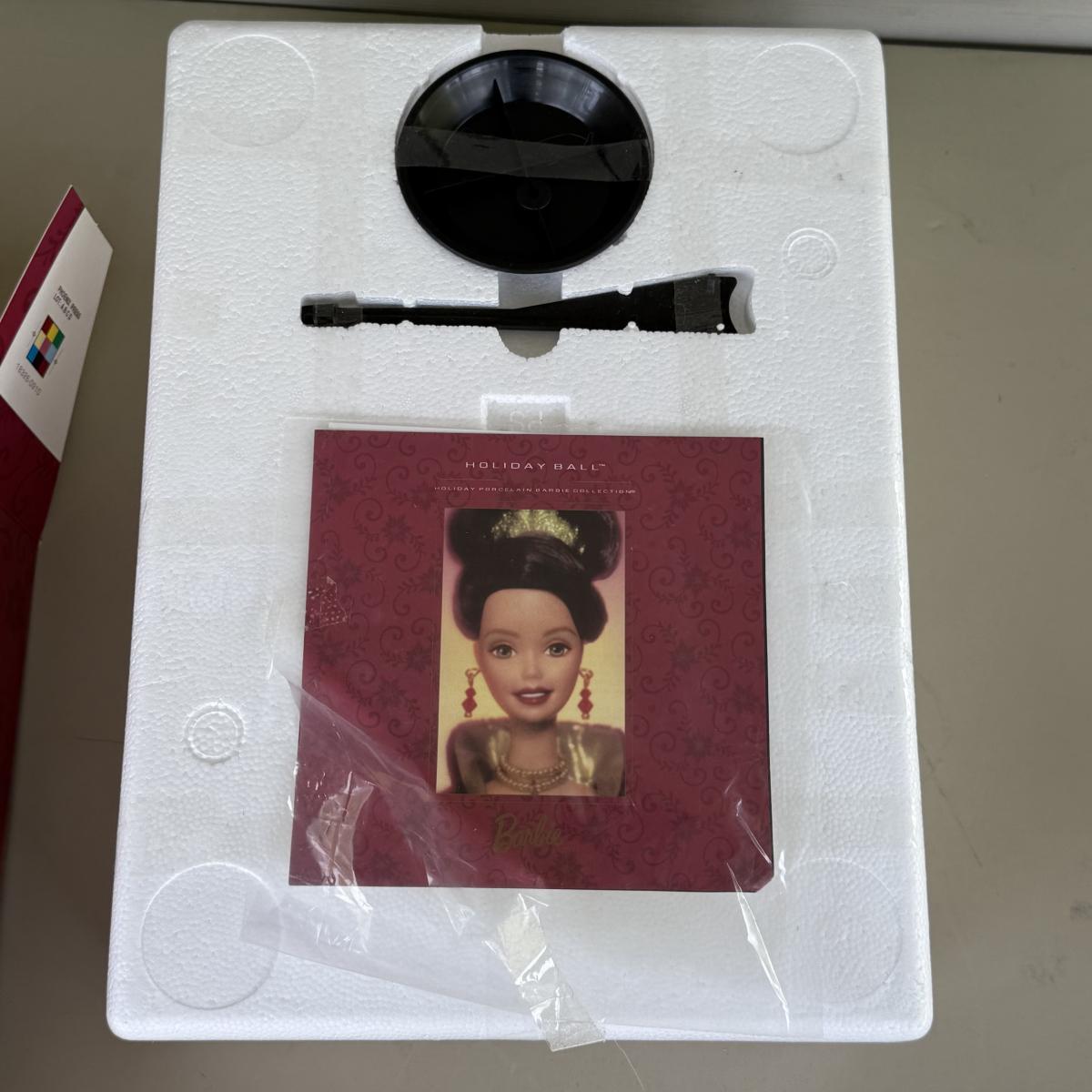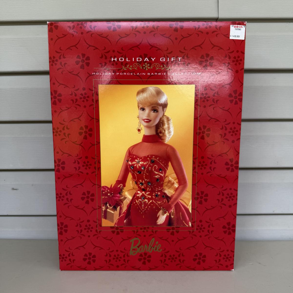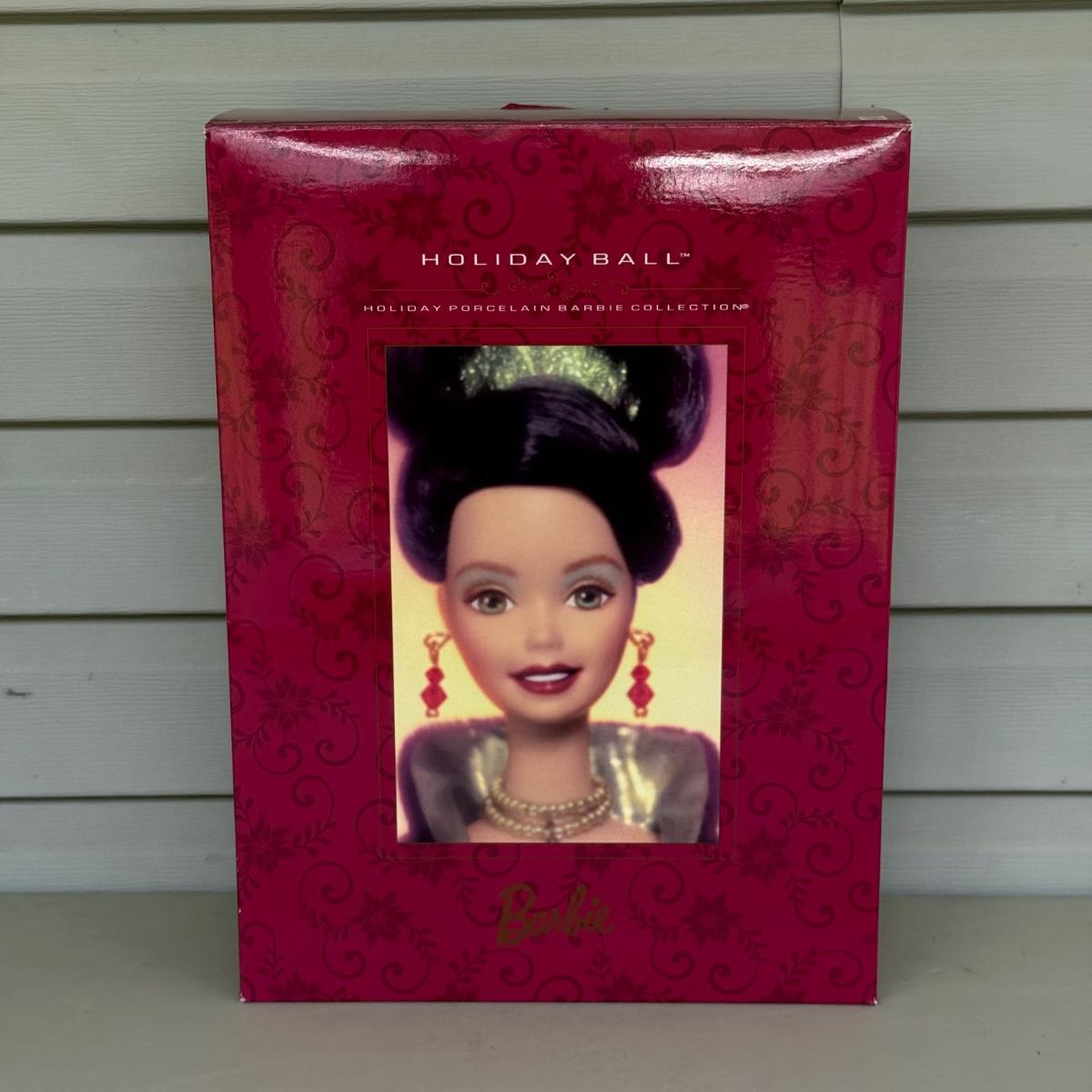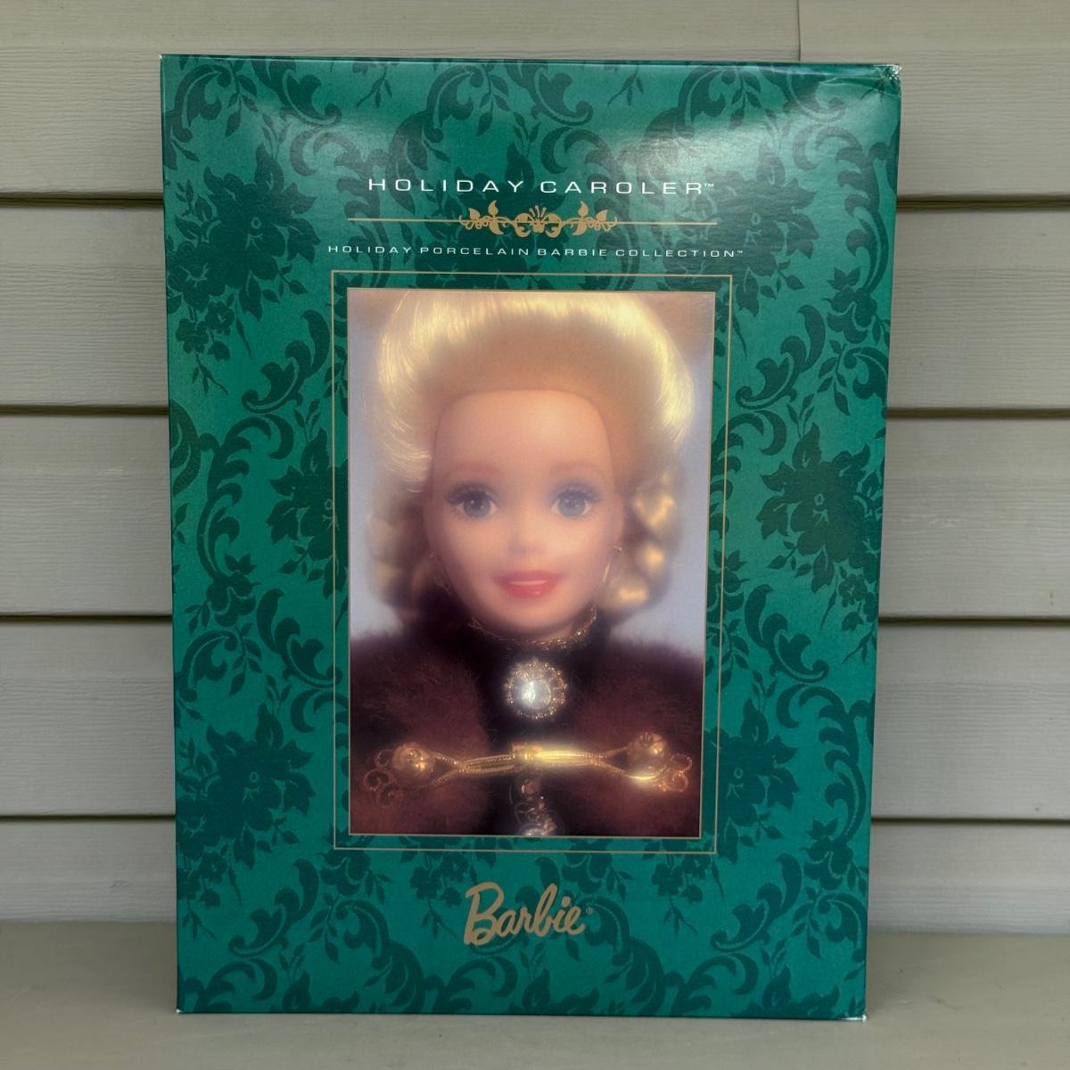 LOT 85P: NRFB Mattel Porcelain Barbie Dolls - Holiday Ball 18326, Holiday Carolers 15760 & Holiday Gift 20128