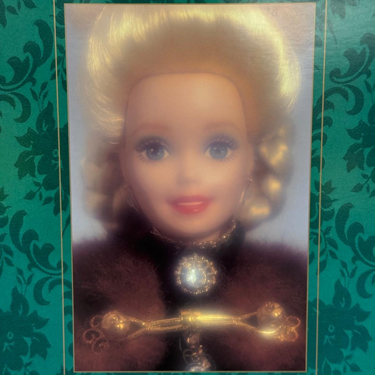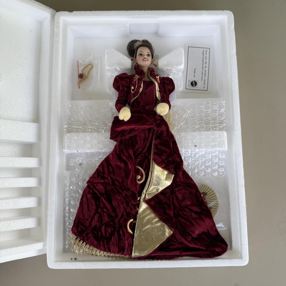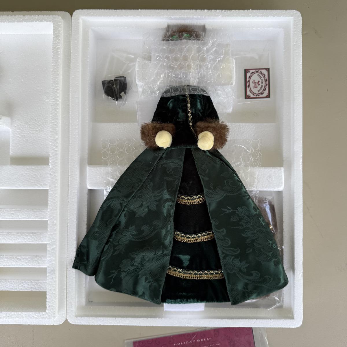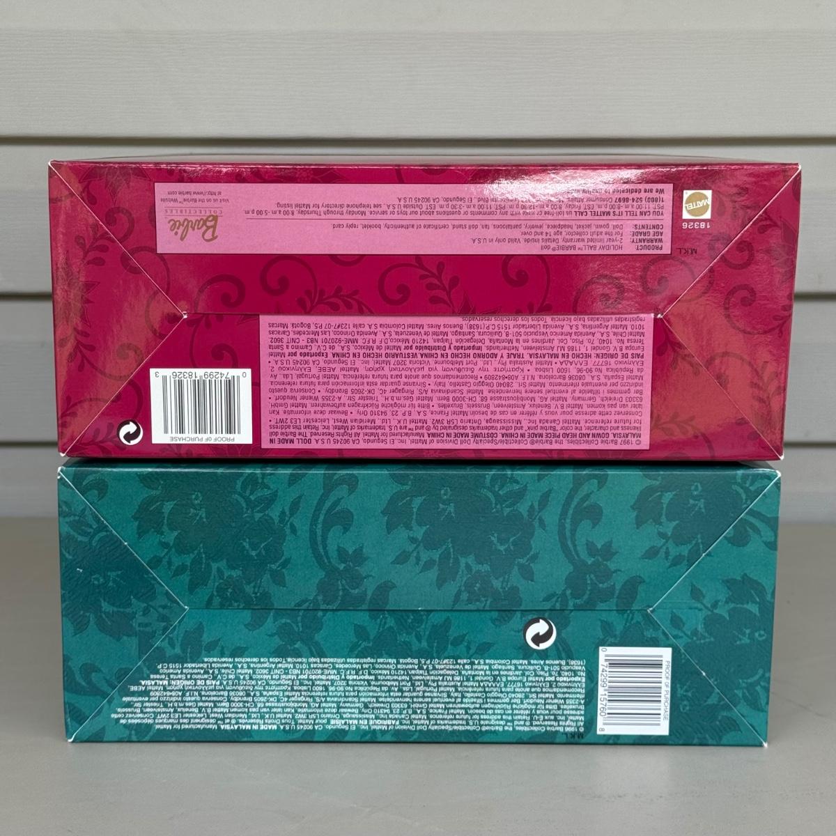 LOT 85P: NRFB Mattel Porcelain Barbie Dolls - Holiday Ball 18326, Holiday Carolers 15760 & Holiday Gift 20128