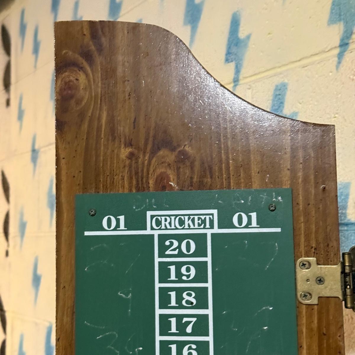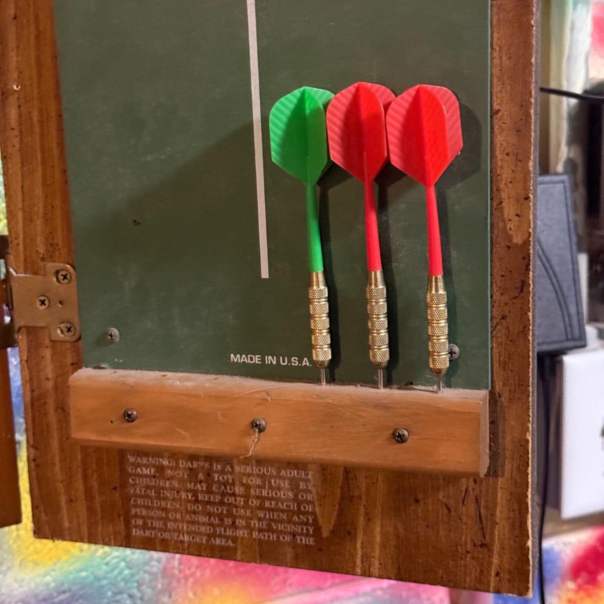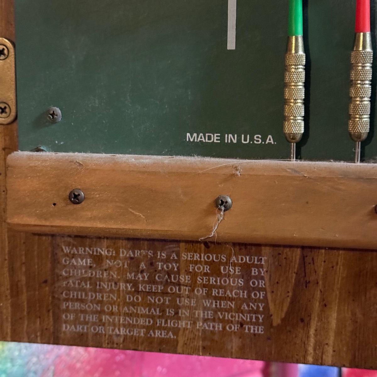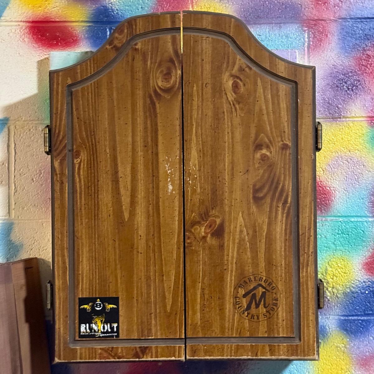 LOT 88B: Marlboro Country Wooden Dartboard Cabinet w/ Dartboard, Darts & More