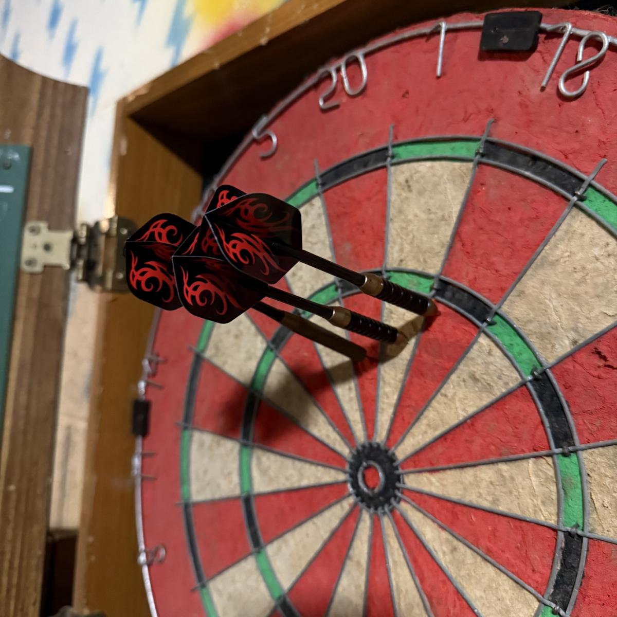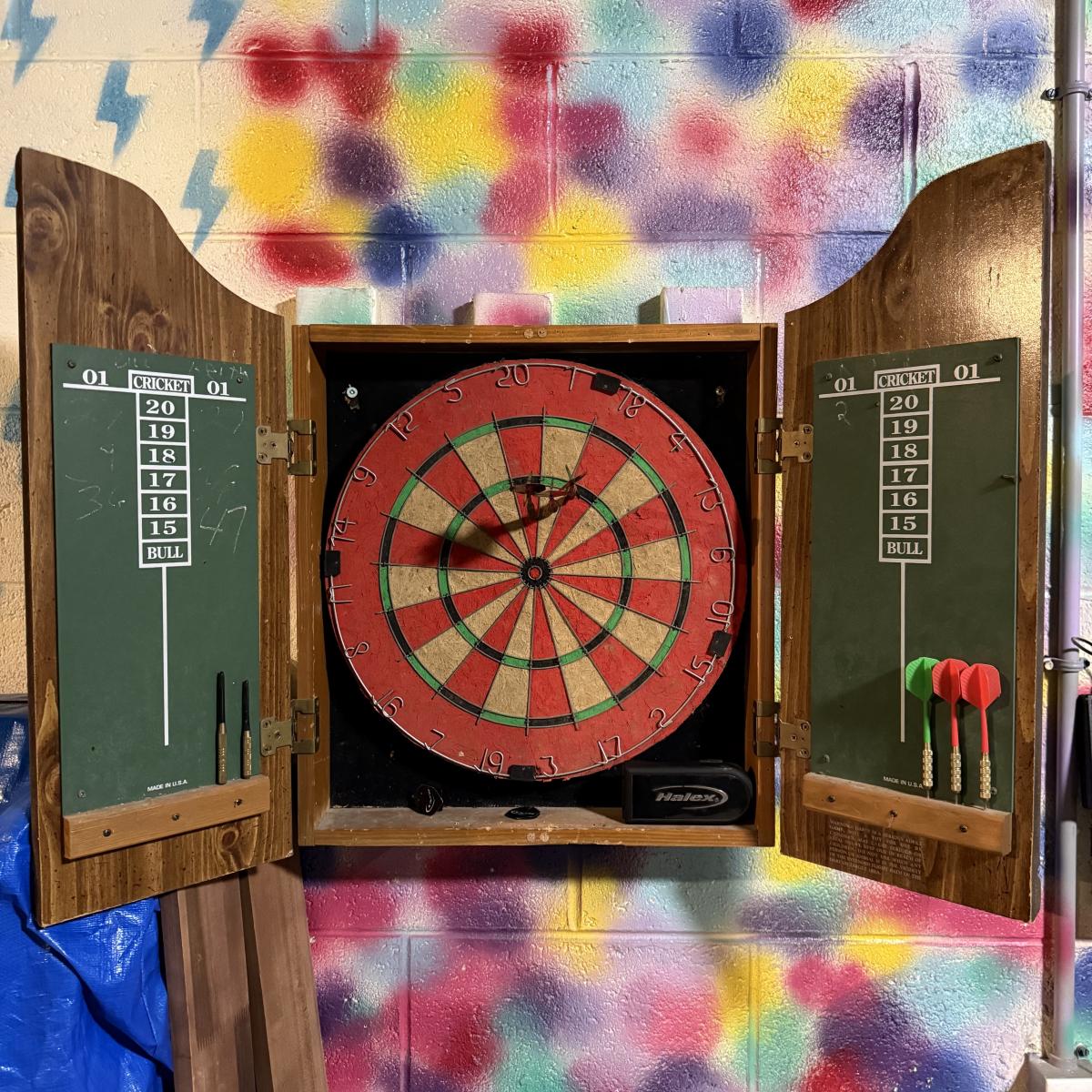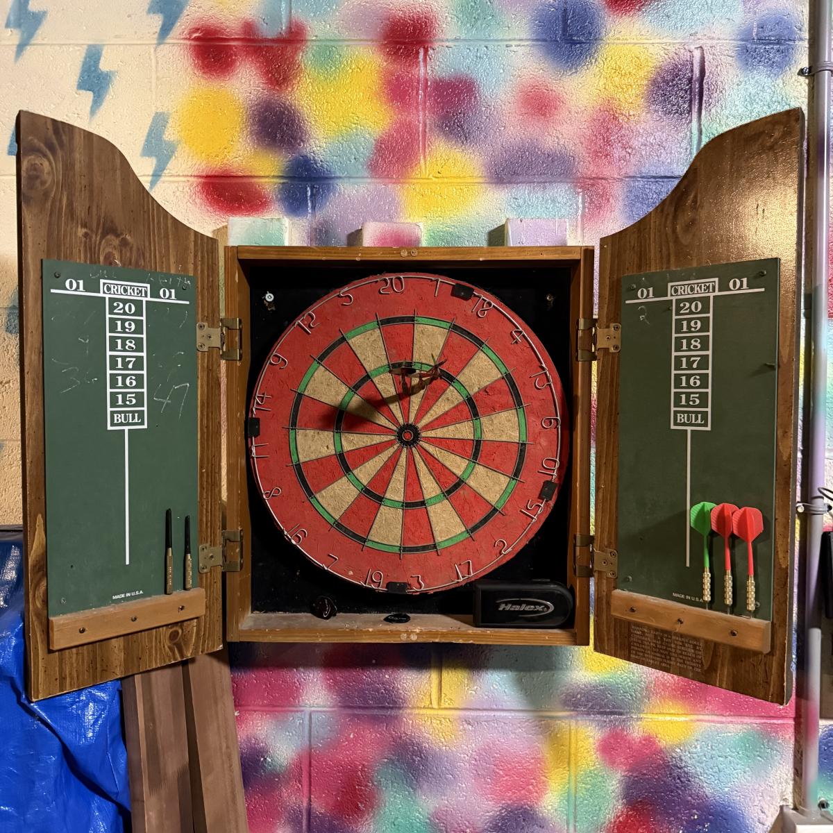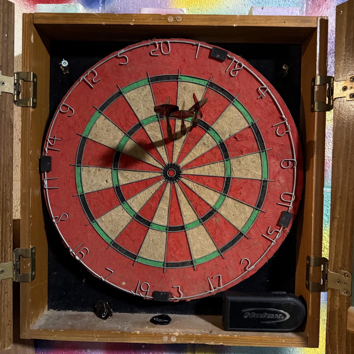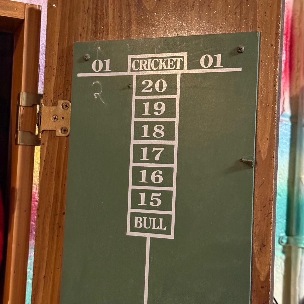LOT 88B: Marlboro Country Wooden Dartboard Cabinet w/ Dartboard, Darts & More