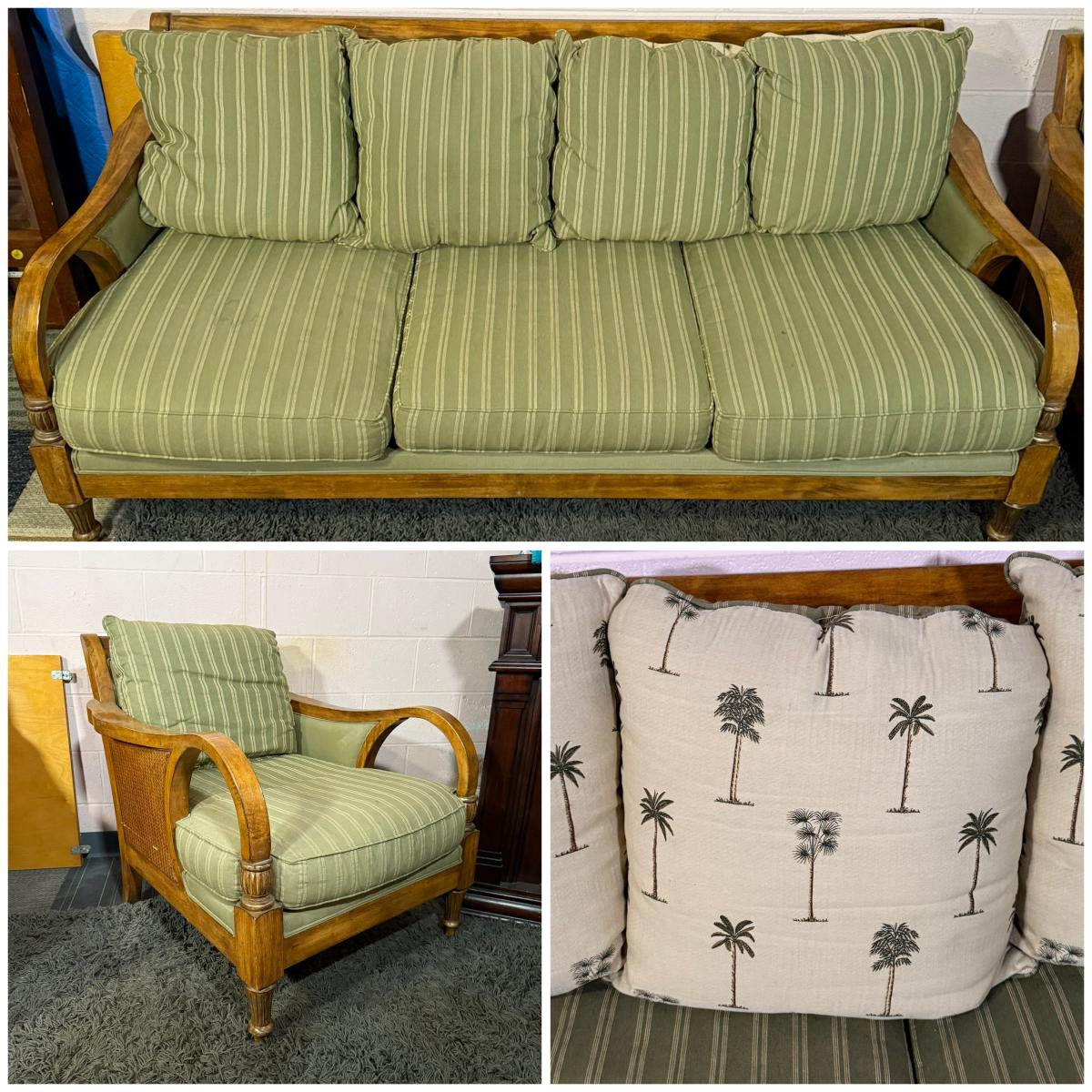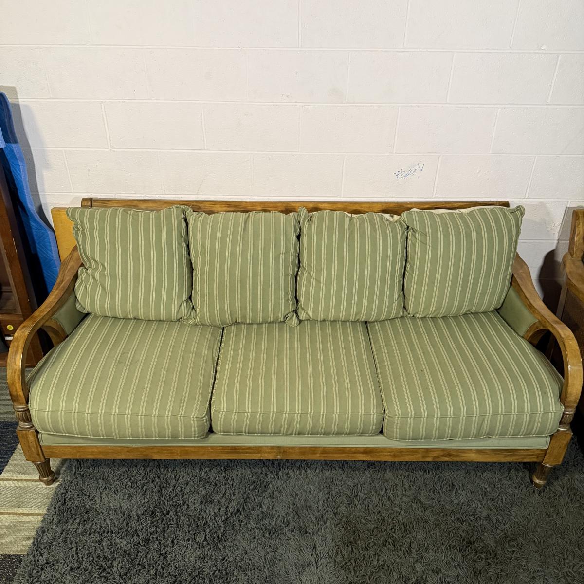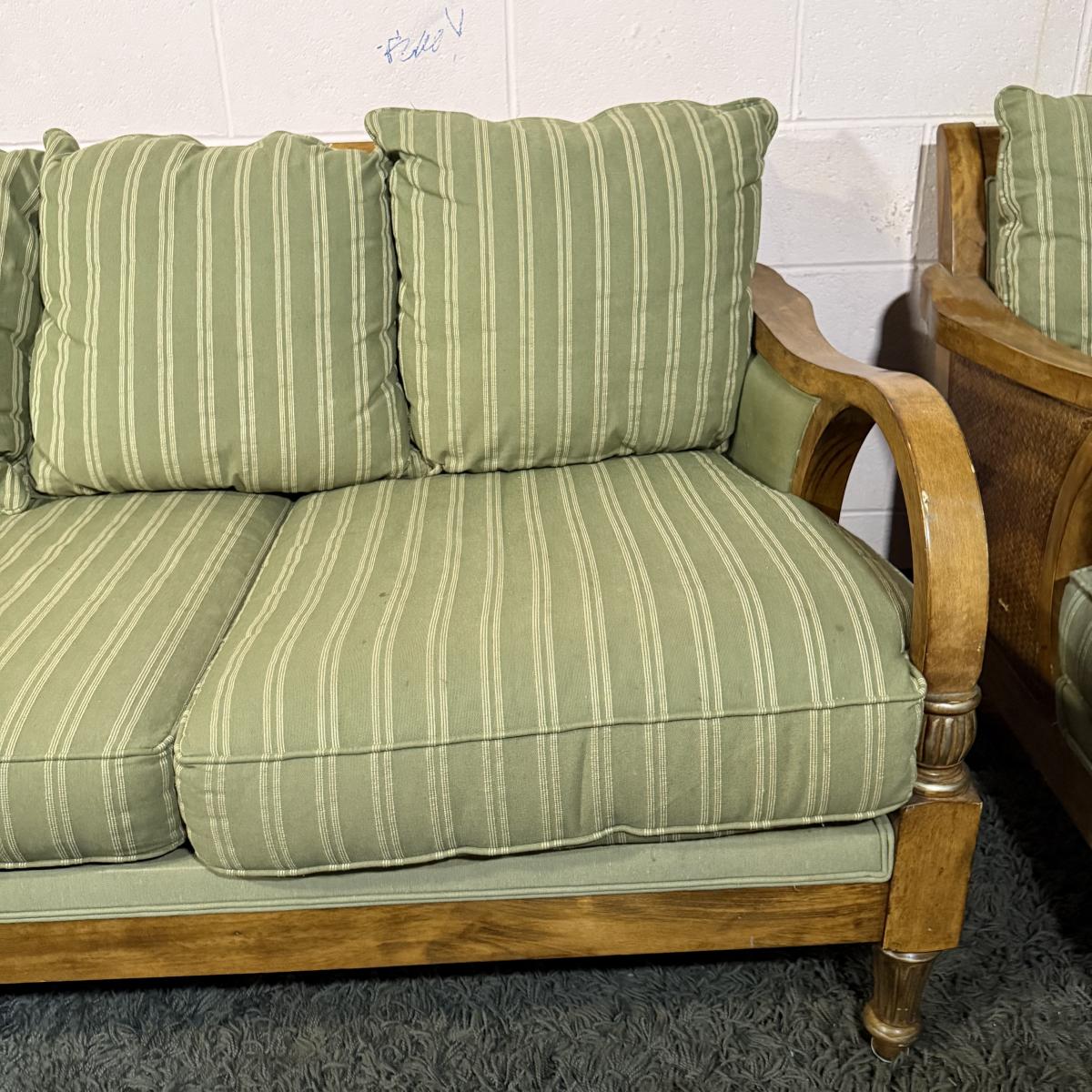 LOT 90B: Beautiful Vintage Wooden Frame Sofa w/ Matching Chair