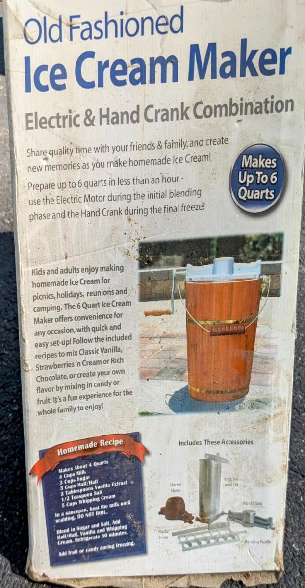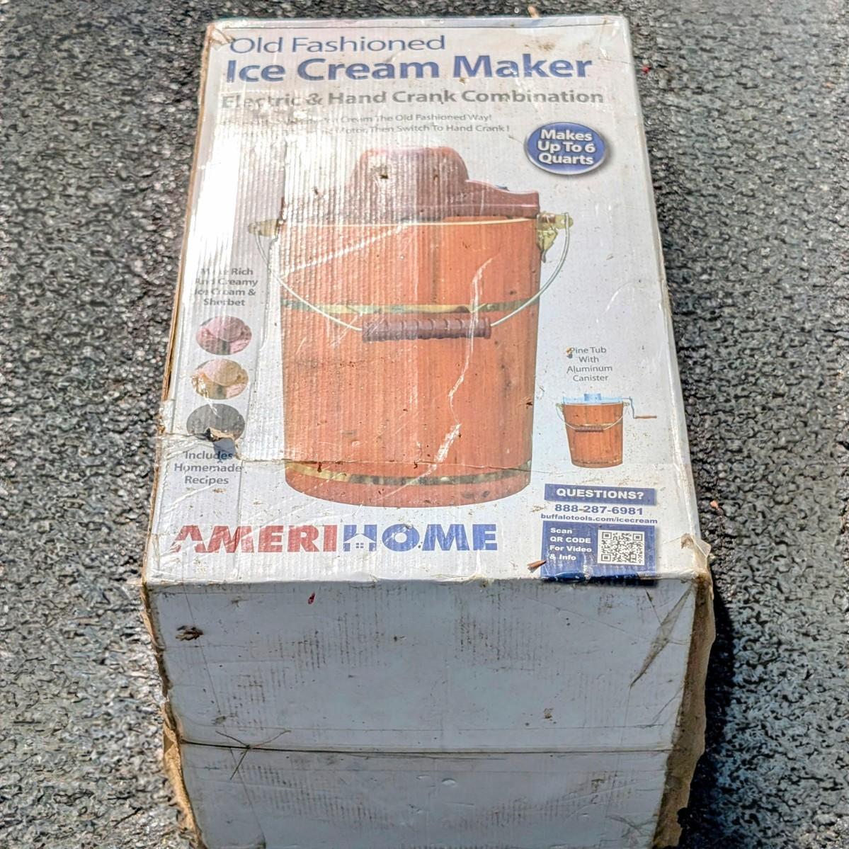LOT 101G: Old Fashioned 6 QRT Ice Cream Maker Amerihome Model ICM6C, Untested