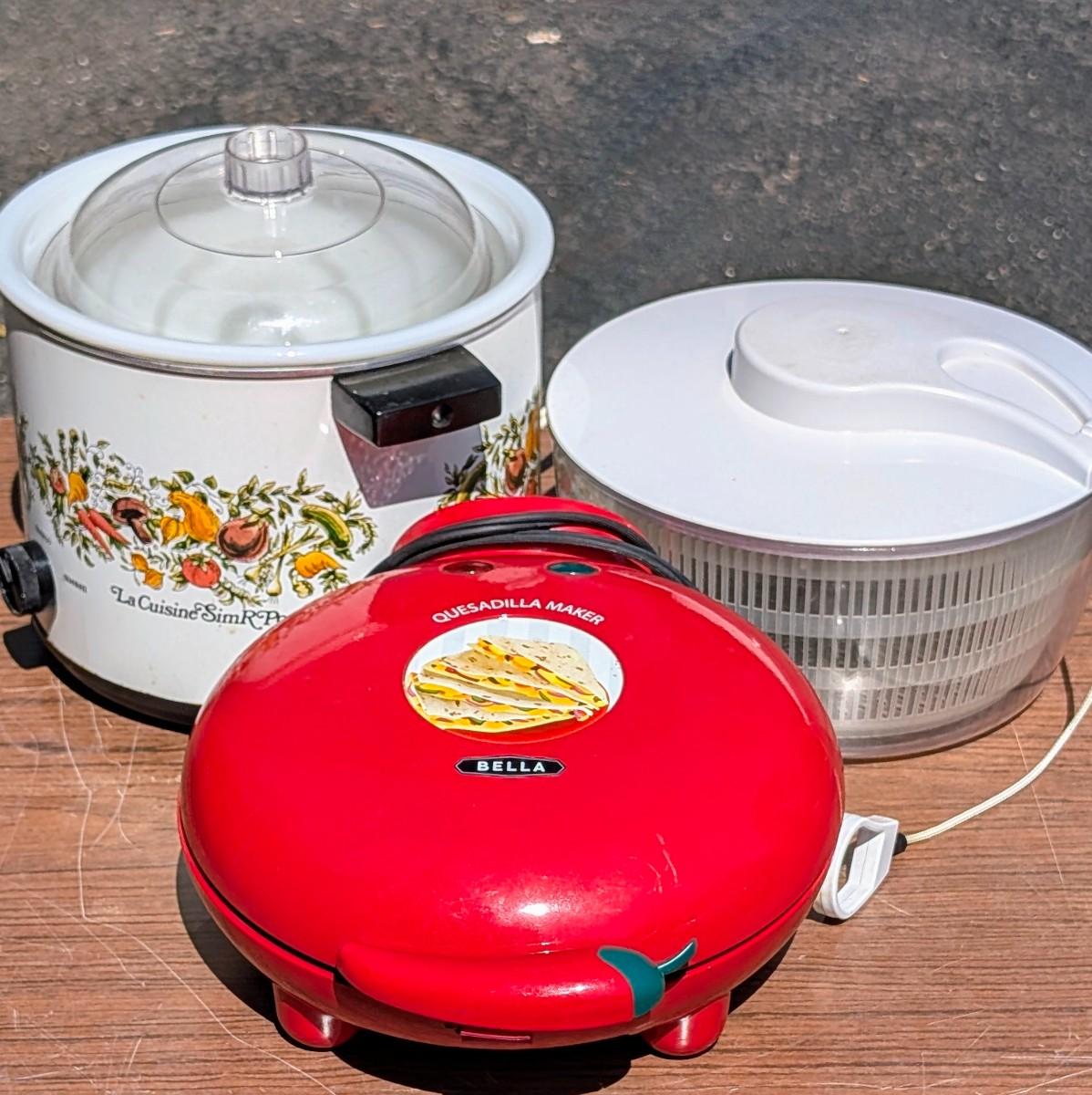 LOT 106G: Vintage La Cuisine Sim R Pot With Removable Crock Model: E53730, Untested, Bella Quesadilla Maker Model: GH-188, Untested & Salad Spinner