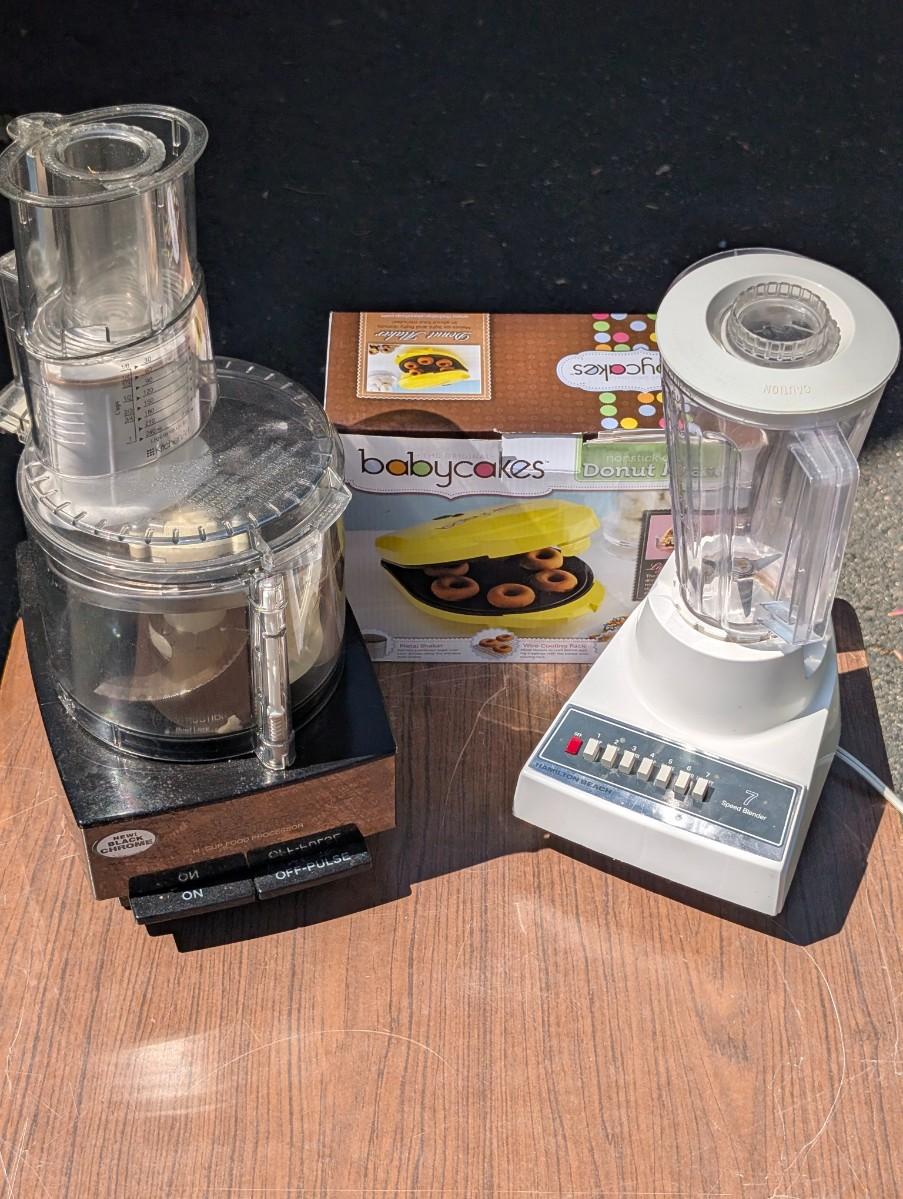 LOT 107G: Cuisinart Food Processor With Blades/Cups Model: DFP-14BCN, Hamilton Beach 7 Speed Blender Model: 600-5 & Babycakes Donut Maker Cooling Racks/Recipe Booklet Model: DN-95LZ, All Untested