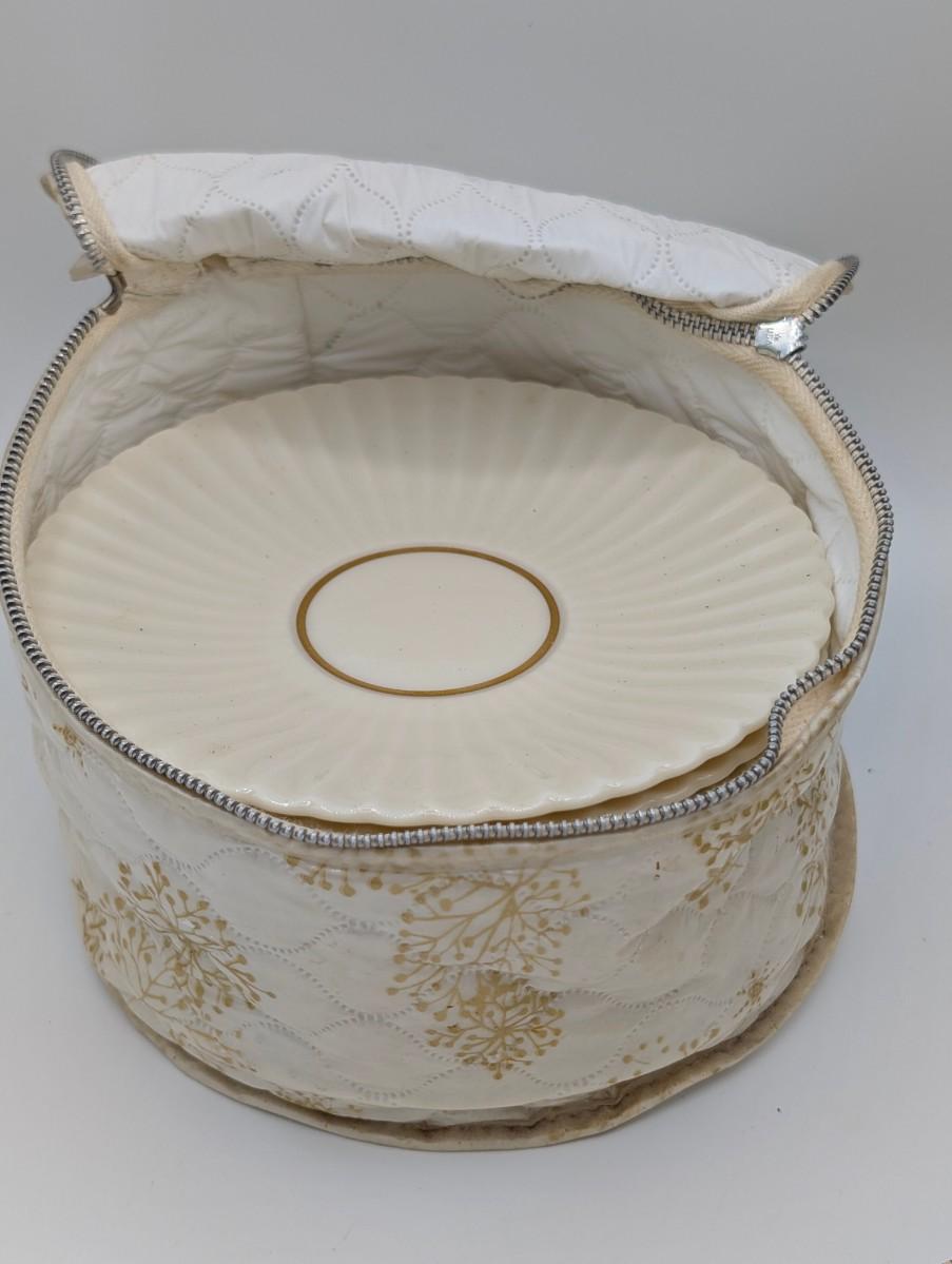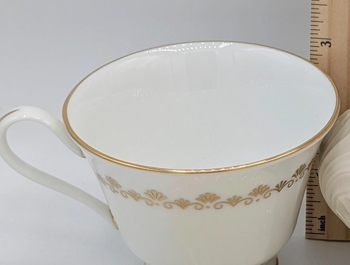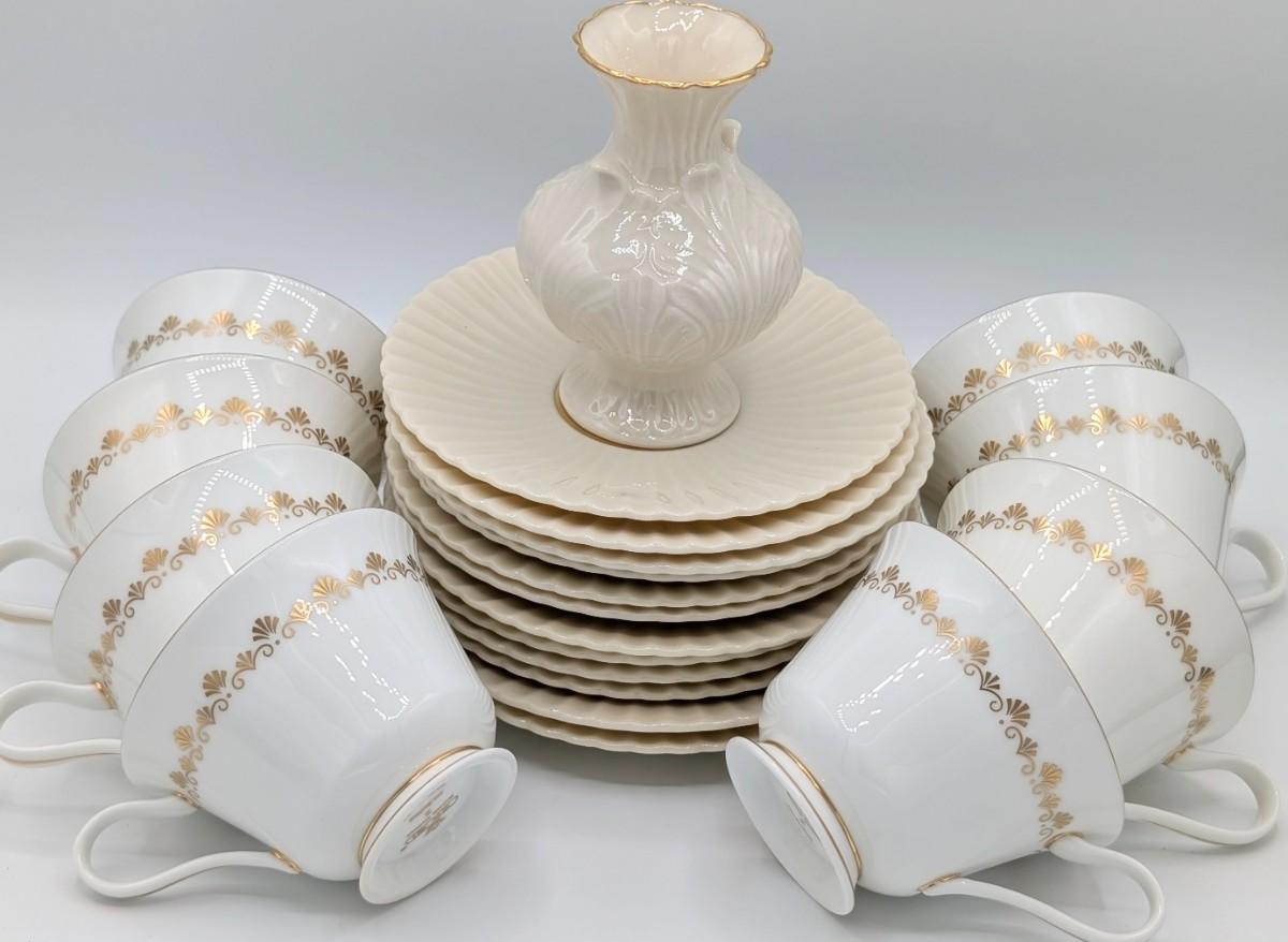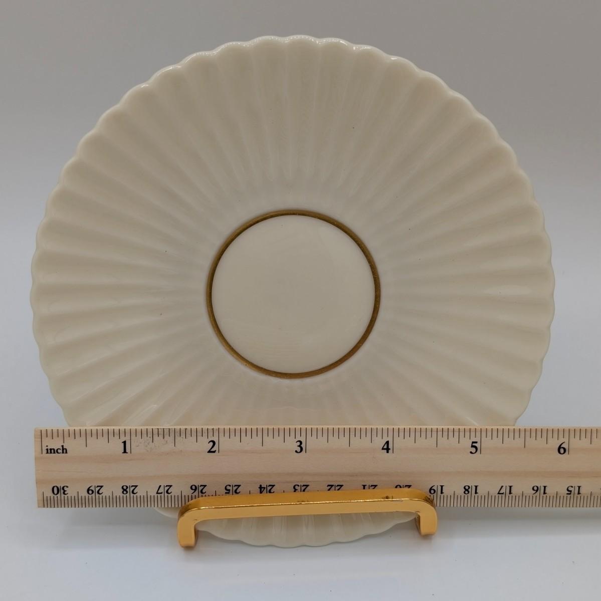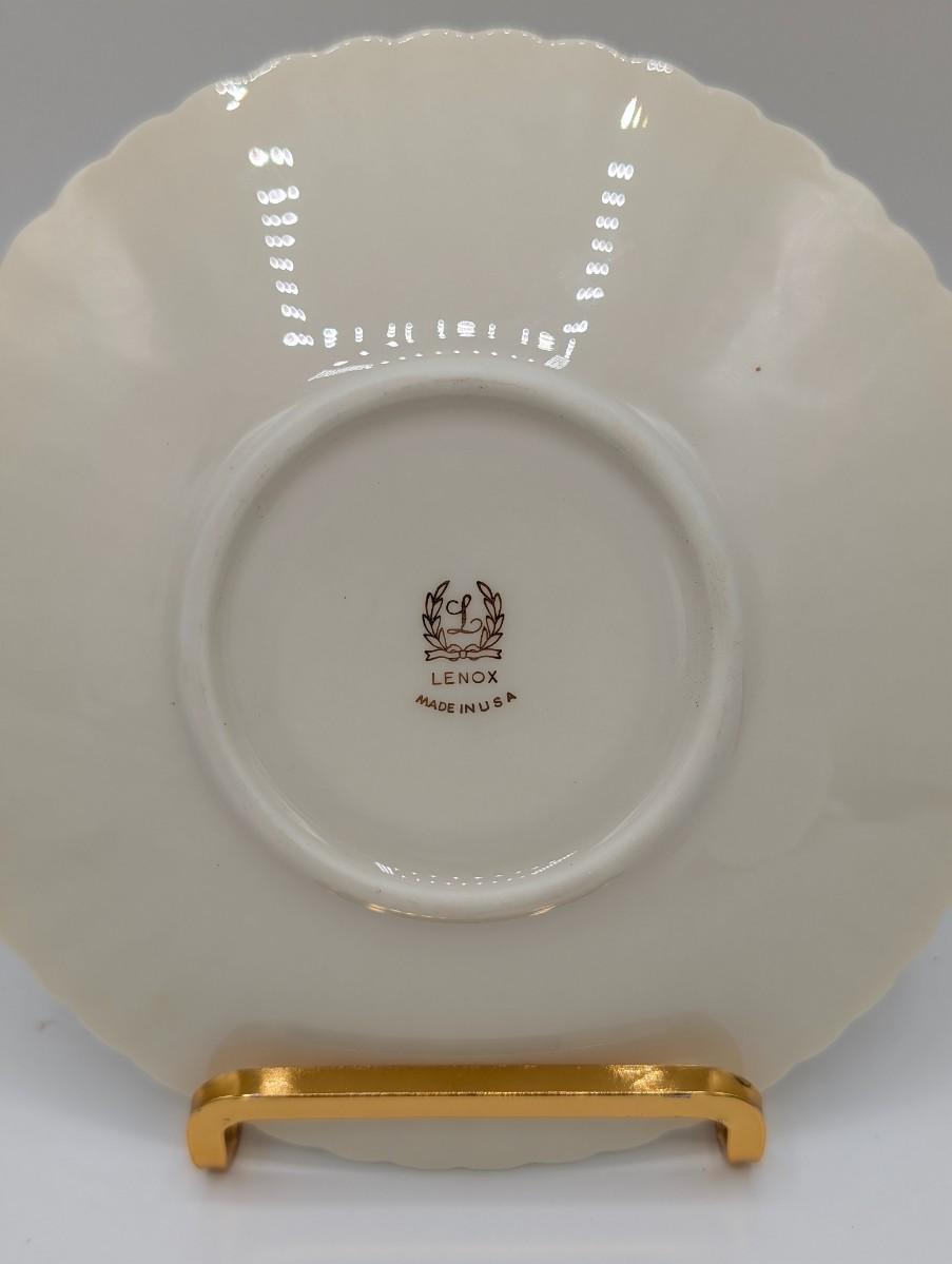 LOT 116D: Lenox Gold Trim Bud Vase & Saucer Plates Made In USA With Gold Accented Cups, Oxford Bone China Milburn Made In USA. Plate Stands Not Included