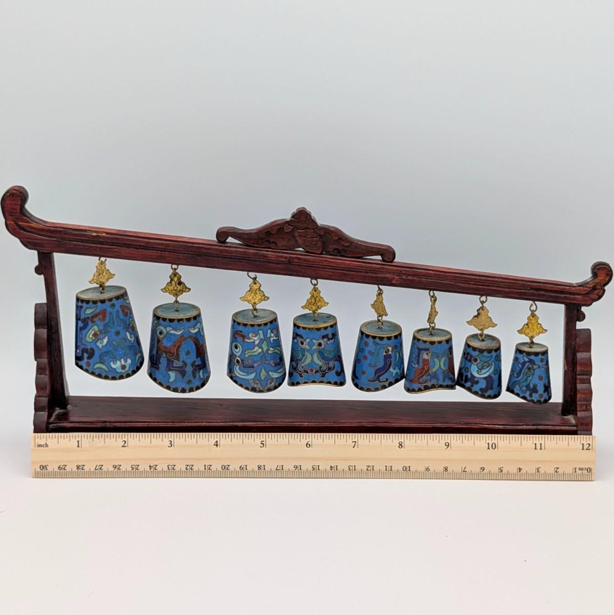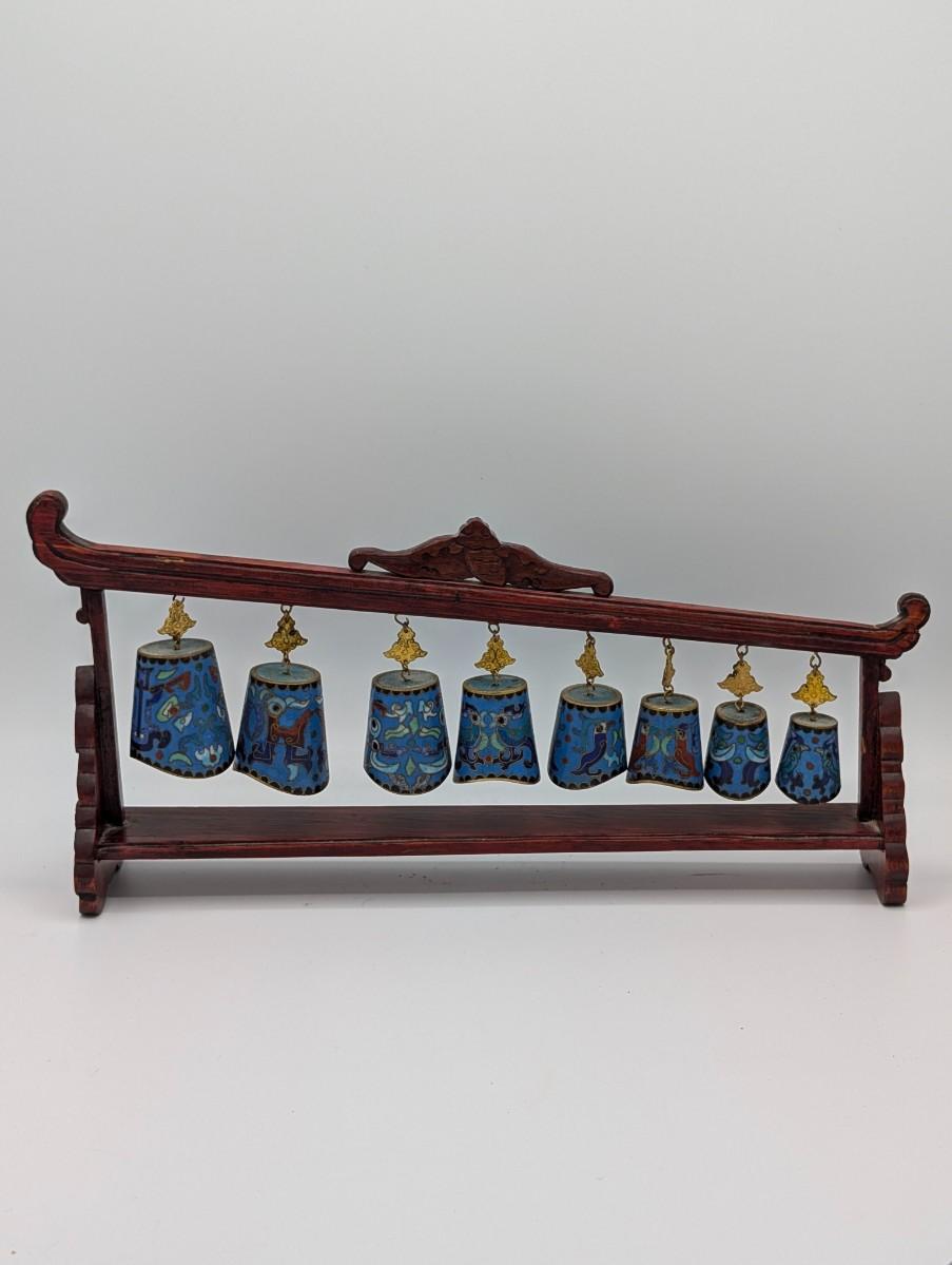 LOT 117D: Vintage Asian Cloisonne` Chime Meditation Bells Set