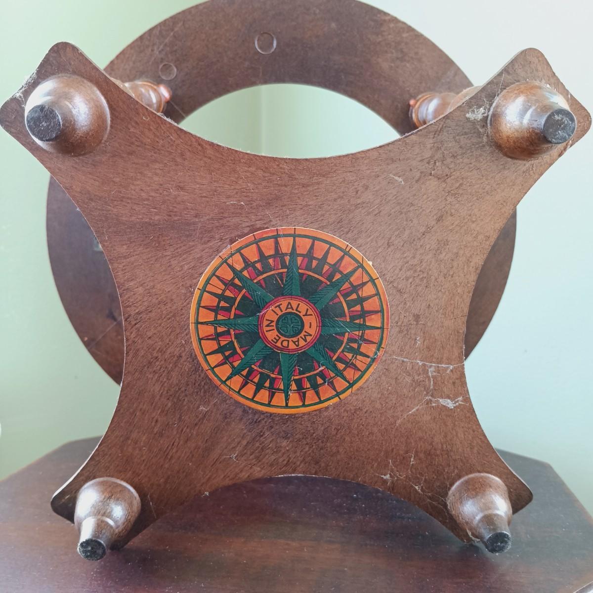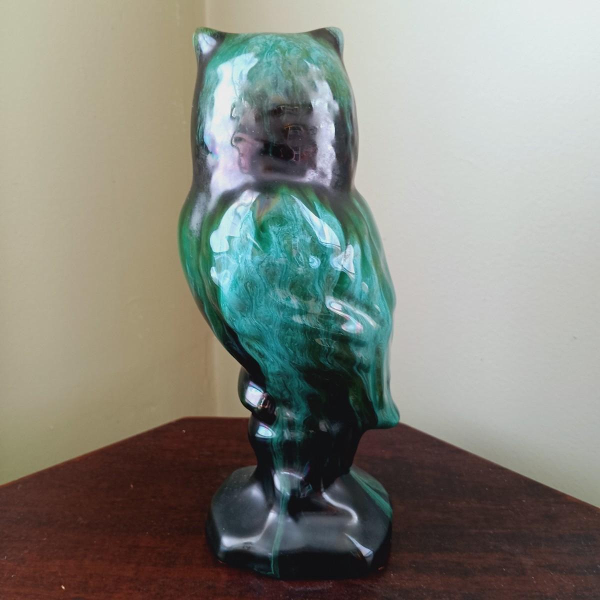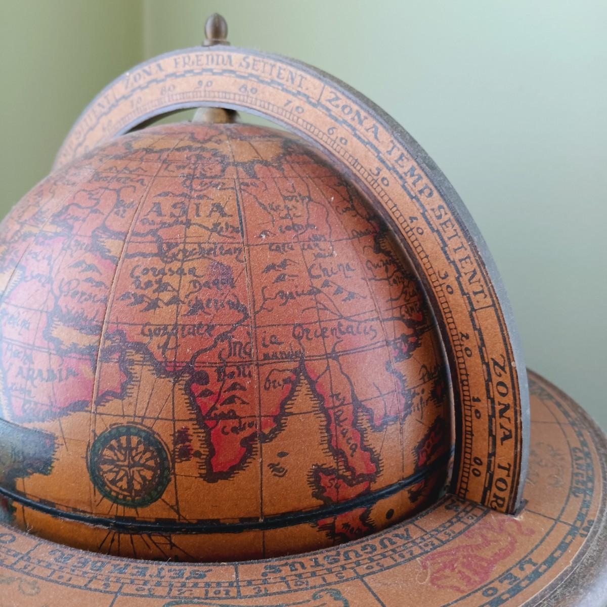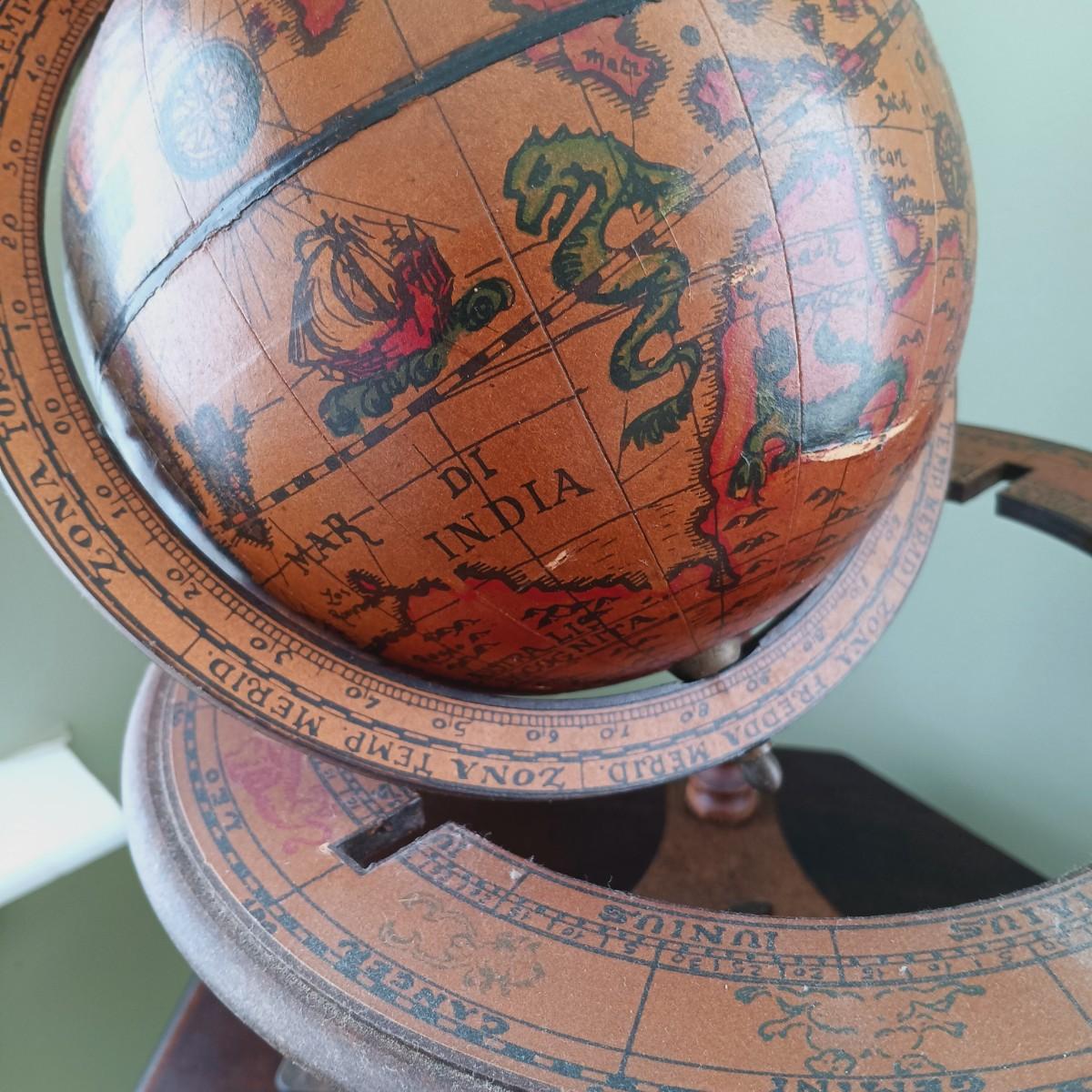 LOT 13: Old World Globe Made in Italy, Pottery Owl, Vintage Magnetic Travel Chess Set & Octogonal Side Table