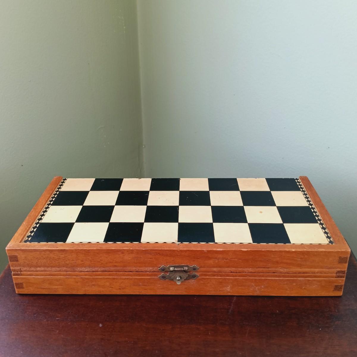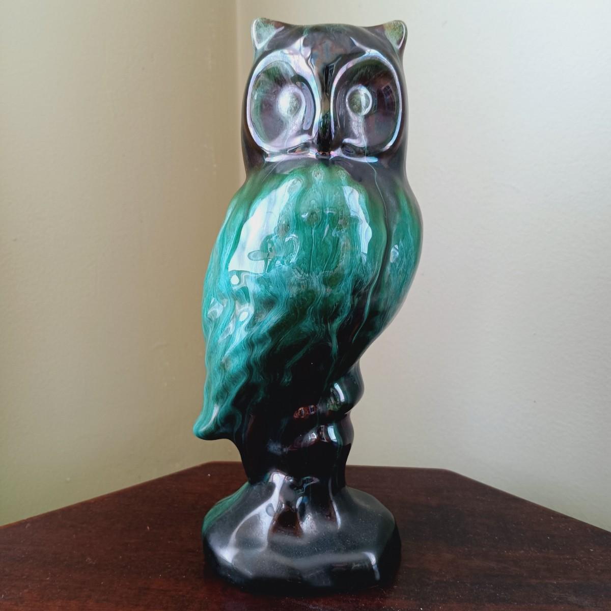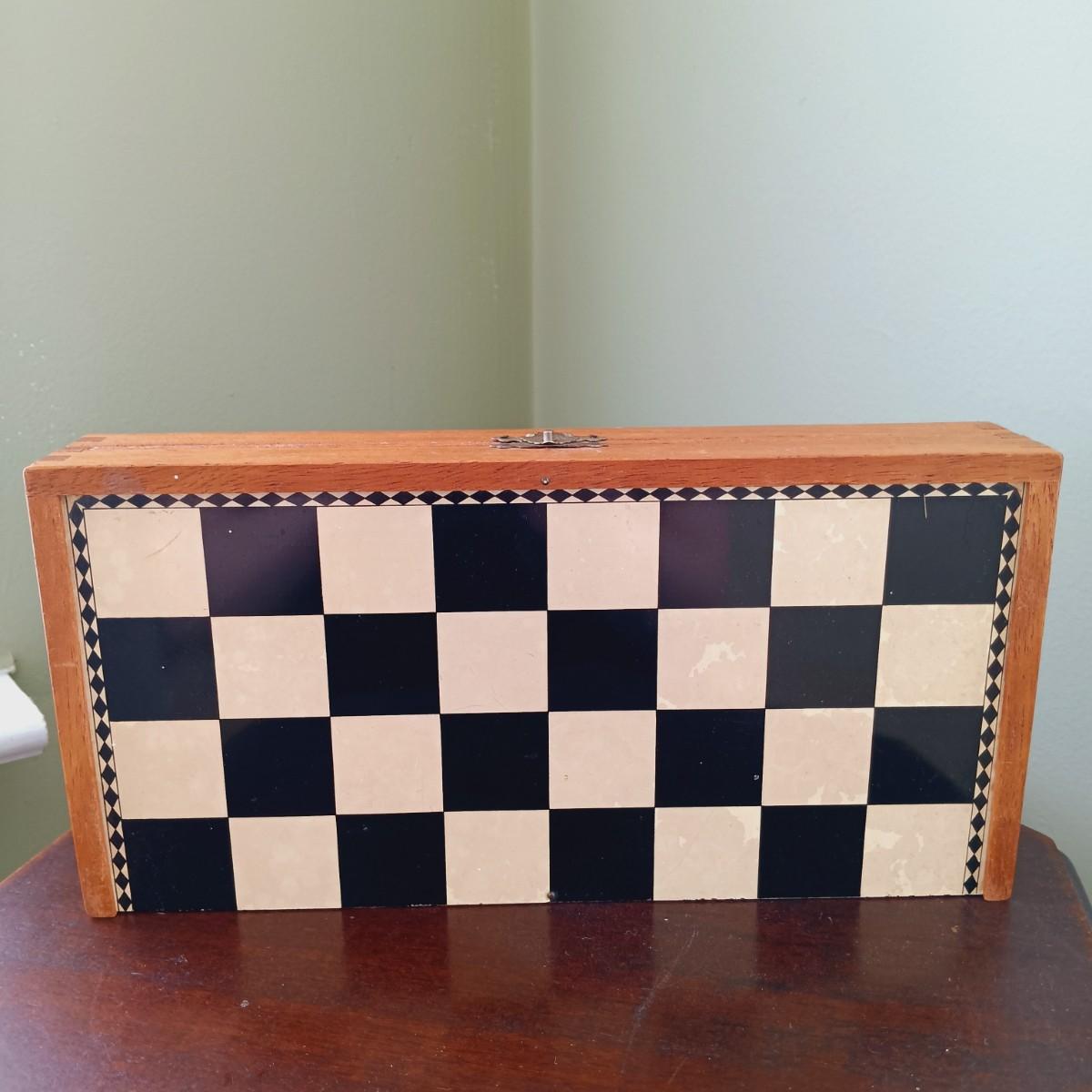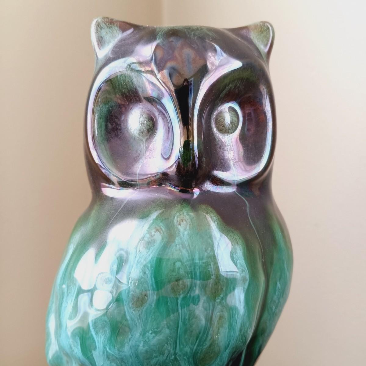 LOT 13: Old World Globe Made in Italy, Pottery Owl, Vintage Magnetic Travel Chess Set & Octogonal Side Table