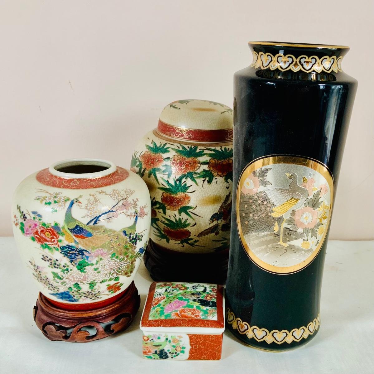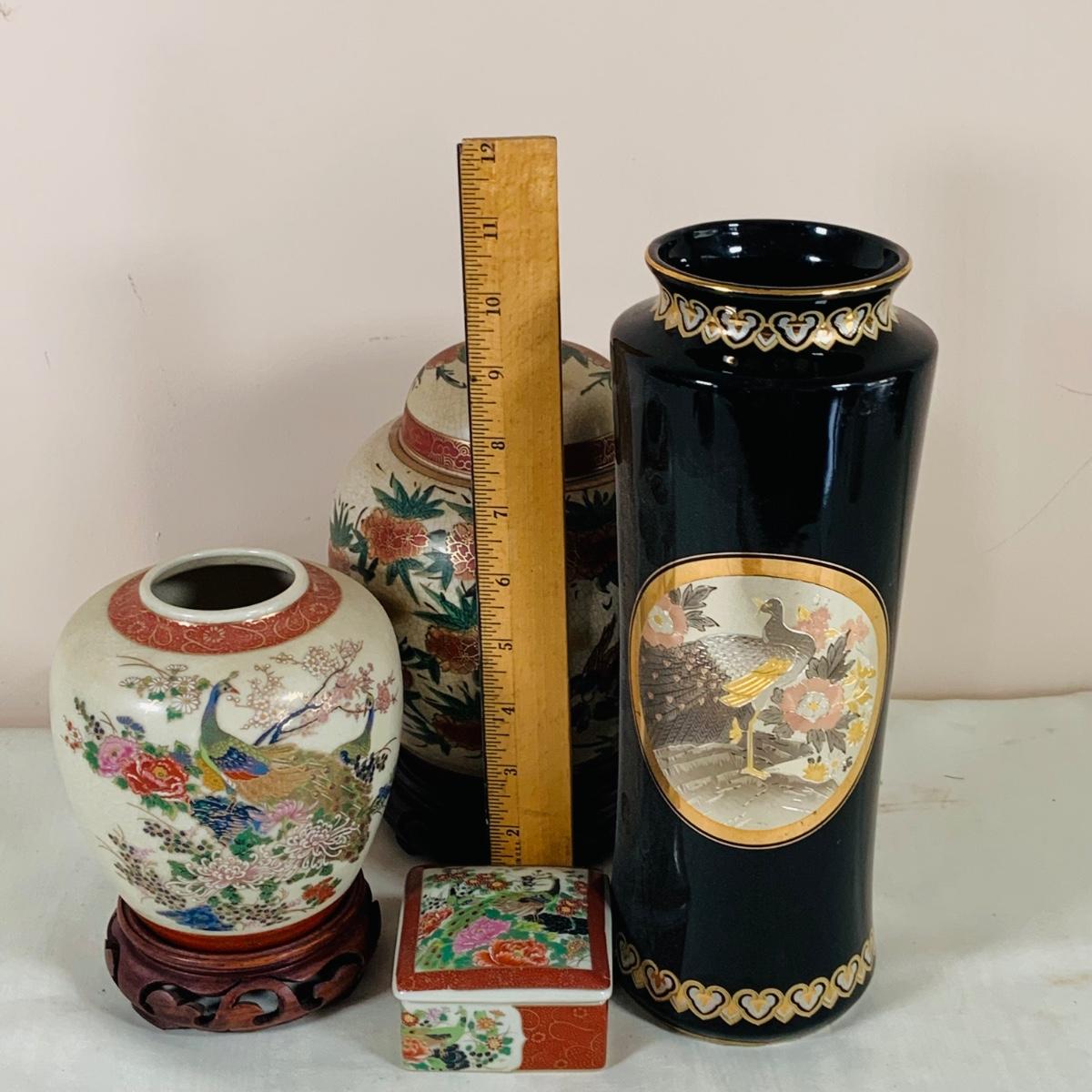 LOT 39: Asian Inspired Decor Including Ginger Jars by Toyo and Satsuma Japan, a “Chokin” Metal-Engraved Vase from Japan and More
