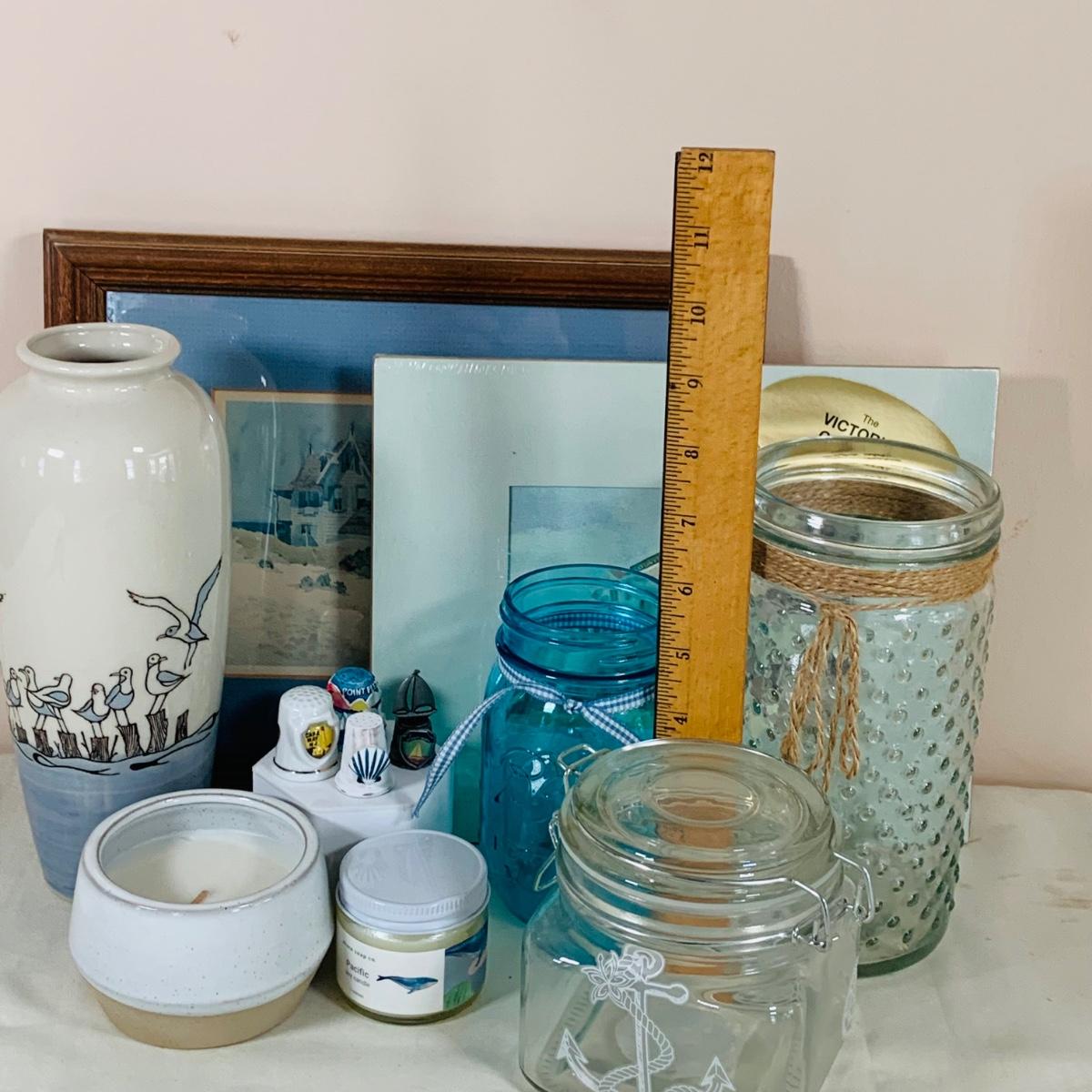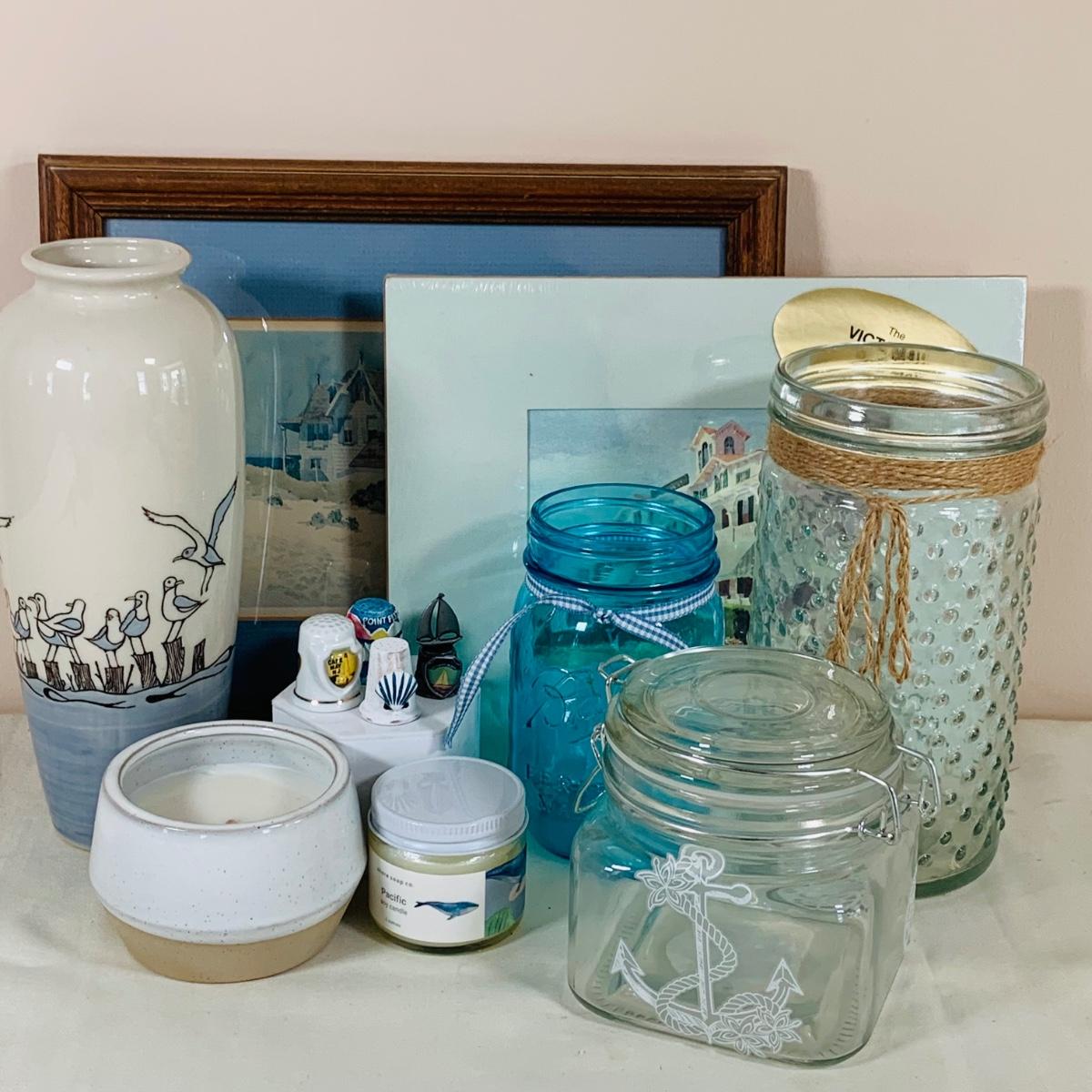 LOT 40: By the Sea - Beach Inspired Collection of Wall Art, Vases Candles, Thimbles and More